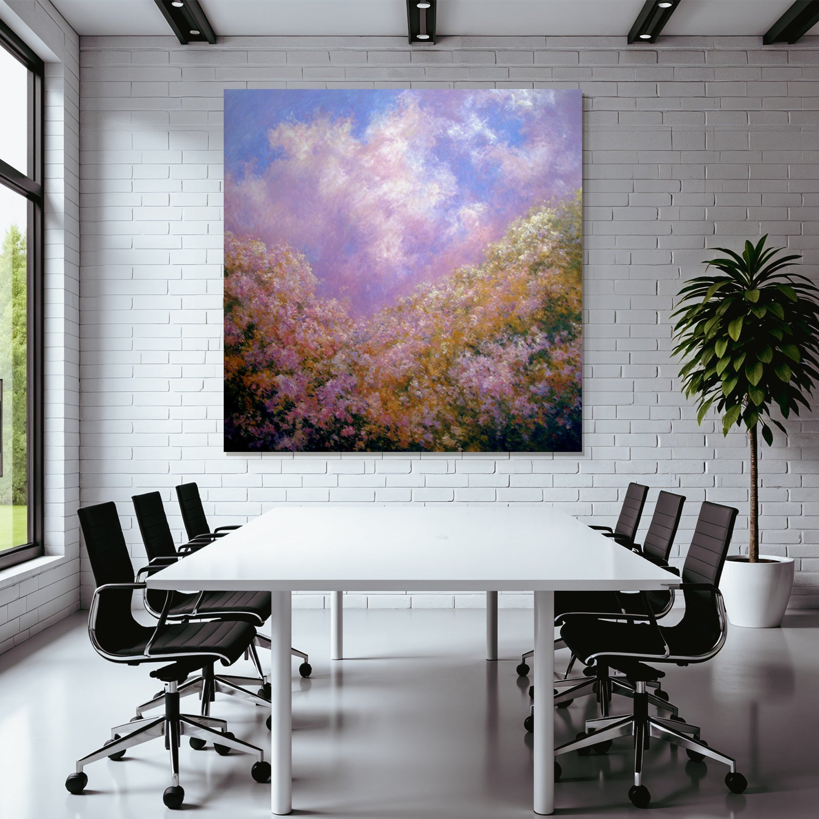 Setz ein Statement: „Traumhafte Blumenwiese Unter Pastellfarbenem Wolkenhimmel“ im Stil Jugendstil wird im FameFrame™ zum echten Kunstobjekt an Deiner Wand.