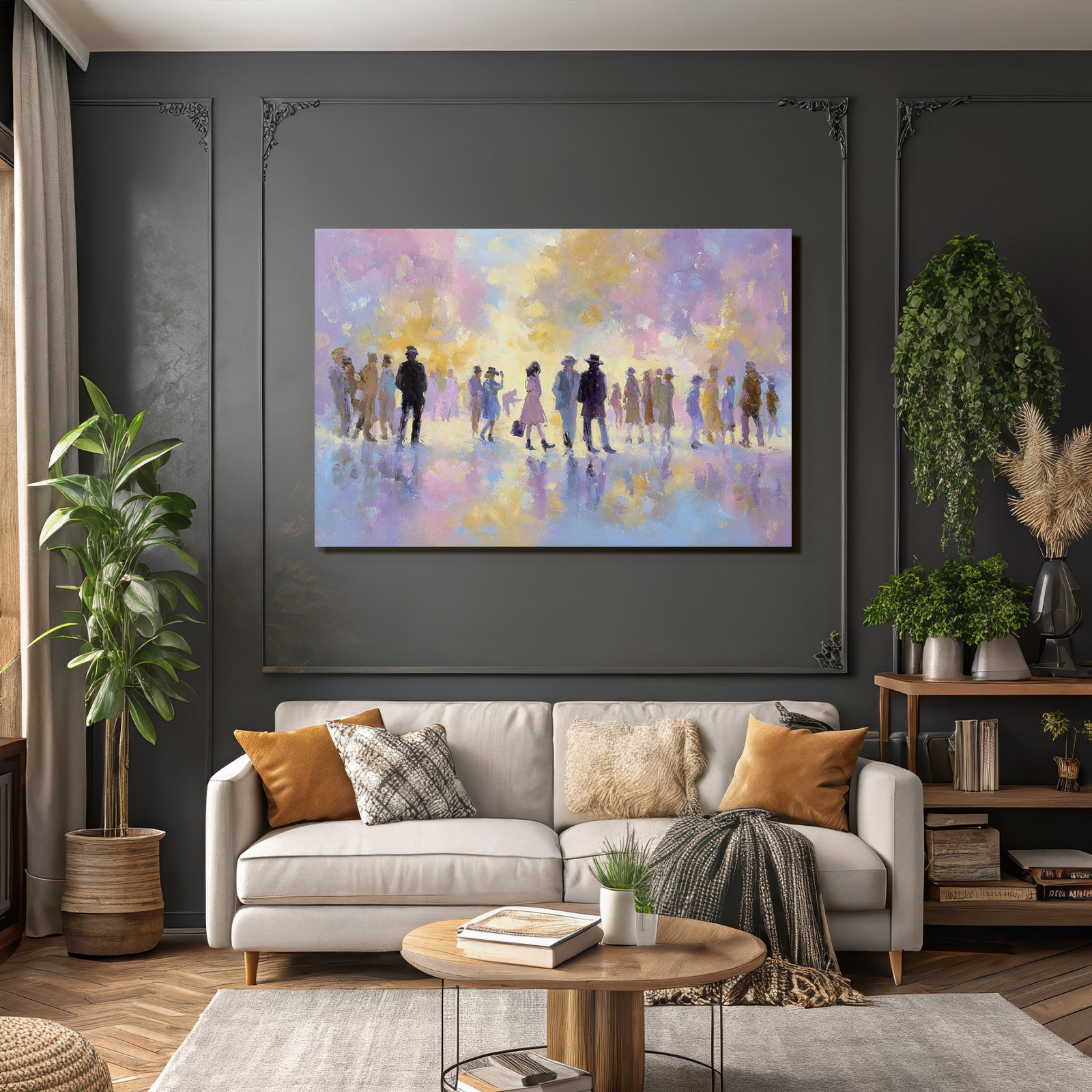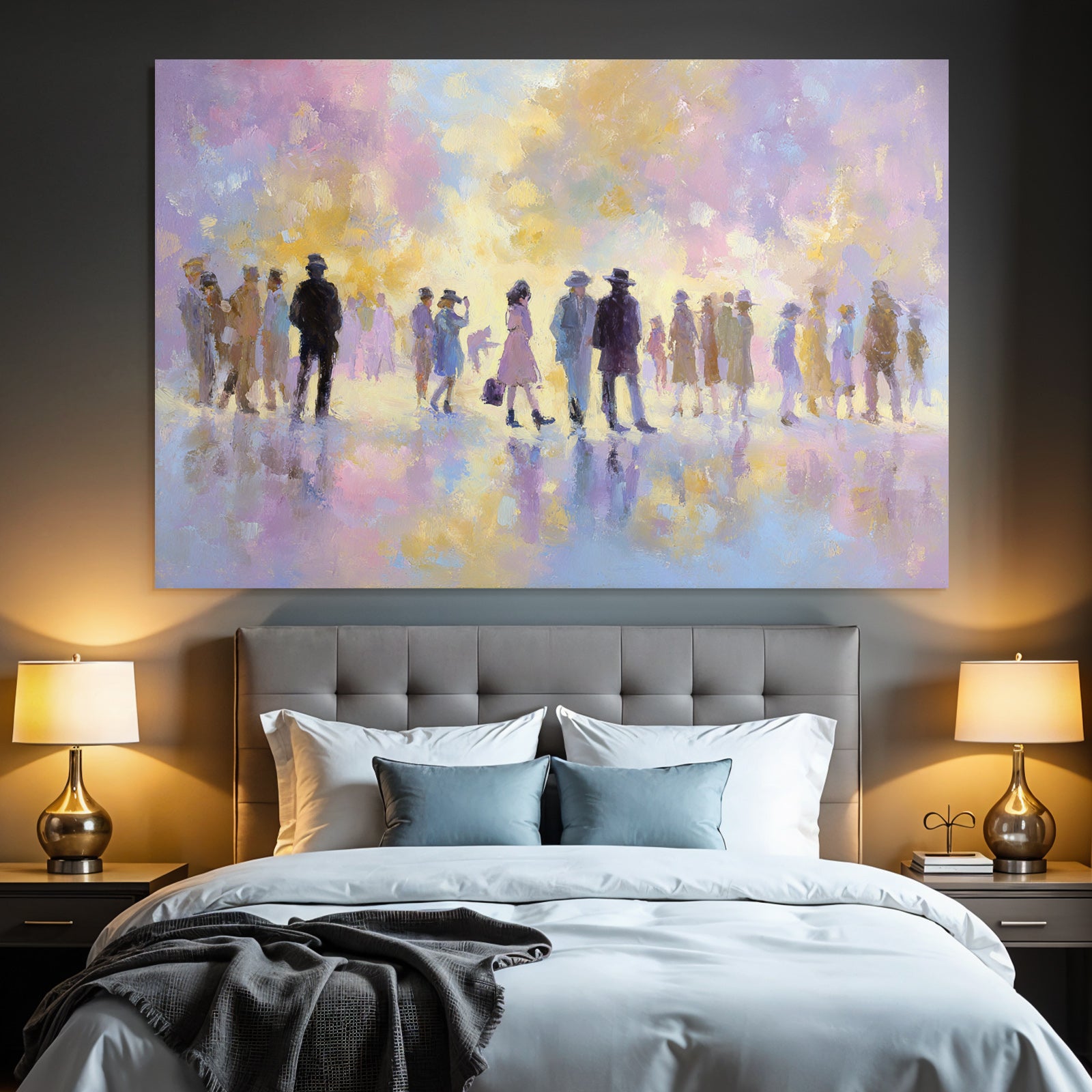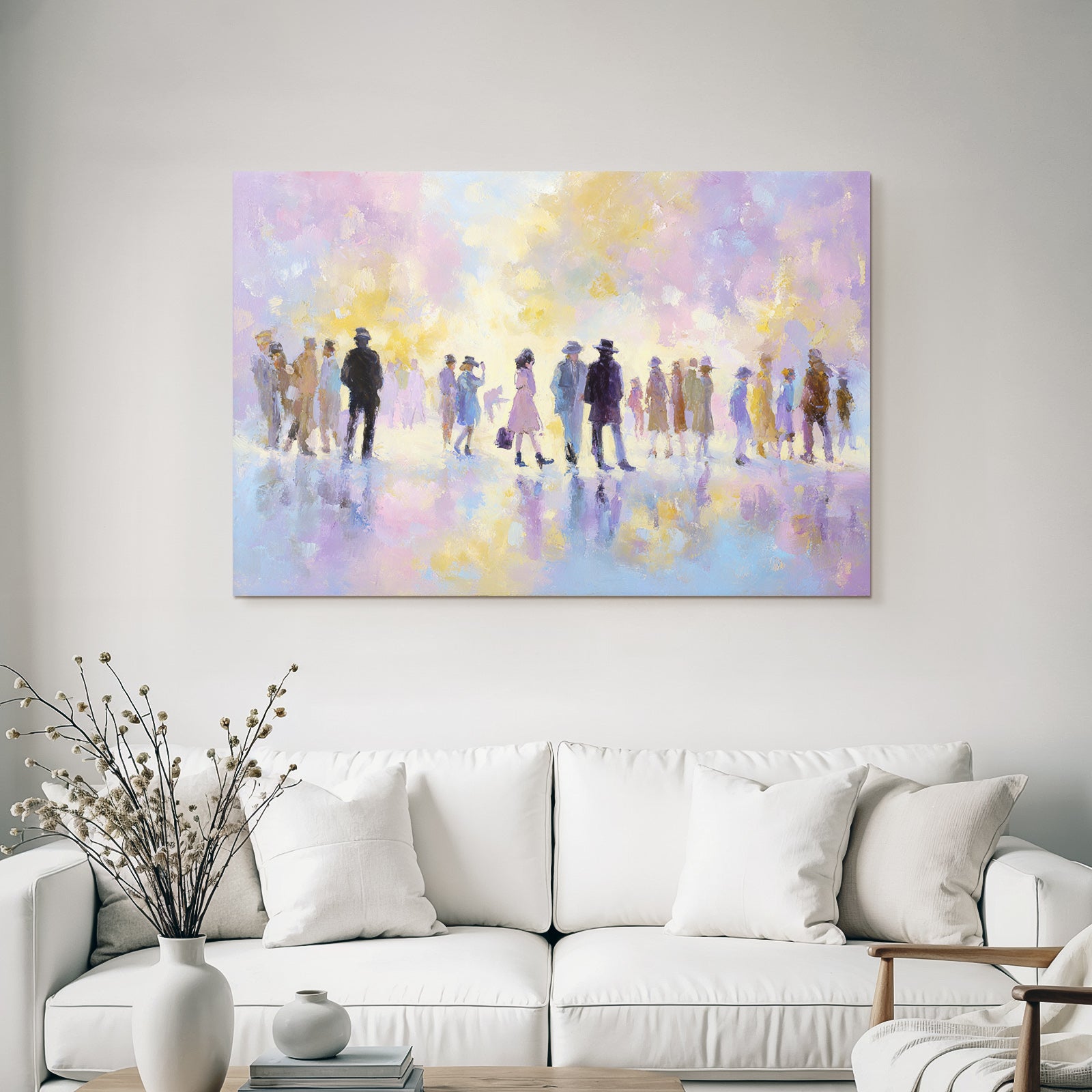 Setz ein Statement: „Traumhafte Stadtansicht Mit Spazierenden Menschen“ im Stil Jugendstil wird im FameFrame™ zum echten Kunstobjekt an Deiner Wand.