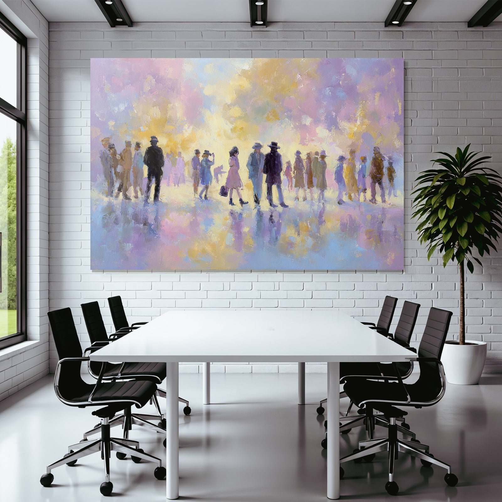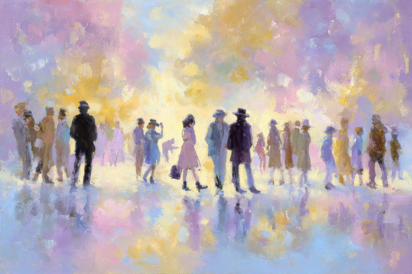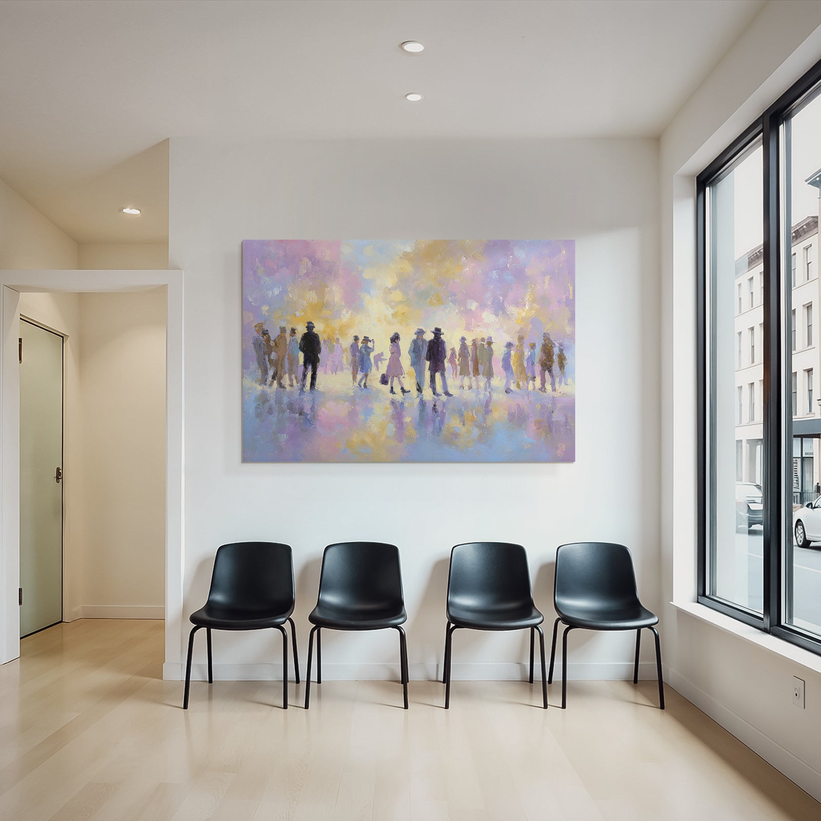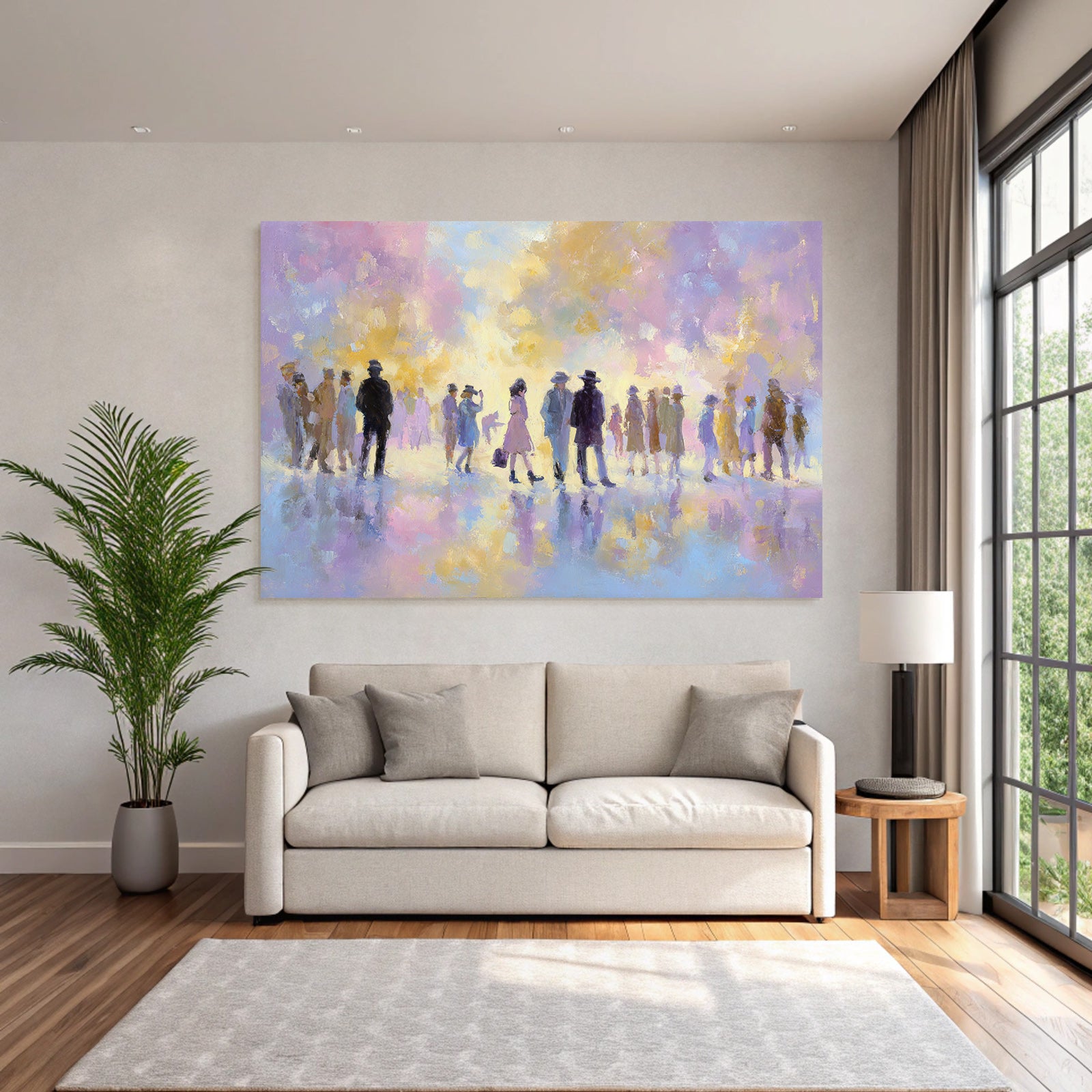 Setz ein Statement: „Traumhafte Stadtansicht Mit Spazierenden Menschen“ im Stil Jugendstil wird im FameFrame™ zum echten Kunstobjekt an Deiner Wand.