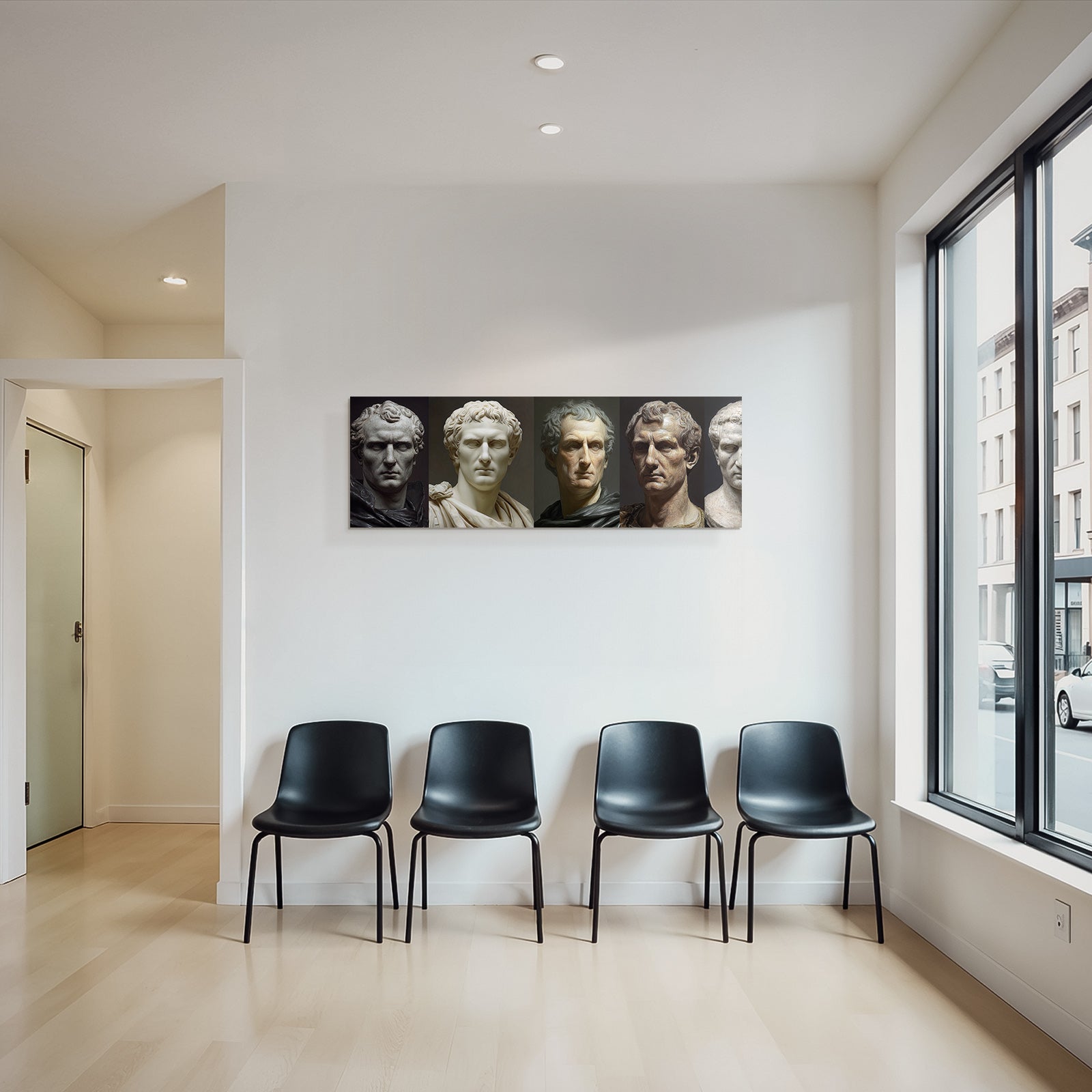 Mit dem Werk „„E Skulpturen Roemische Historia Bueste““ im Stil Klassisch gestaltest Du Dein Wartezimmer oder Deine Hotel-Lobby eindrucksvoll und modern – auf Stoff im FameFrame.