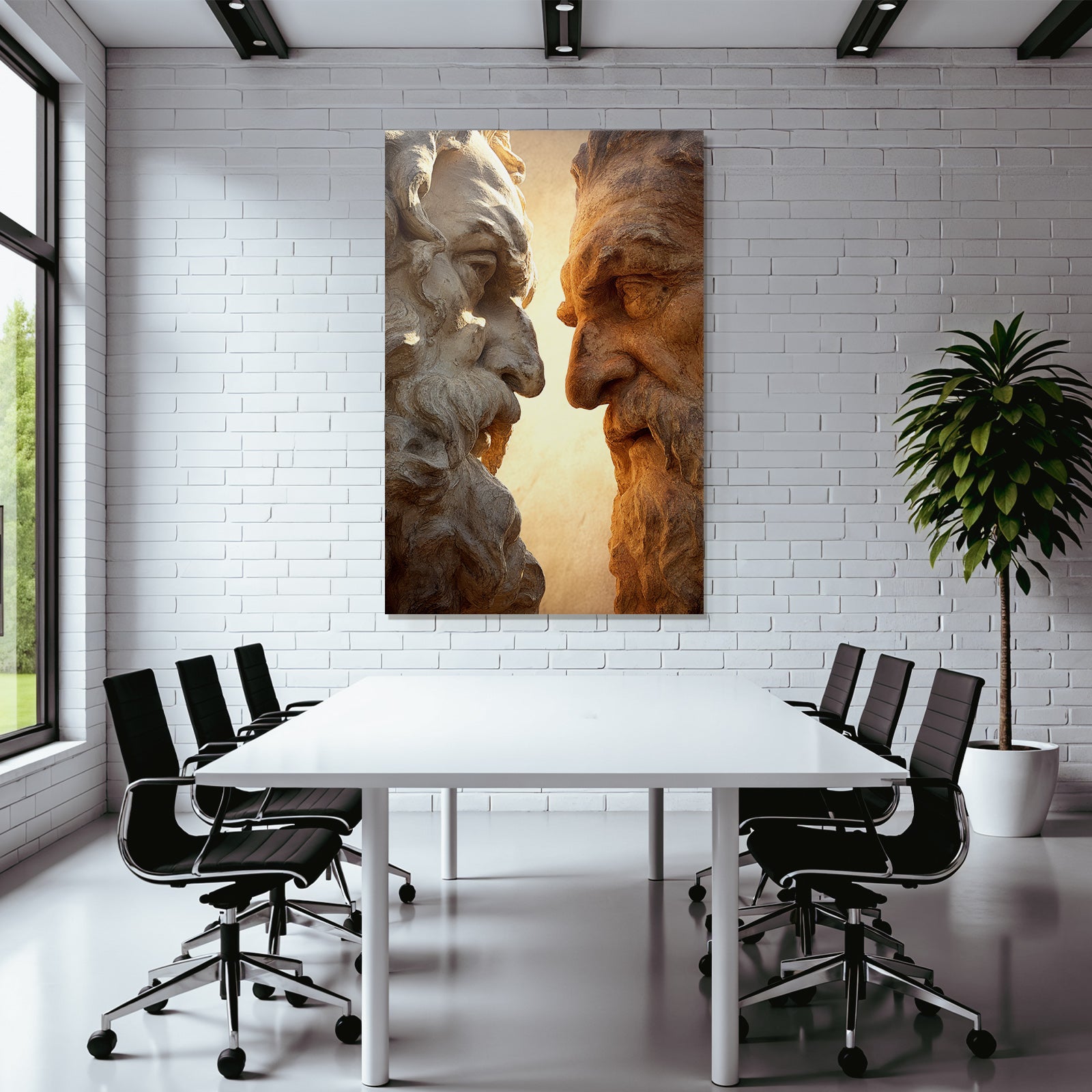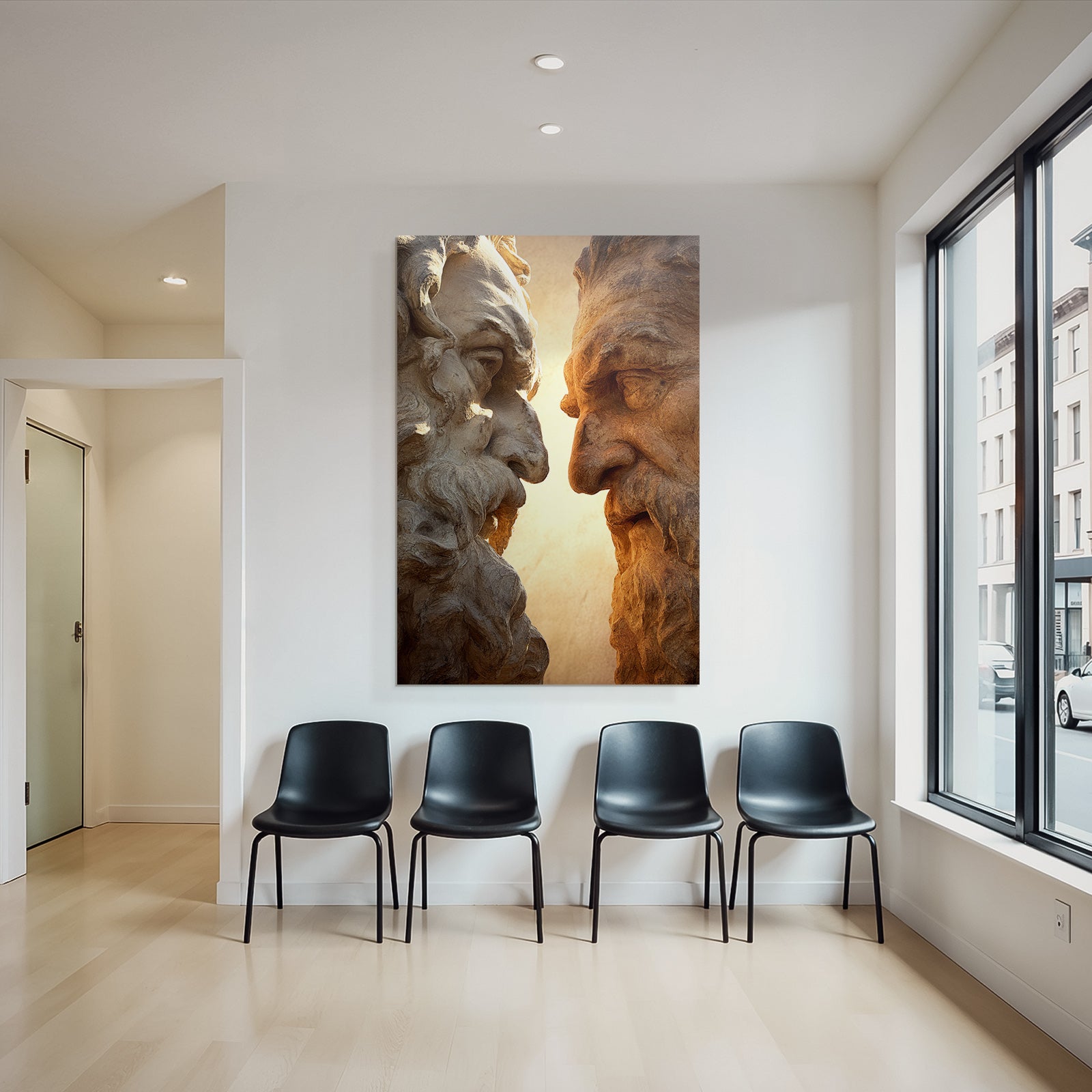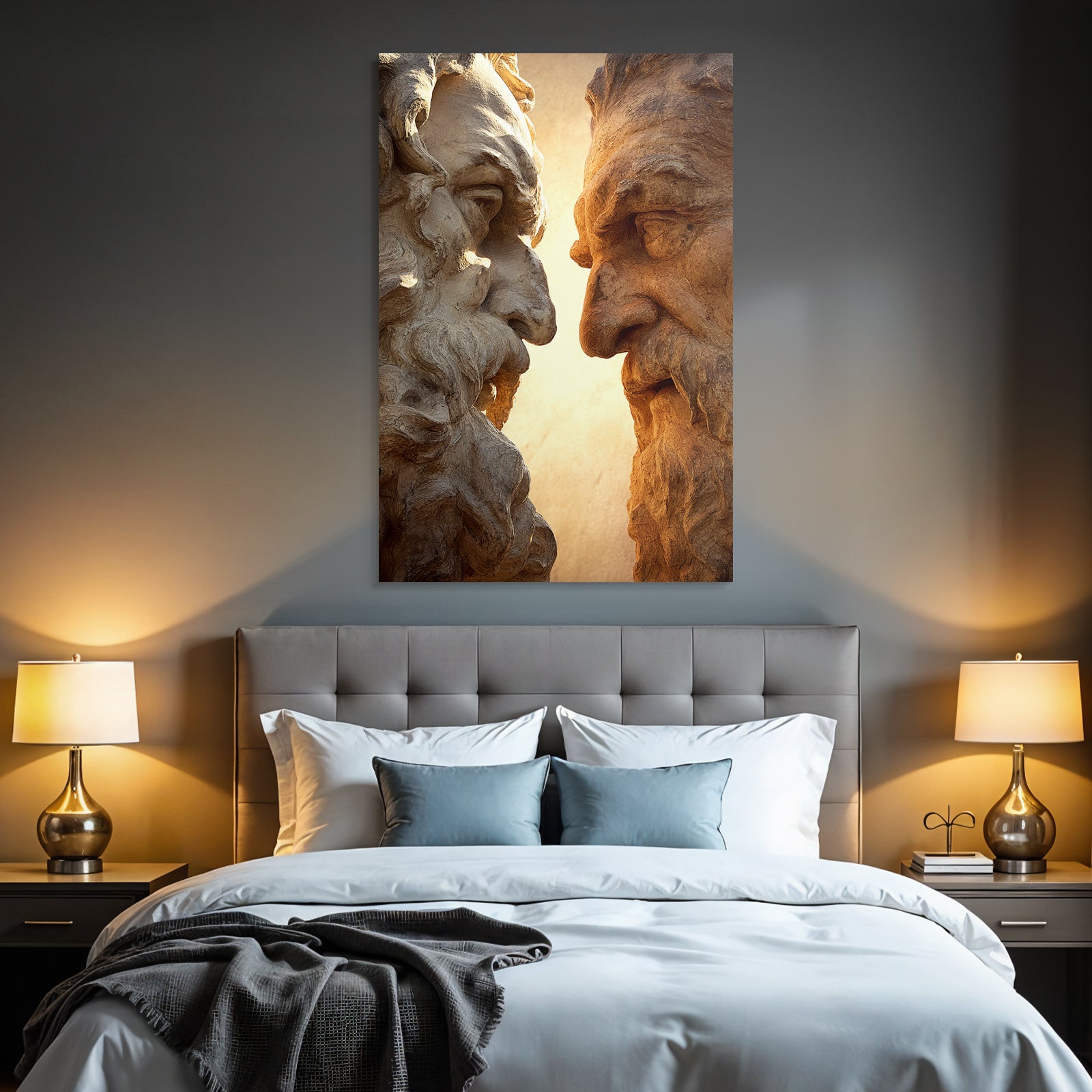 Mach mehr aus Deinem Wohnbereich oder Besprechungszimmer„„Geschnitzte Gesichter Mit Baerten Intensiven Ausdrucken““ im Stil Klassisch überzeugt als eleganter Textildruck im FameFrame.