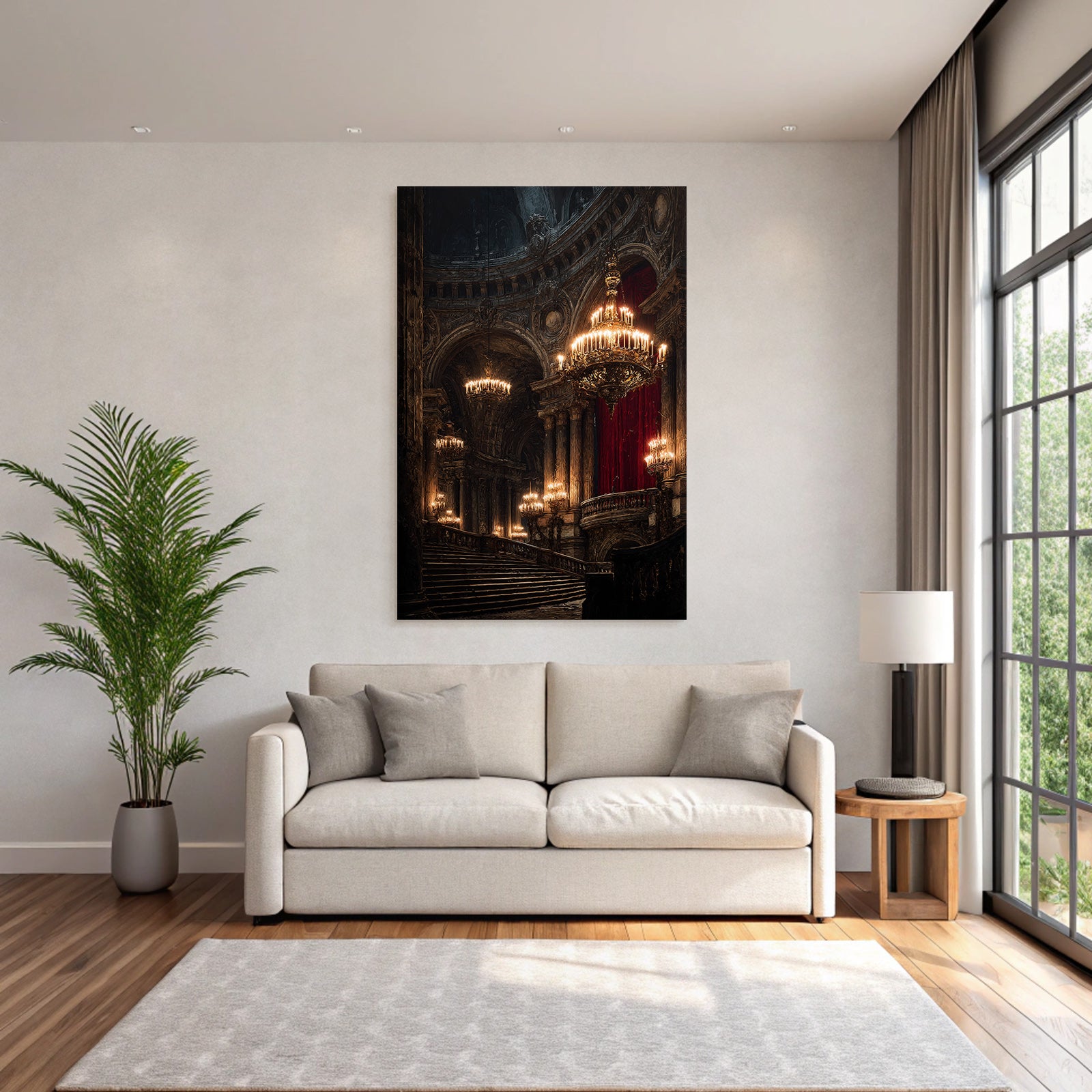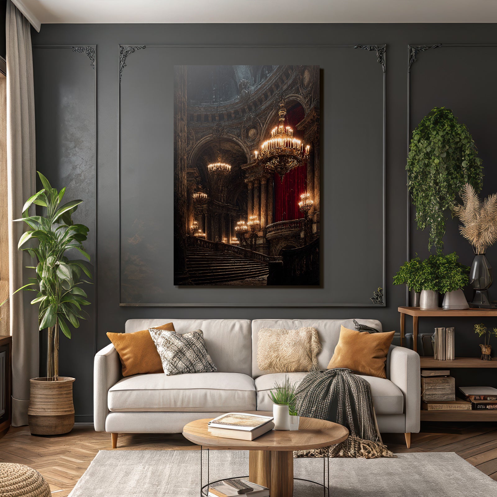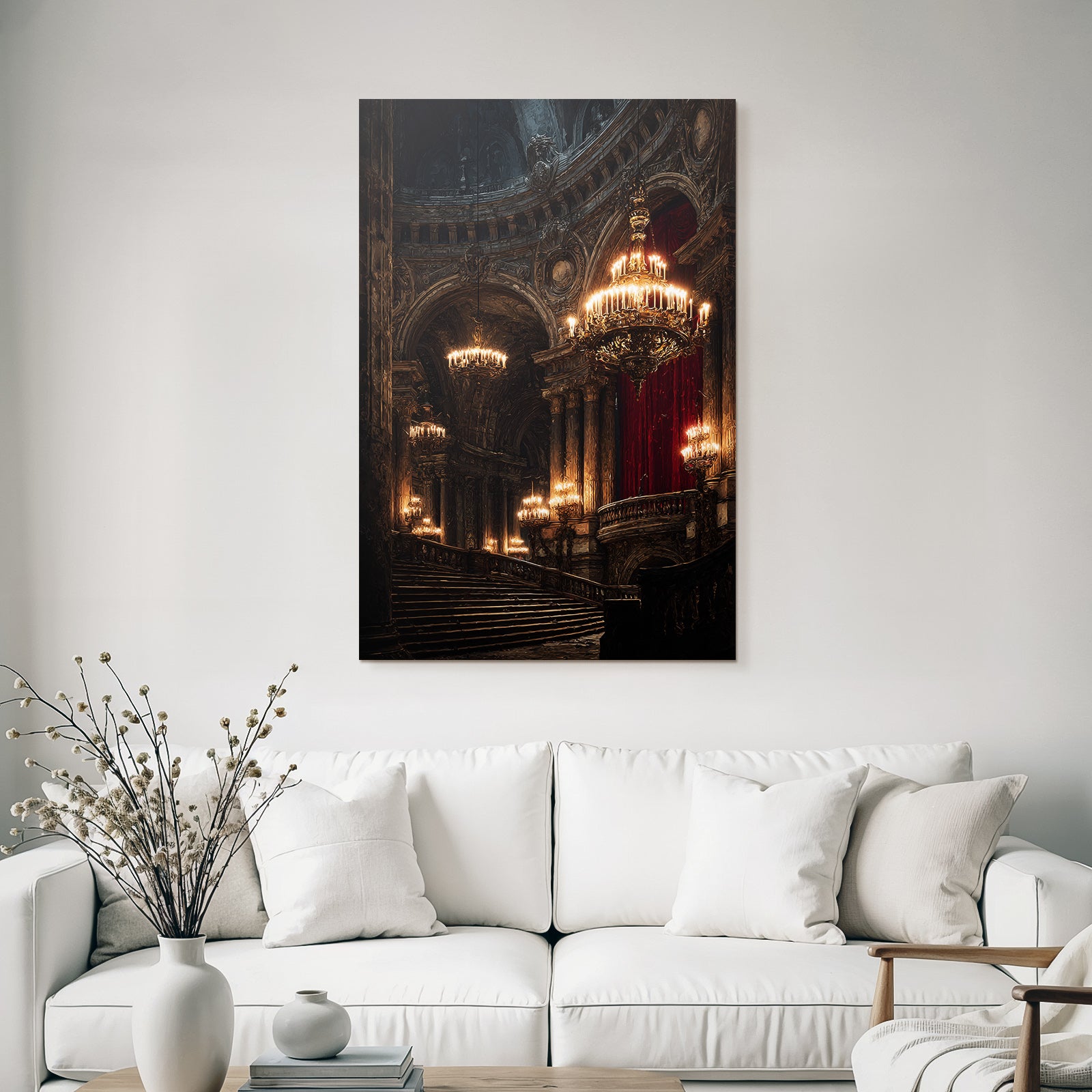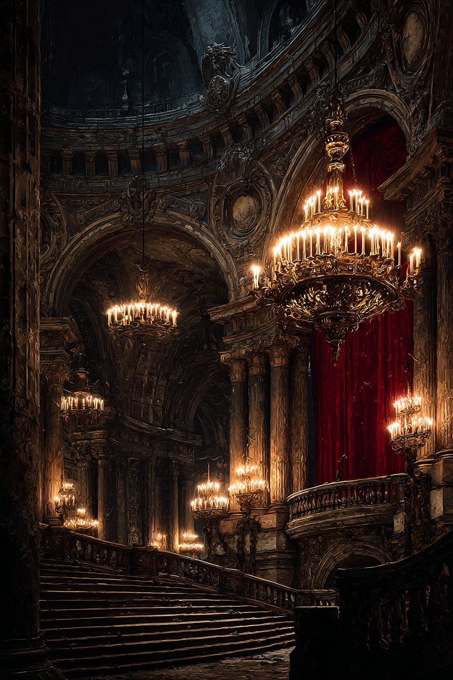 Ein einzigartiges Kunstwerk der Produktlinie FameFrame mit dem Titel „„Prunkvolle Stiege In Opulentem Innenraum““, im Stil Klassisch.