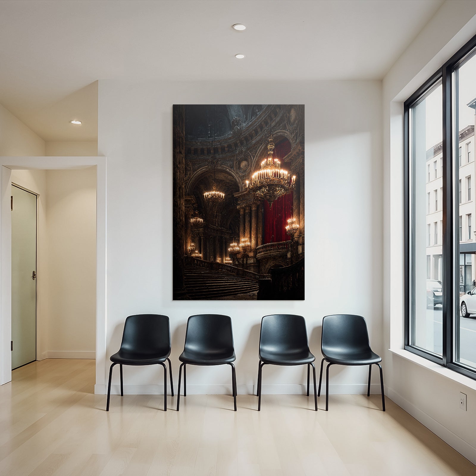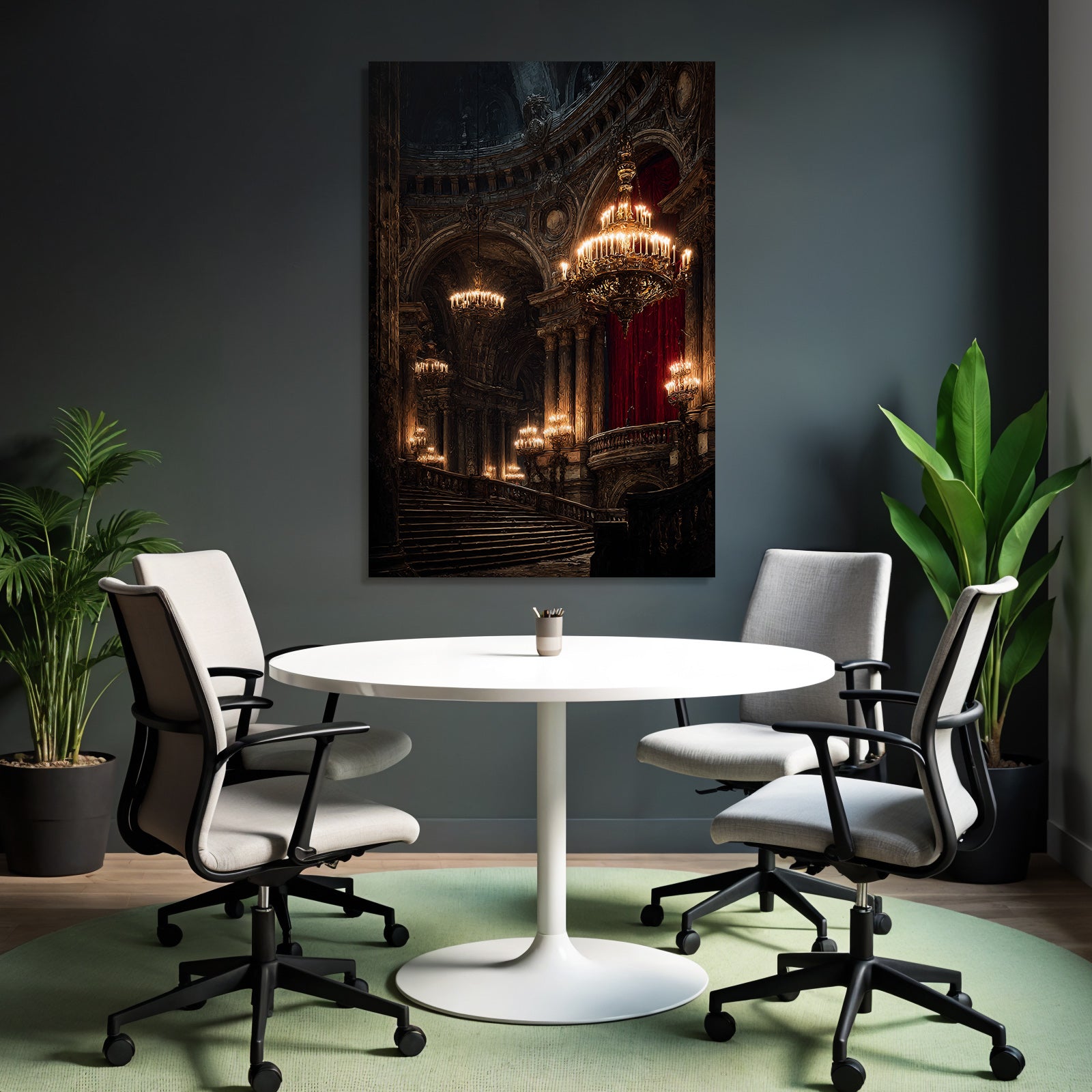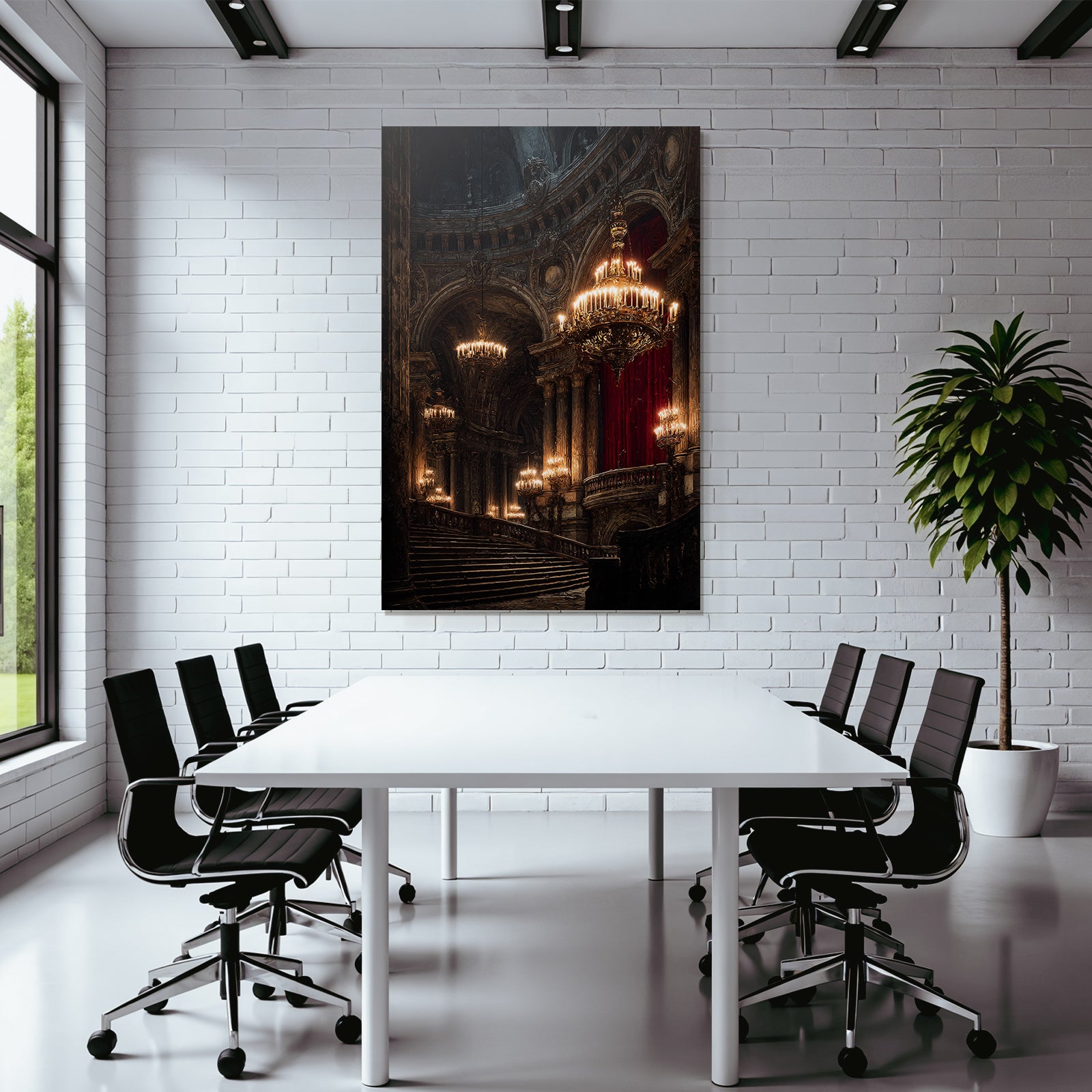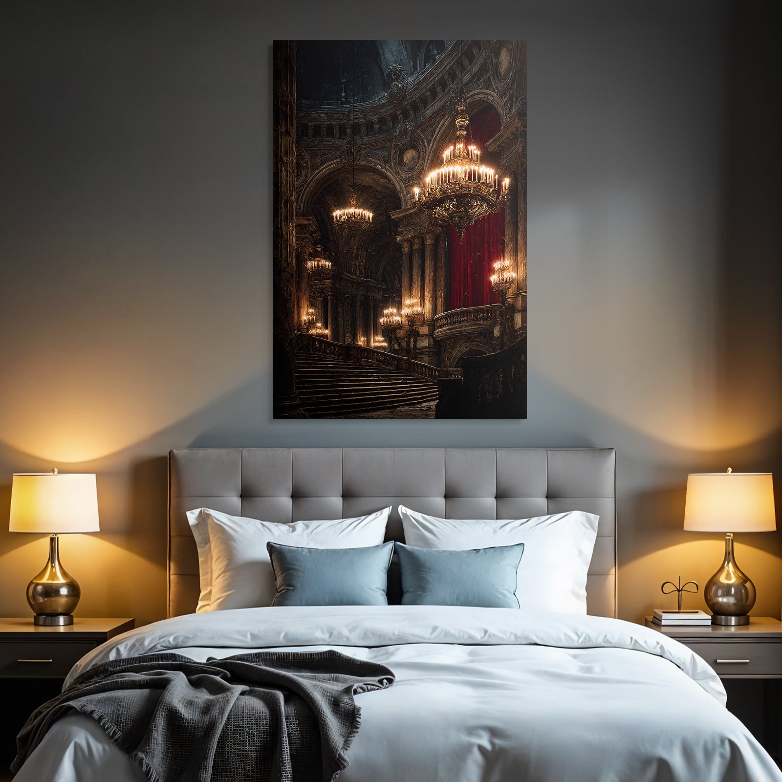 Ein einzigartiges Kunstwerk der Produktlinie FameFrame mit dem Titel „„Prunkvolle Stiege In Opulentem Innenraum““, im Stil Klassisch.