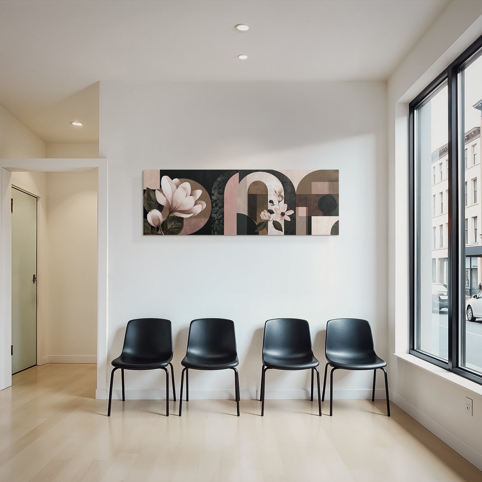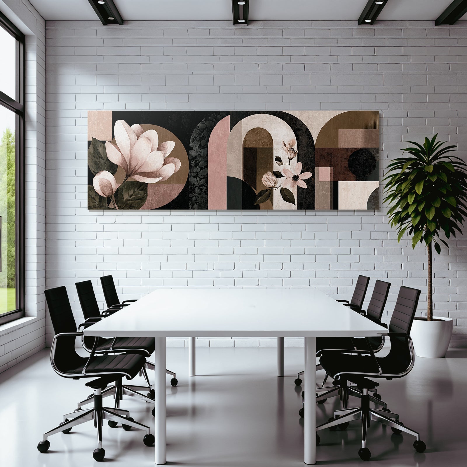 „„Abstract Florale Geometrische Kunst Magnolien““ im Stil Collagen sorgt für stilvolle Ruhe im Schlafzimmer oder inspirierende Energie im Büro – perfekt im FameFrame inszeniert.