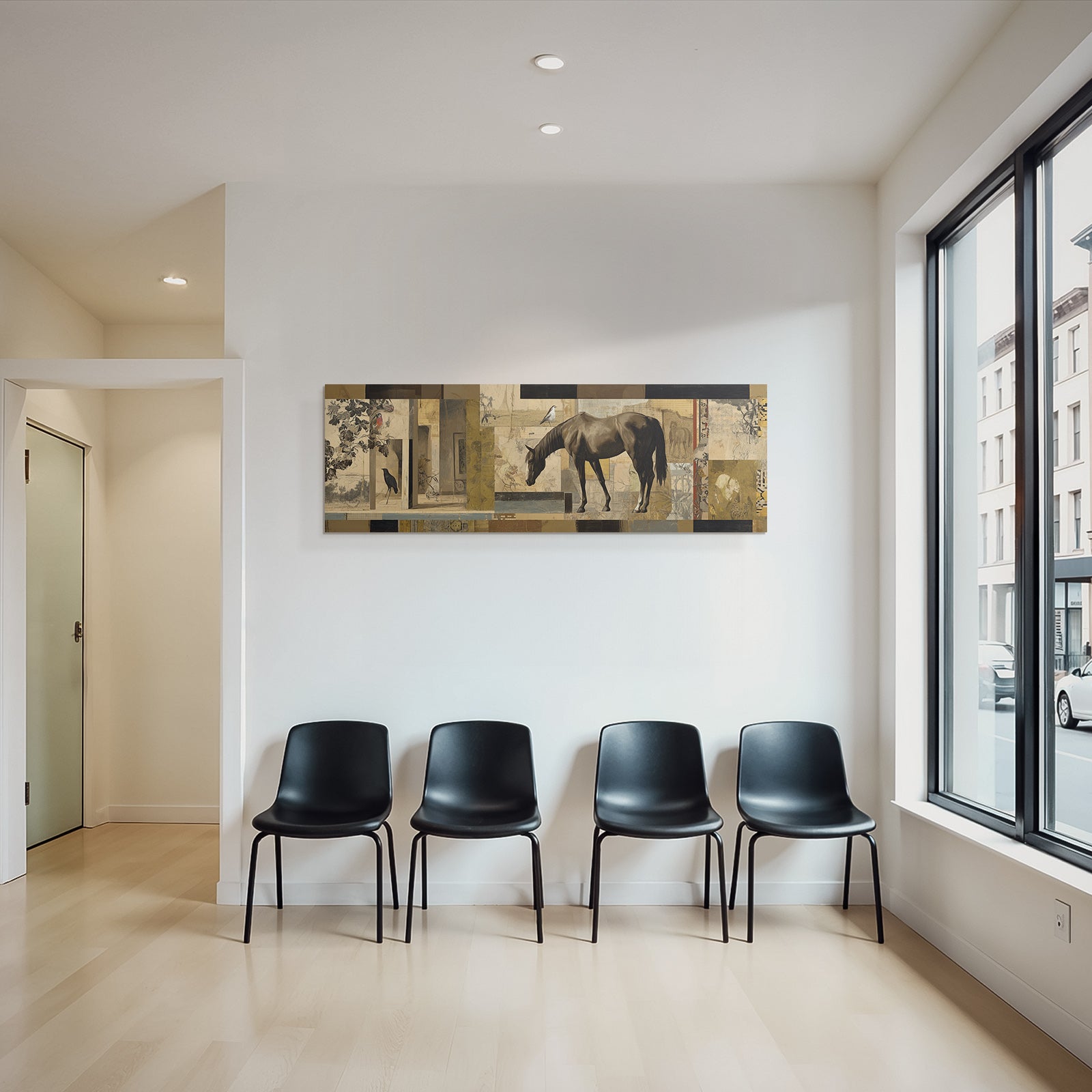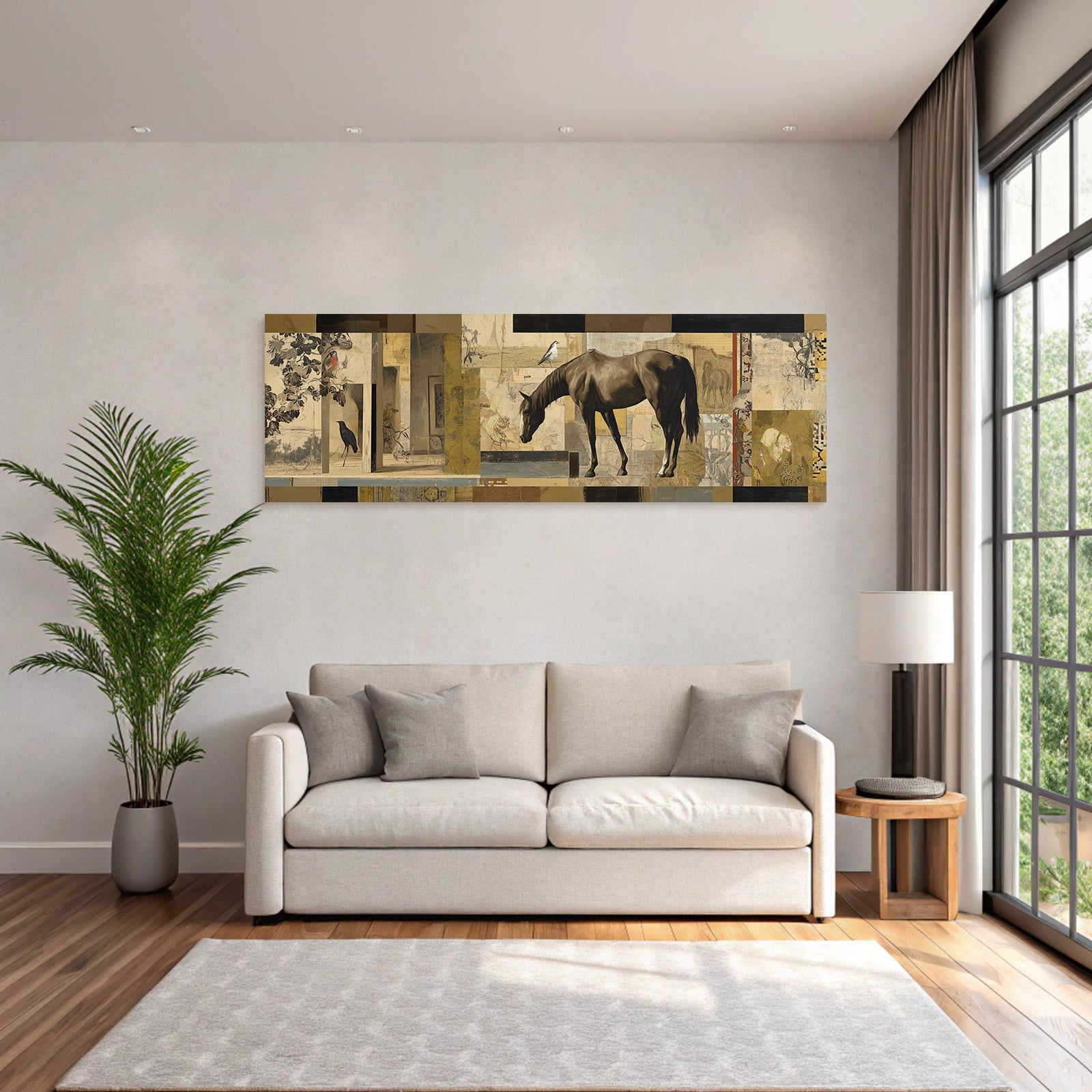 Ein Stück Collagen für Deine vier Wände: Das Werk „„Pferd In Der Natur Kunst Collage““ im hochwertigen FameFrame bringt kreative Energie in jeden Raum.
