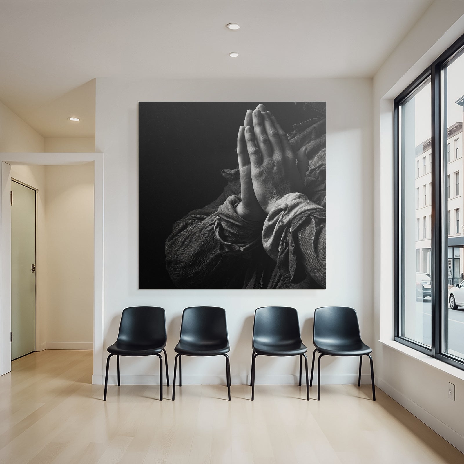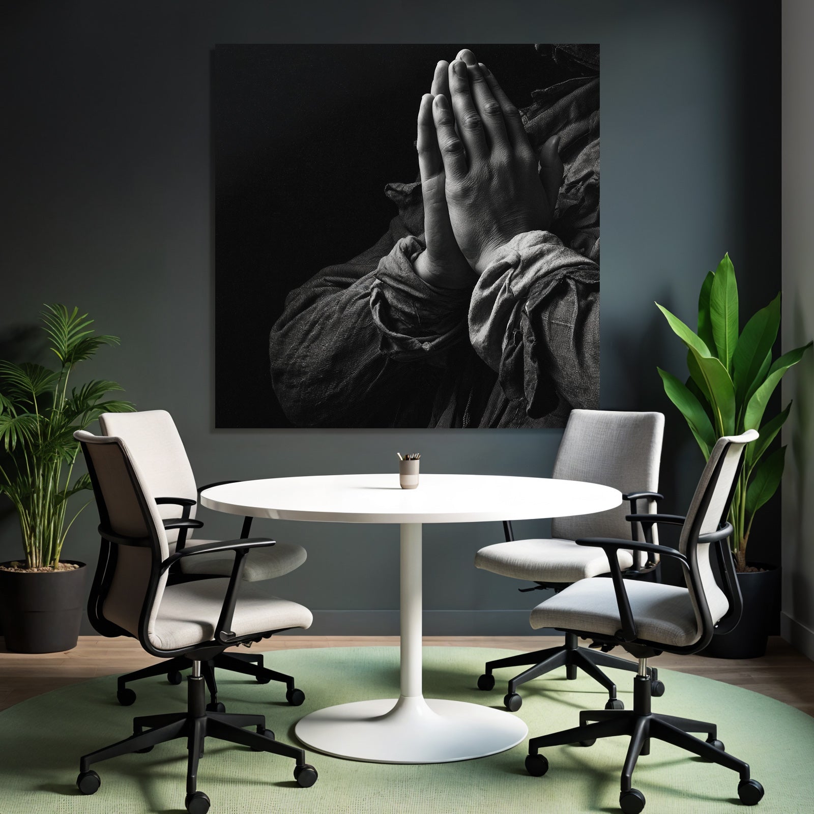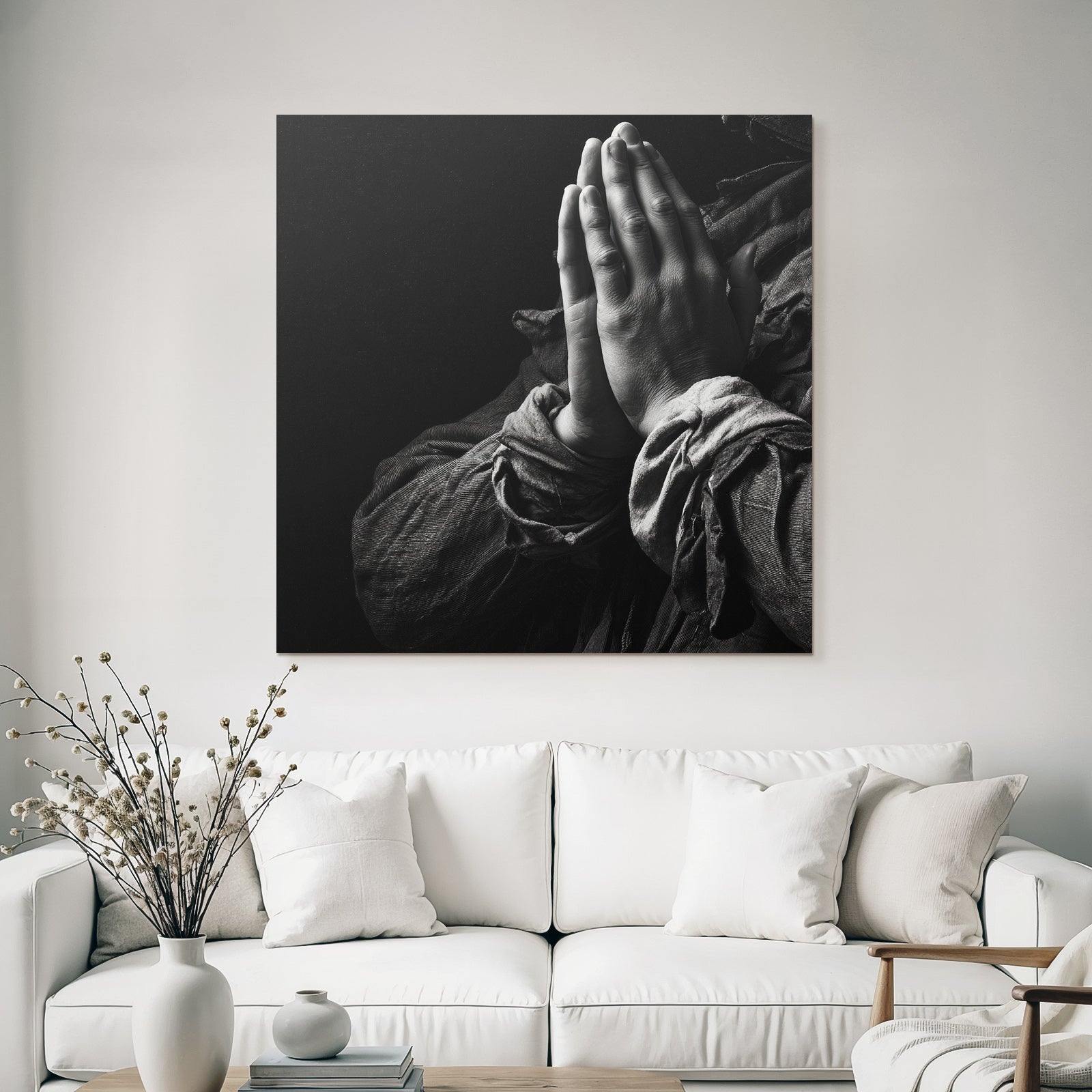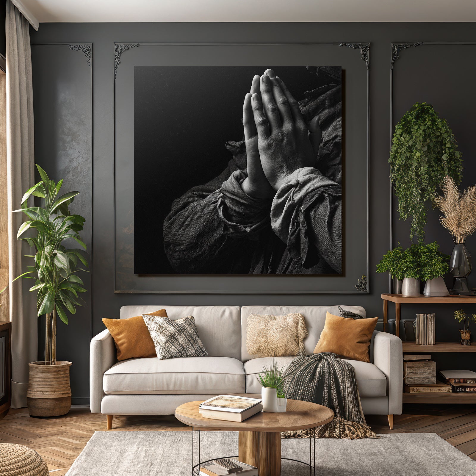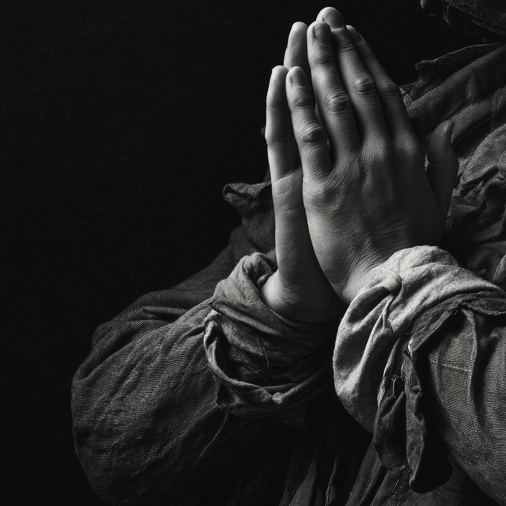 „Hände Im Beten Position Mit Dunklem Hintergrund“ im Stil Hände und Gestik sorgt für stilvolle Ruhe im Schlafzimmer oder inspirierende Energie im Büro – perfekt im FameFrame™ inszeniert.
