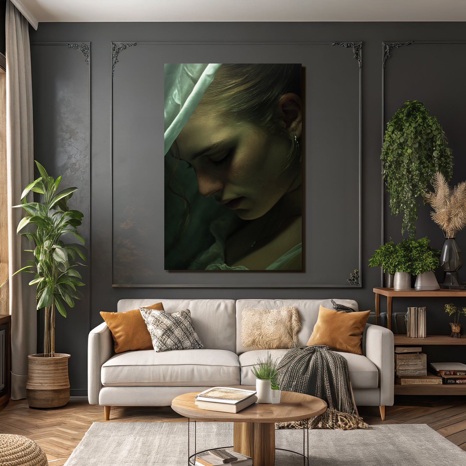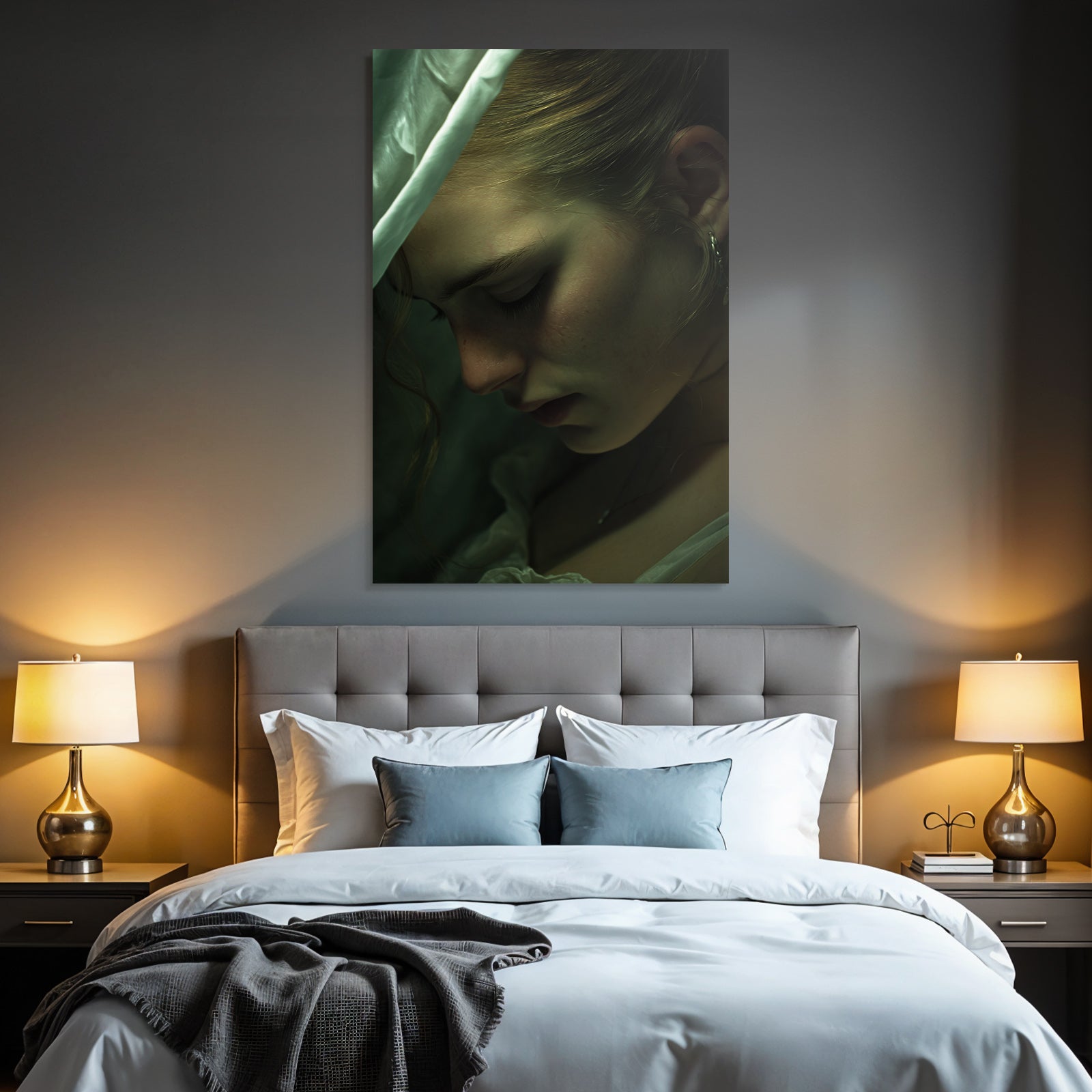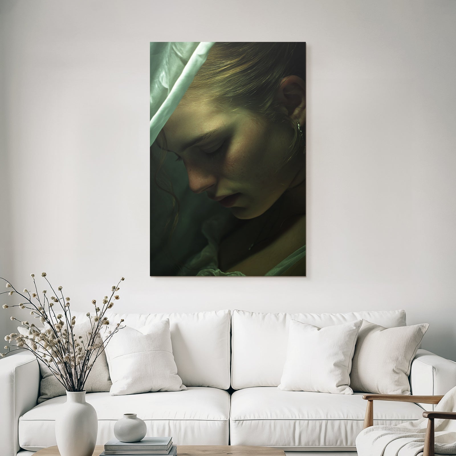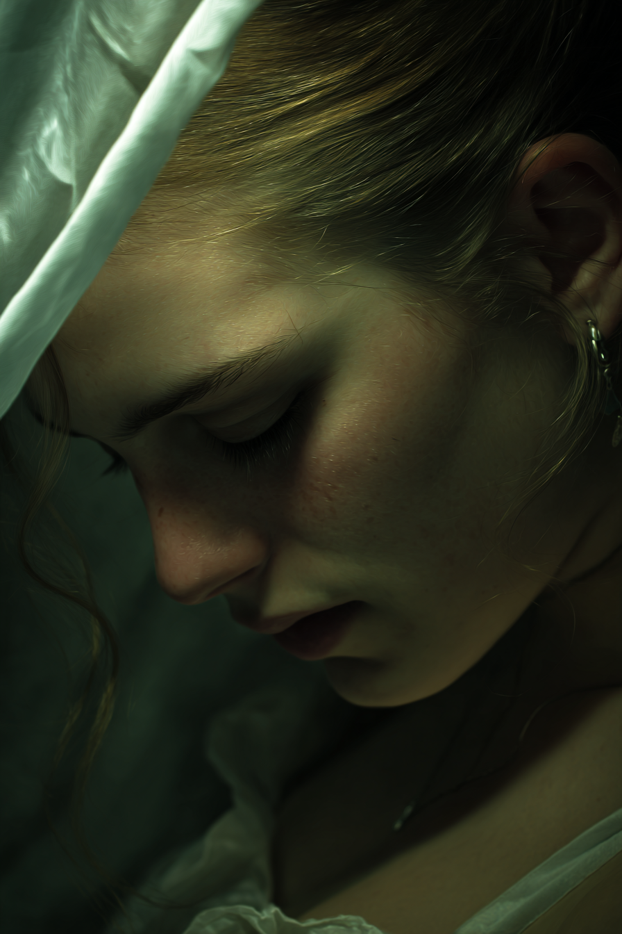Setz ein Statement: „Naheaufnahme Porträt Des Person Mit Weicher Beleuchtung Nachdenklicher Ausdruck“ im Stil Aktkunst und Sinnlichkeit wird im FameFrame™ zum echten Kunstobjekt an Deiner Wand.
