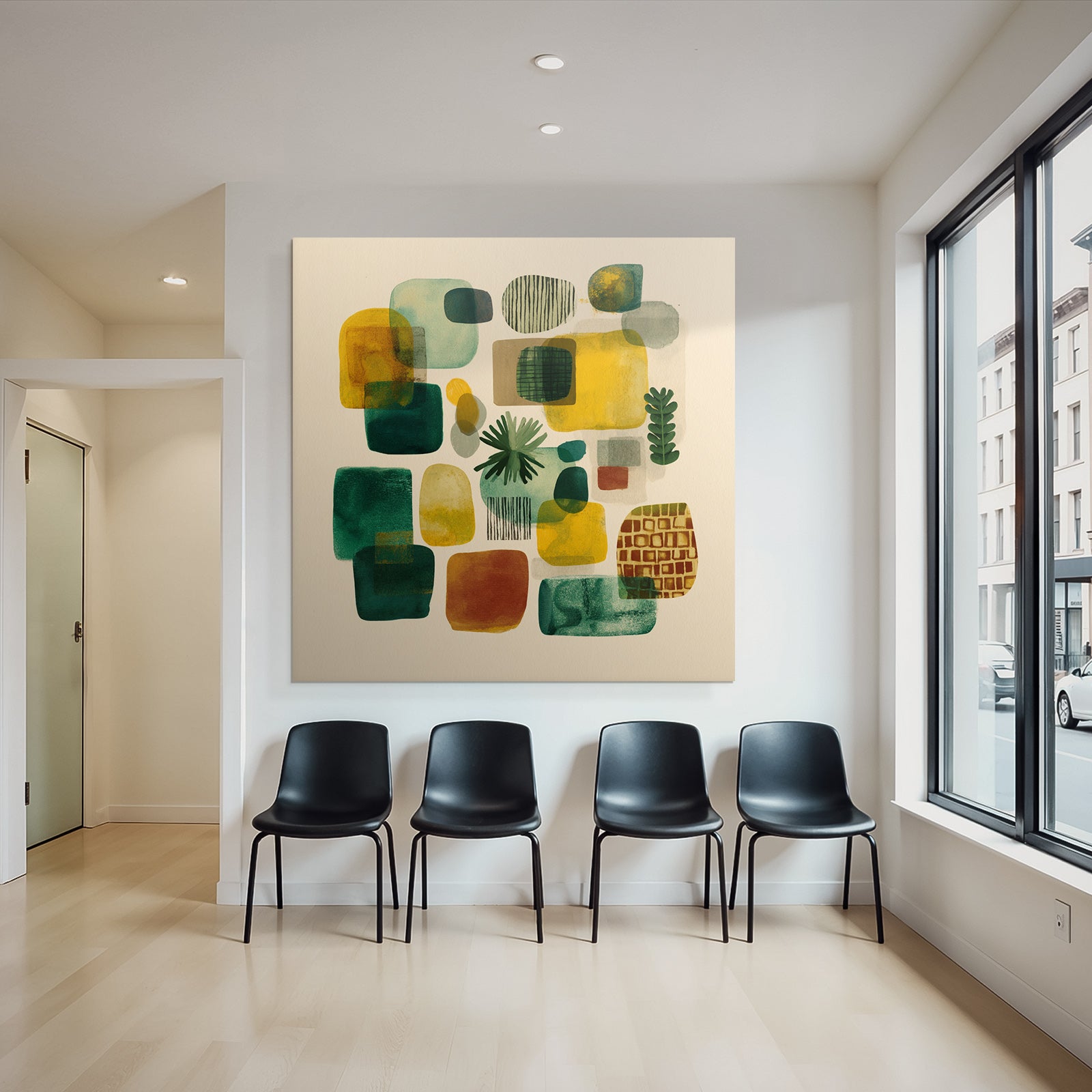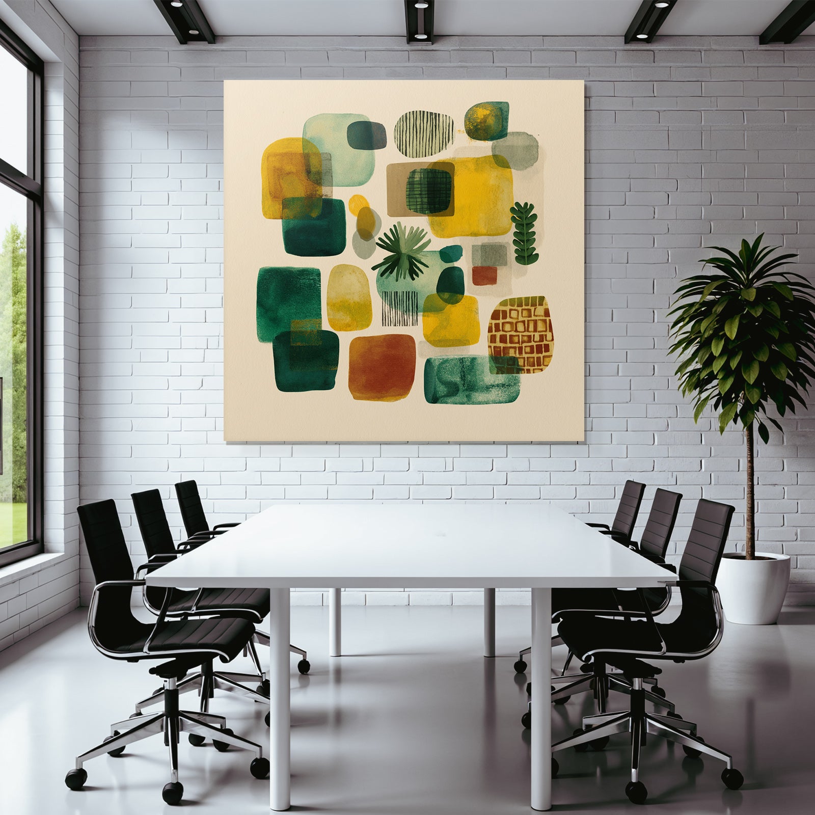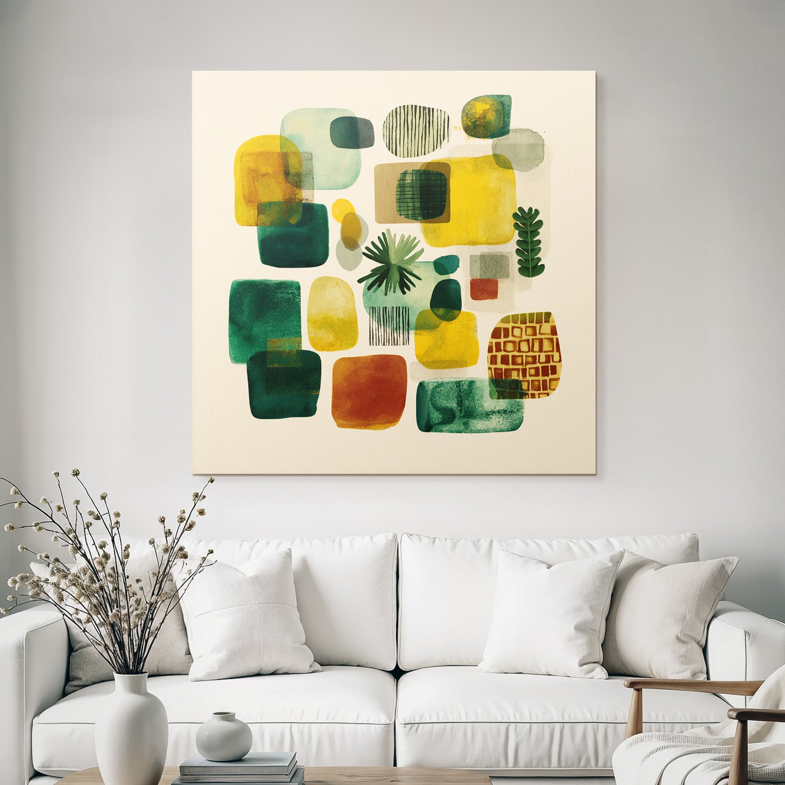 Mach mehr aus Deinem Wohnbereich oder Besprechungszimmer – „„Abstrakte Zusammensetzung Bunt““ im Stil Mid Century Modern überzeugt als eleganter Textildruck im FameFrame.