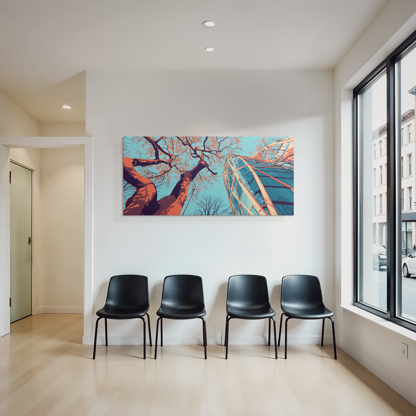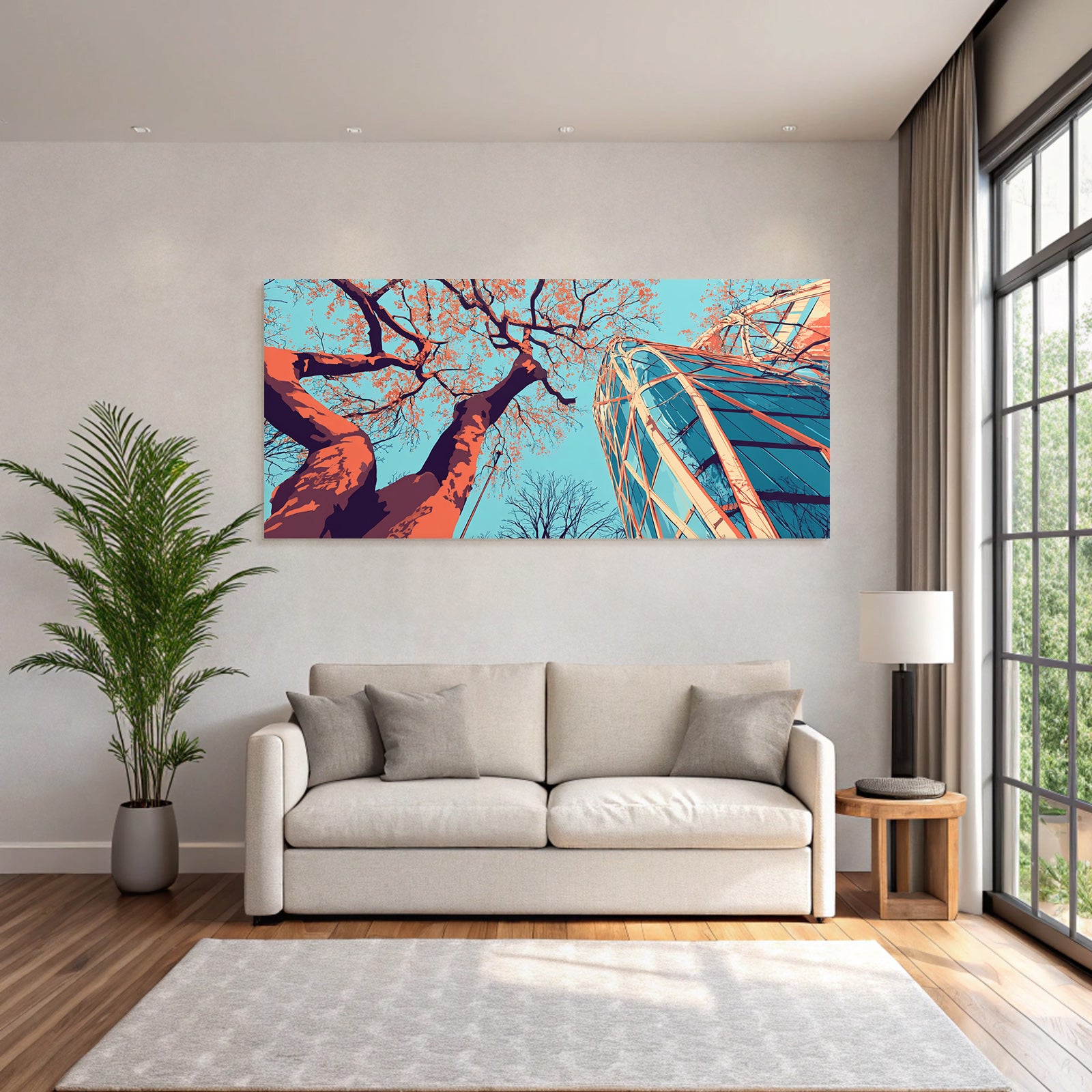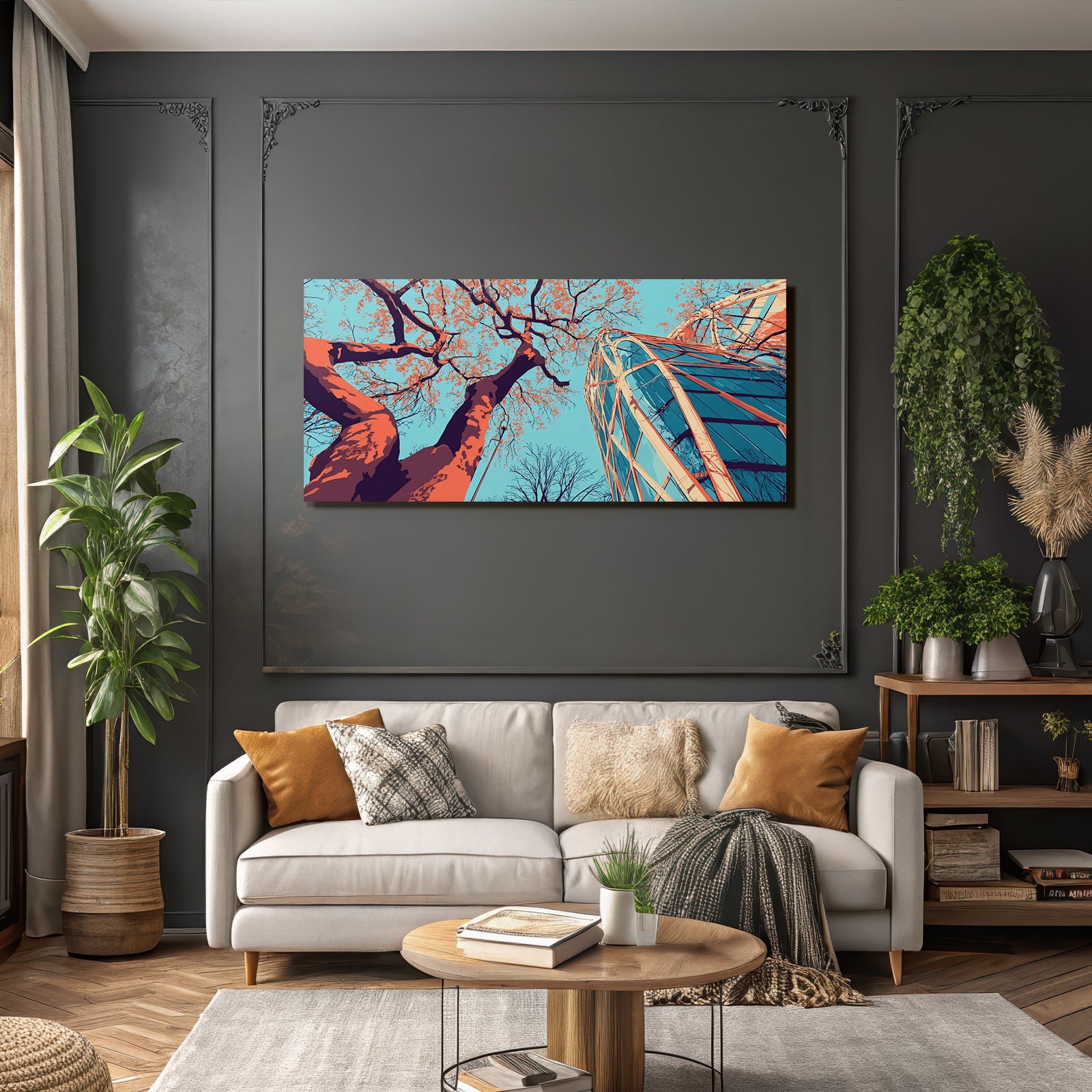 Mit „Moderne Baum Und Kreative Bildkomposition“ entscheiden Sie sich für ein ausdrucksstarkes Kunstwerk im Stil Moderne Architektur. Der FameFrame unterstreicht die moderne und hochwertige Wirkung.