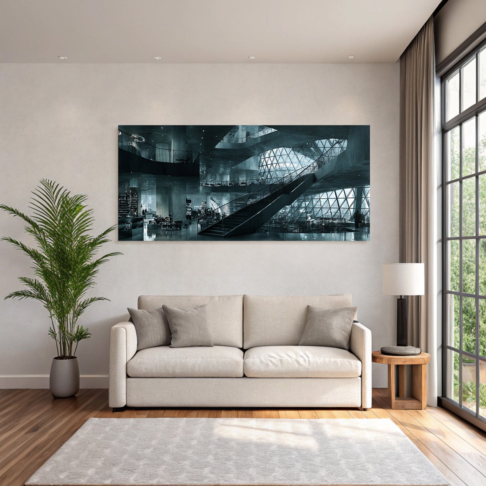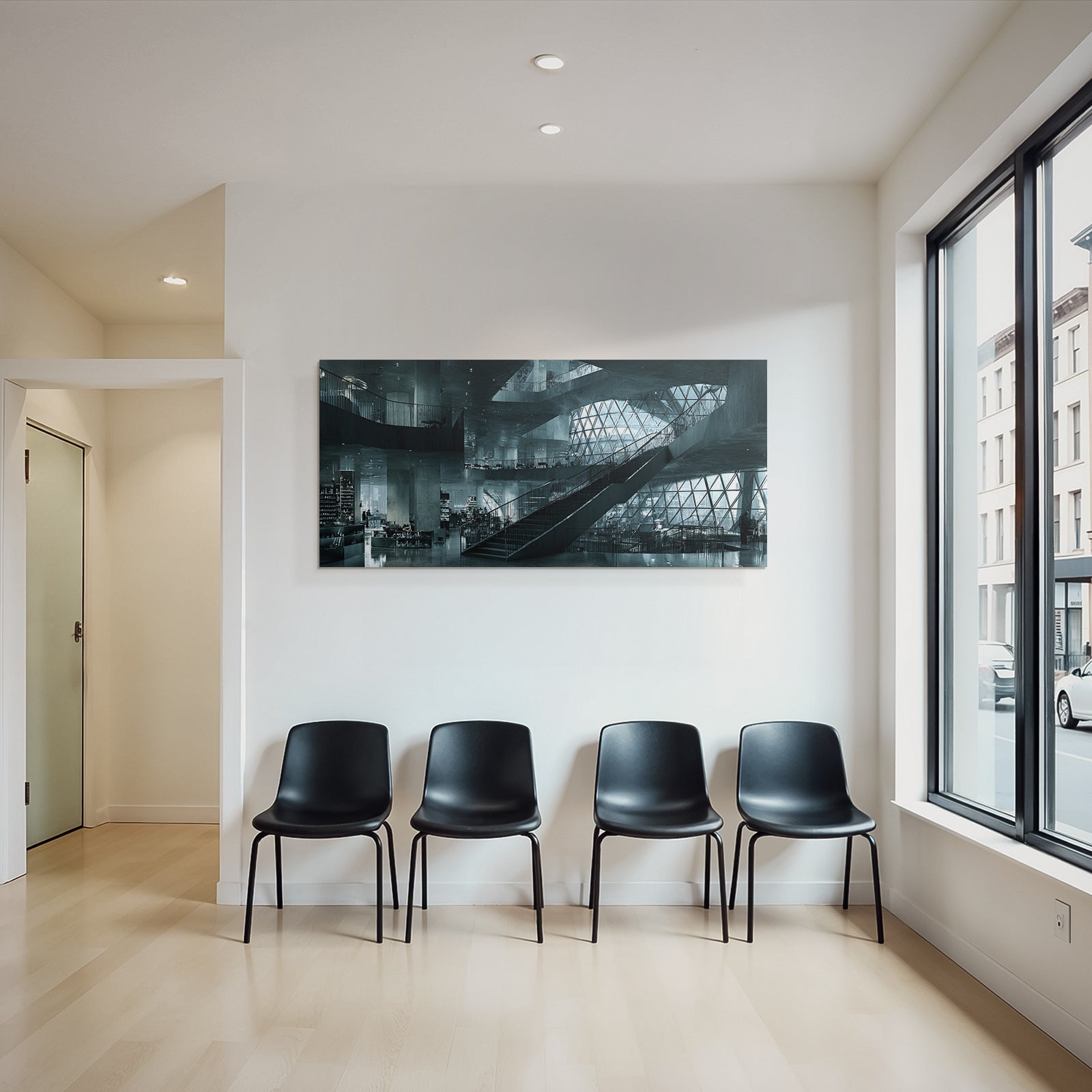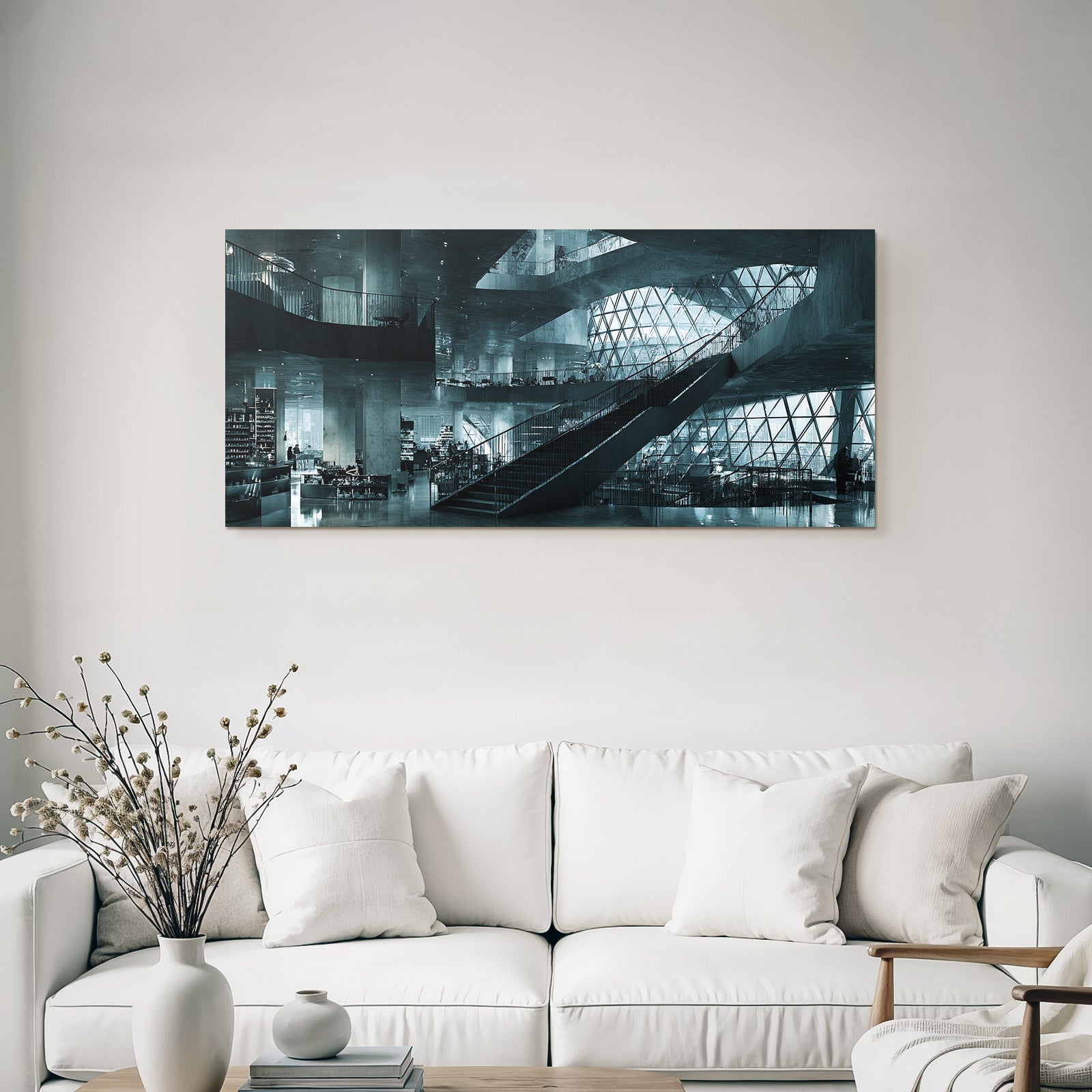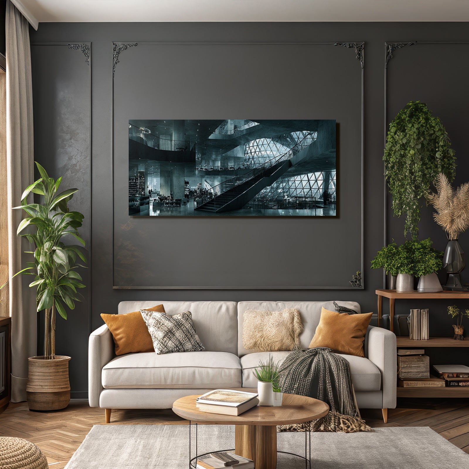 Die Kraft von „Moderne Moderne Innenansicht Öffentlicher Raum“ liegt in seiner einzigartigen Verbindung von Farbe und Form, ganz im Sinne des Stils Moderne Architektur. Der FameFrame bietet dafür die perfekte Bühne.