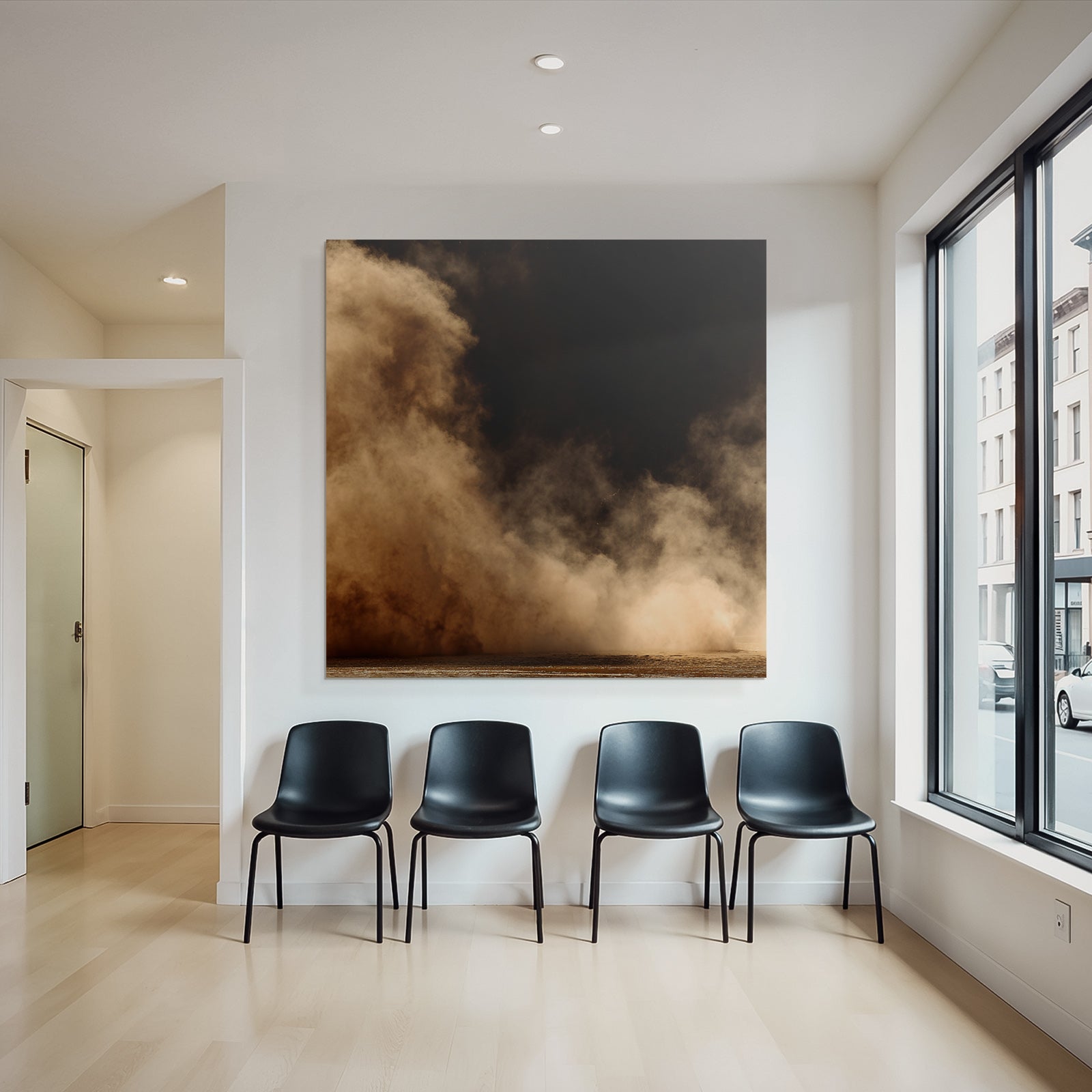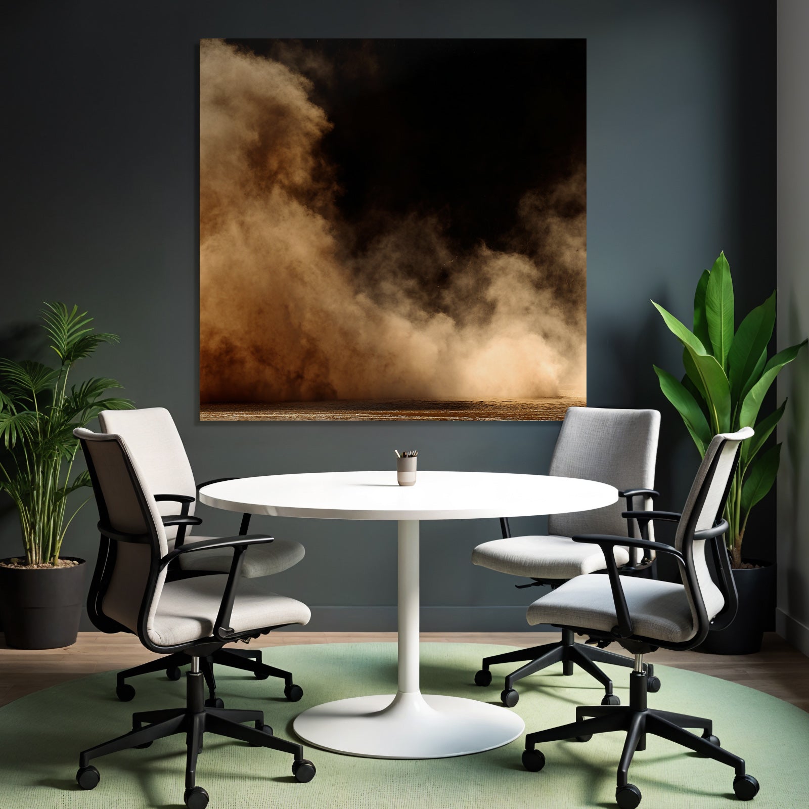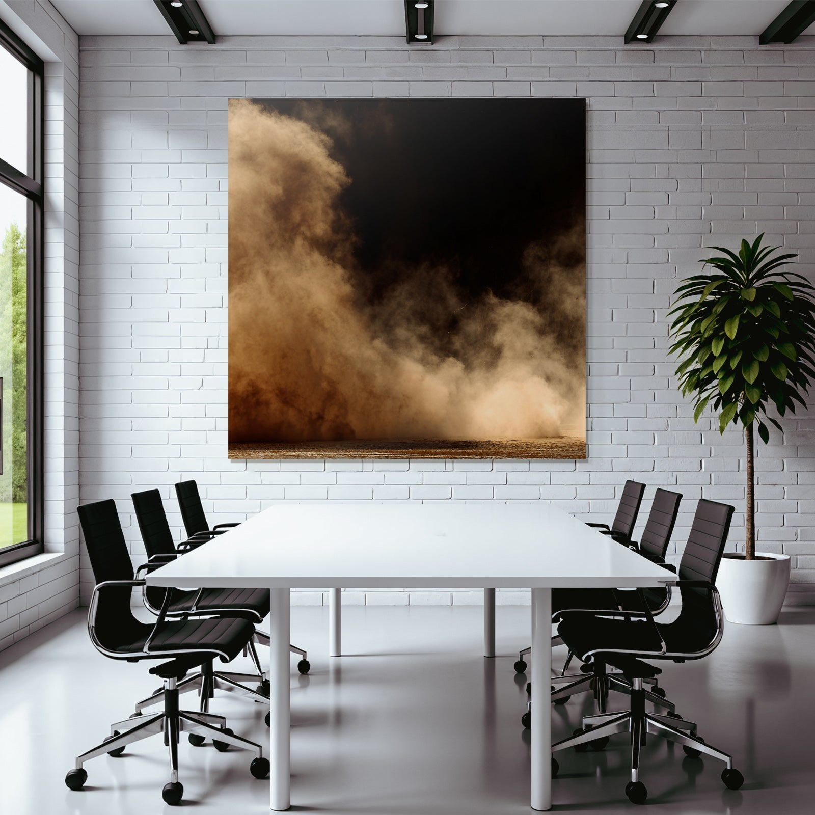 Mit „Aufgewirbelte Staubwolke Vor Dunklem Hintergrund“ entscheiden Sie sich für ein ausdrucksstarkes Kunstwerk im Stil Nahaufnahmen. Der FameFrame unterstreicht die moderne und hochwertige Wirkung.