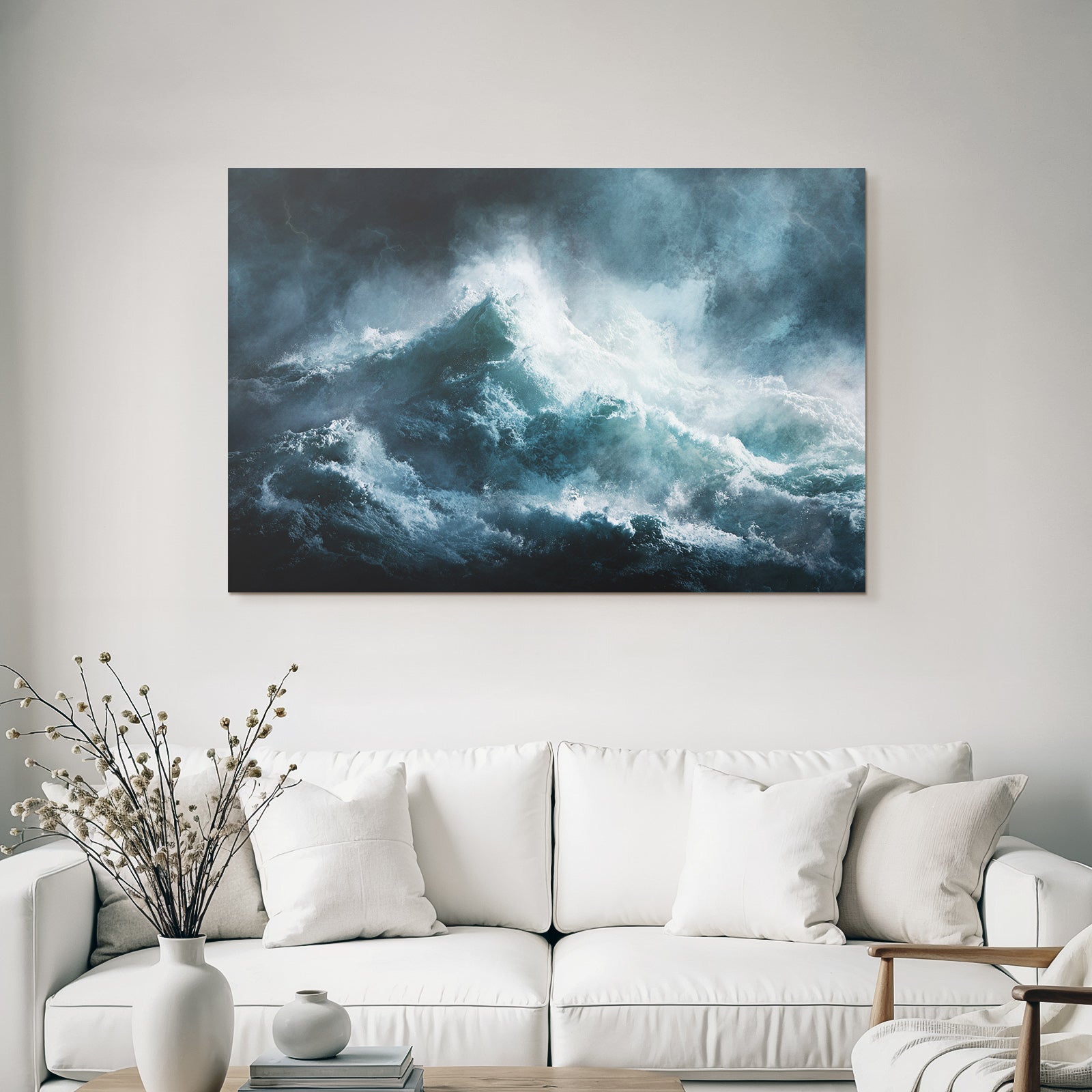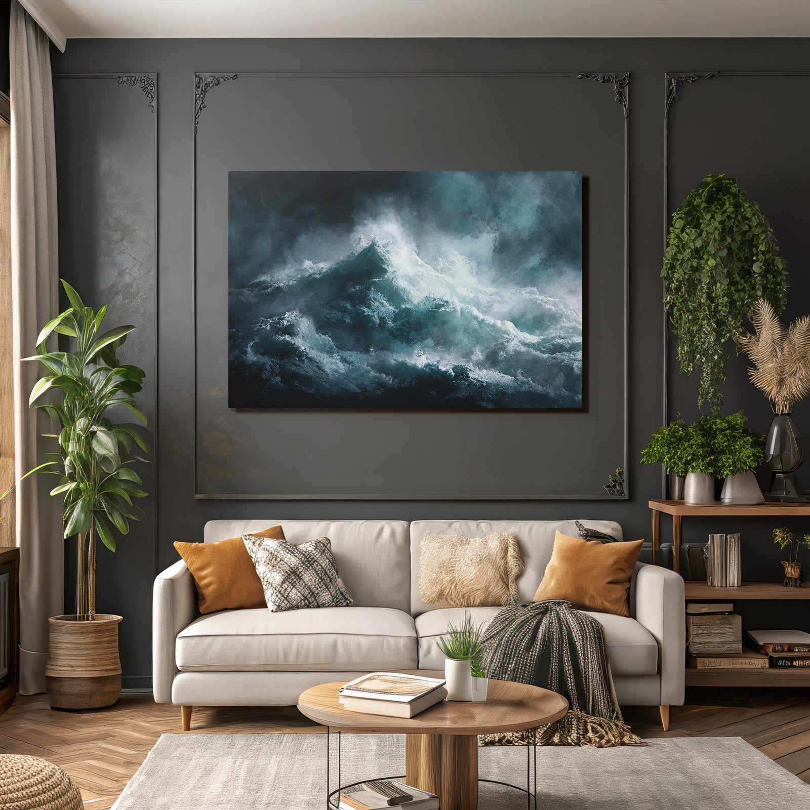 Lassen Sie „Dramatische Ozeanwellen Im Sturm“ für sich sprechen. Dieses Werk im Nahaufnahmen-Design wird durch die Präsentation im FameFrame zu einem echten Galerie-Stück für Ihr Zuhause.