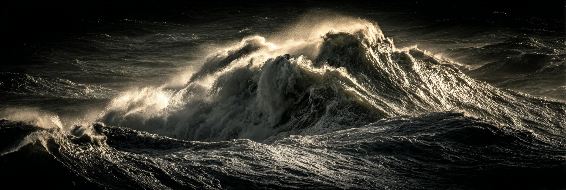 Dramatische Ozeanwellen In Stürmischer Beleuchtung