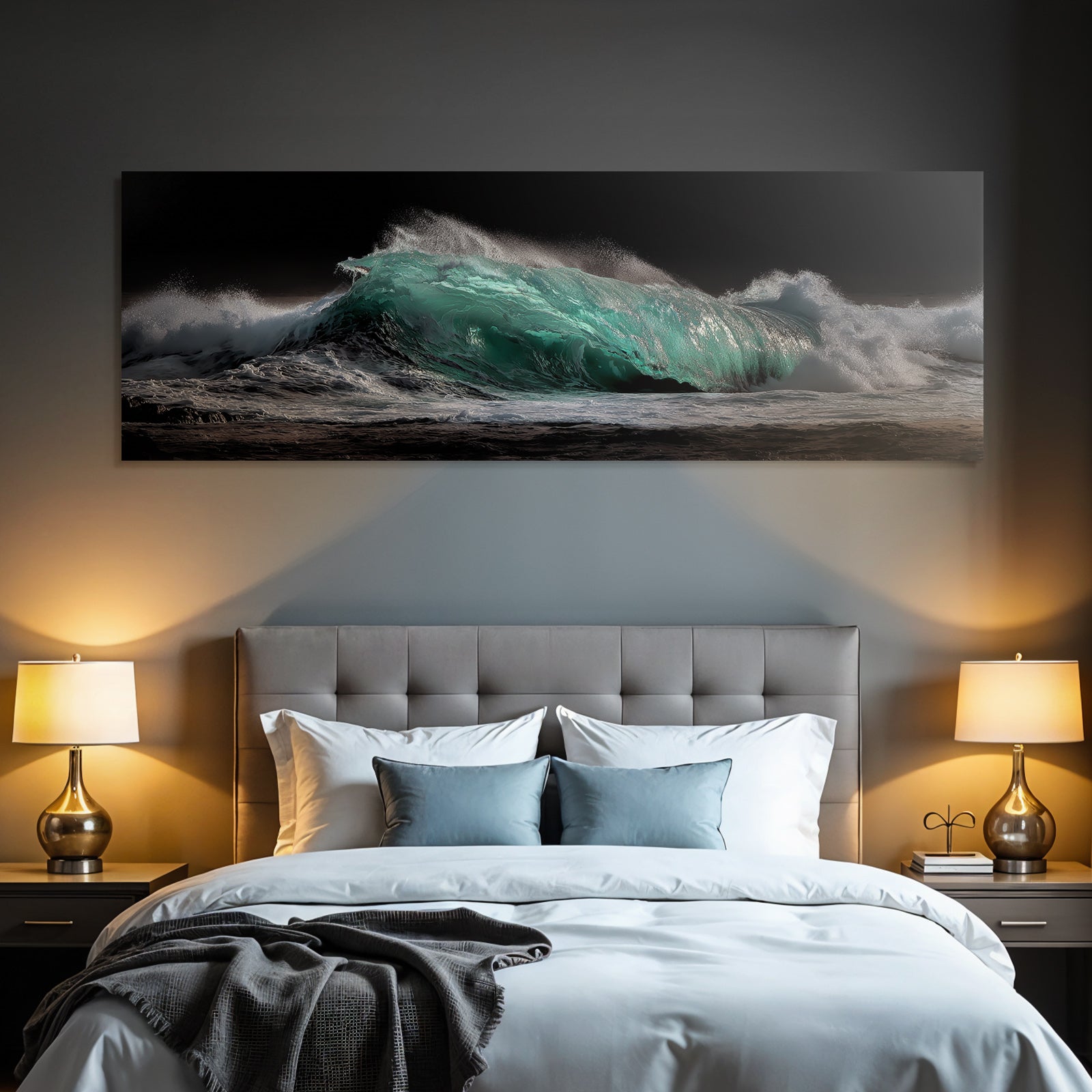 Die Kombination aus dem Motiv „Riesenwelle Im Dunklen Ozean“ und dem Stil Nahaufnahmen schafft eine Brücke zwischen Klassik und Moderne. Der FameFrame vollendet dieses Zusammenspiel perfekt.