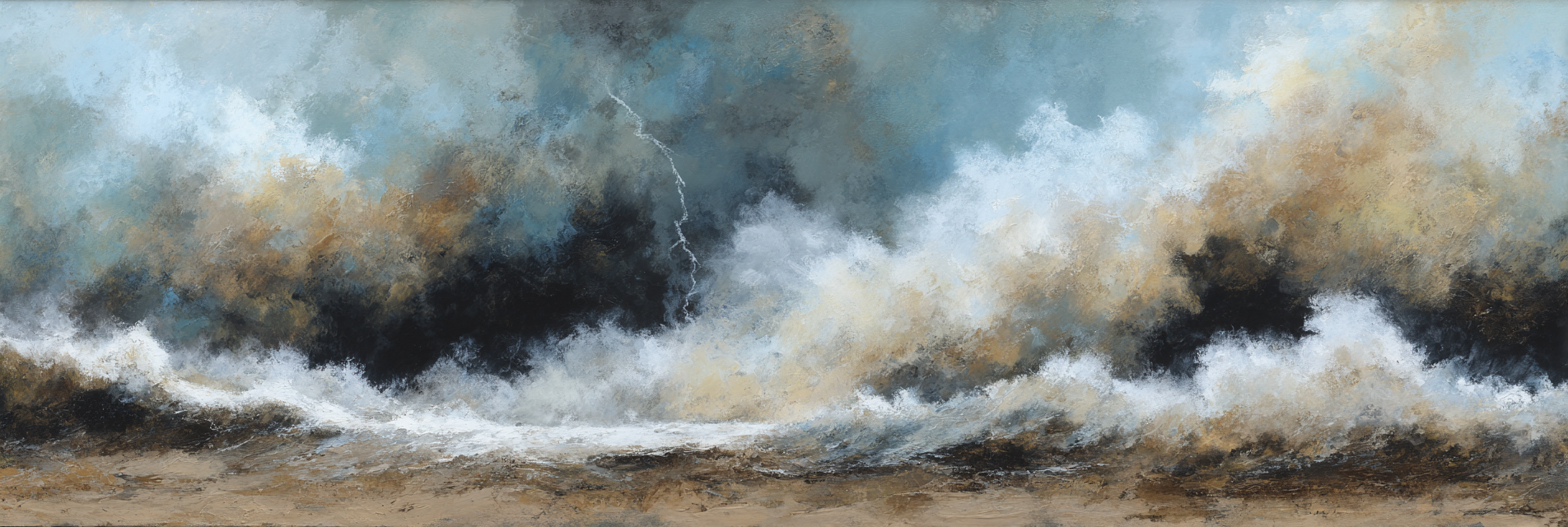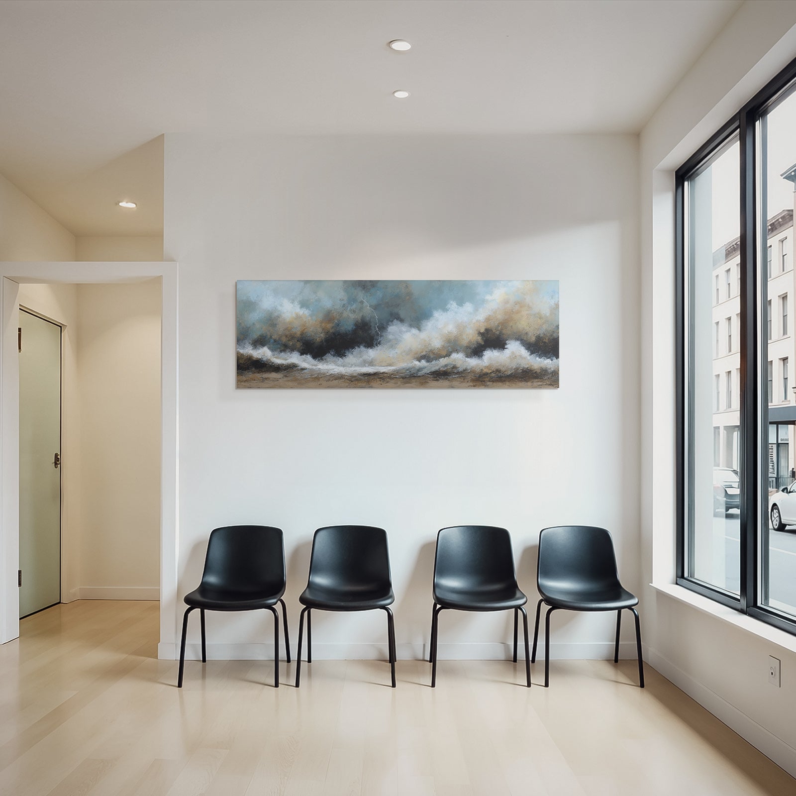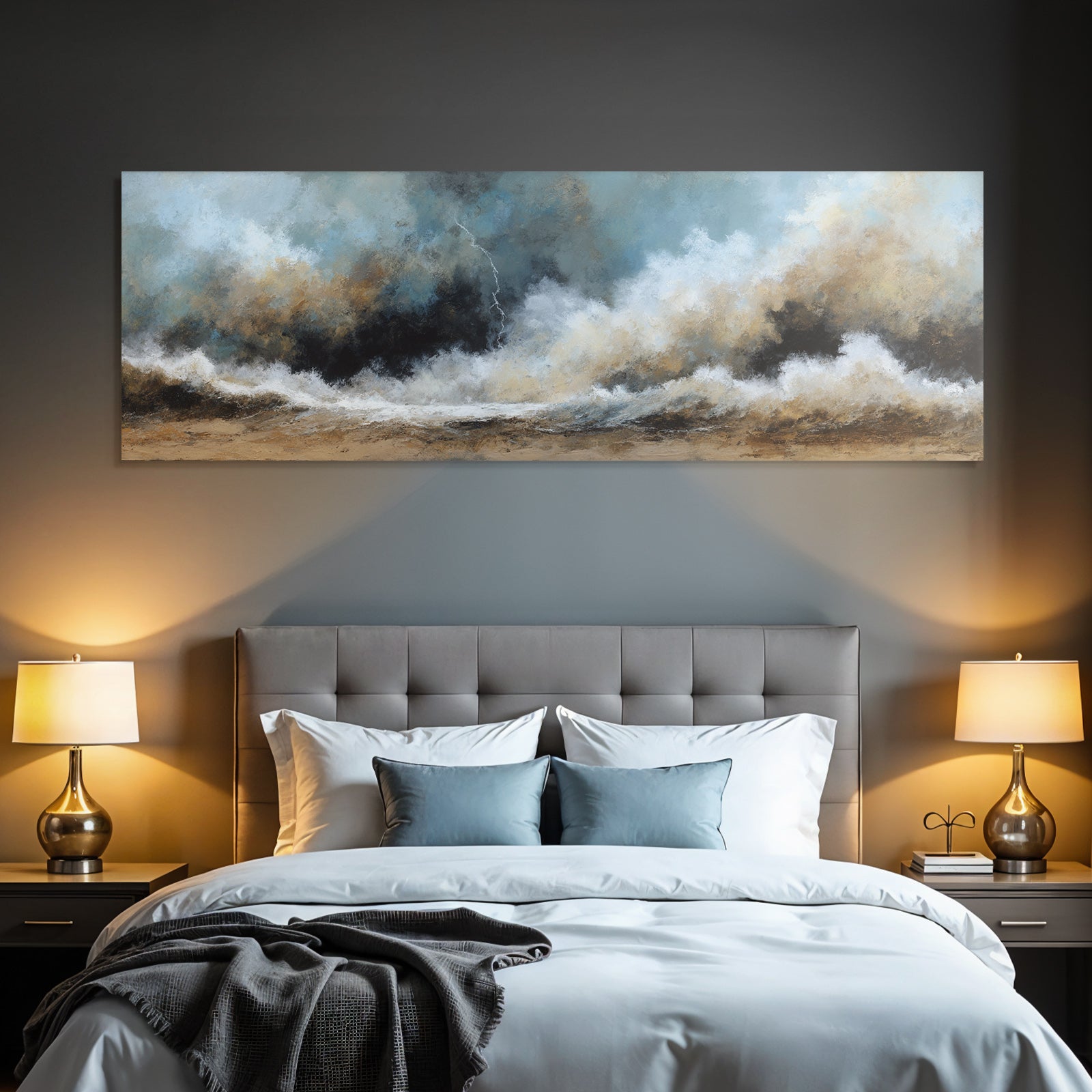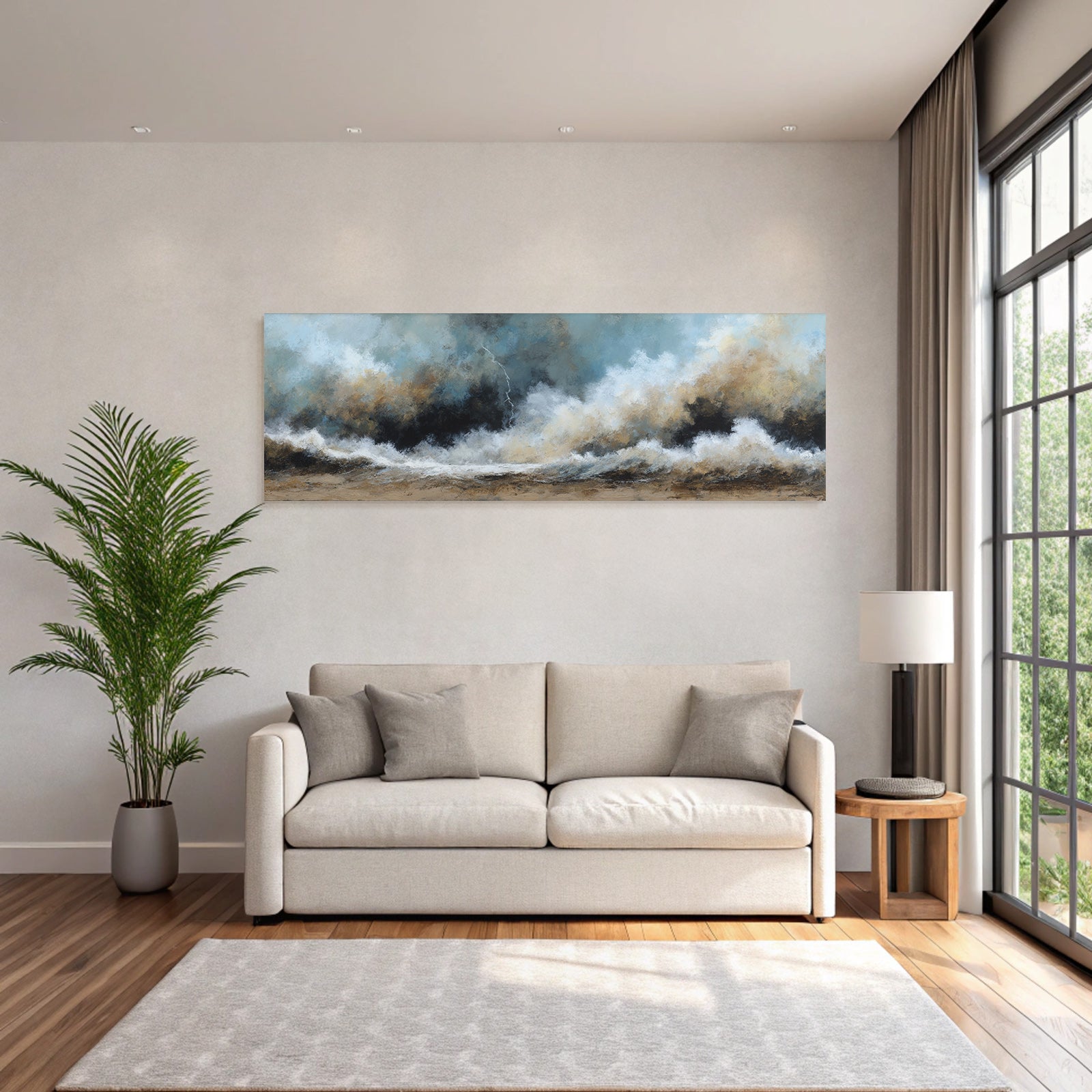 Bringen Sie frischen Wind in Ihr Studio oder Ihren Kreativraum. „Sturmige Meereslandschaft Mit Tosenden Wellen“ als Textildruck im Stil Nahaufnahmen inspiriert im FameFrame zu neuen Ideen.