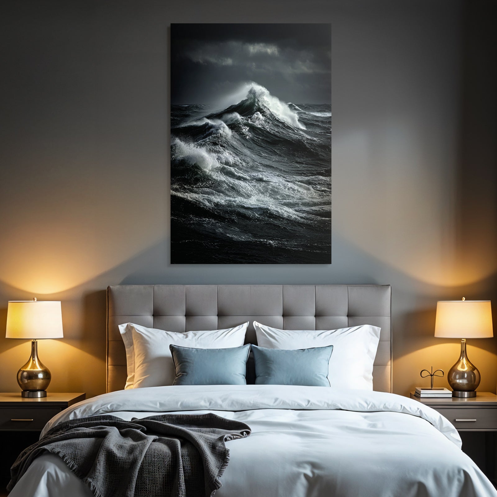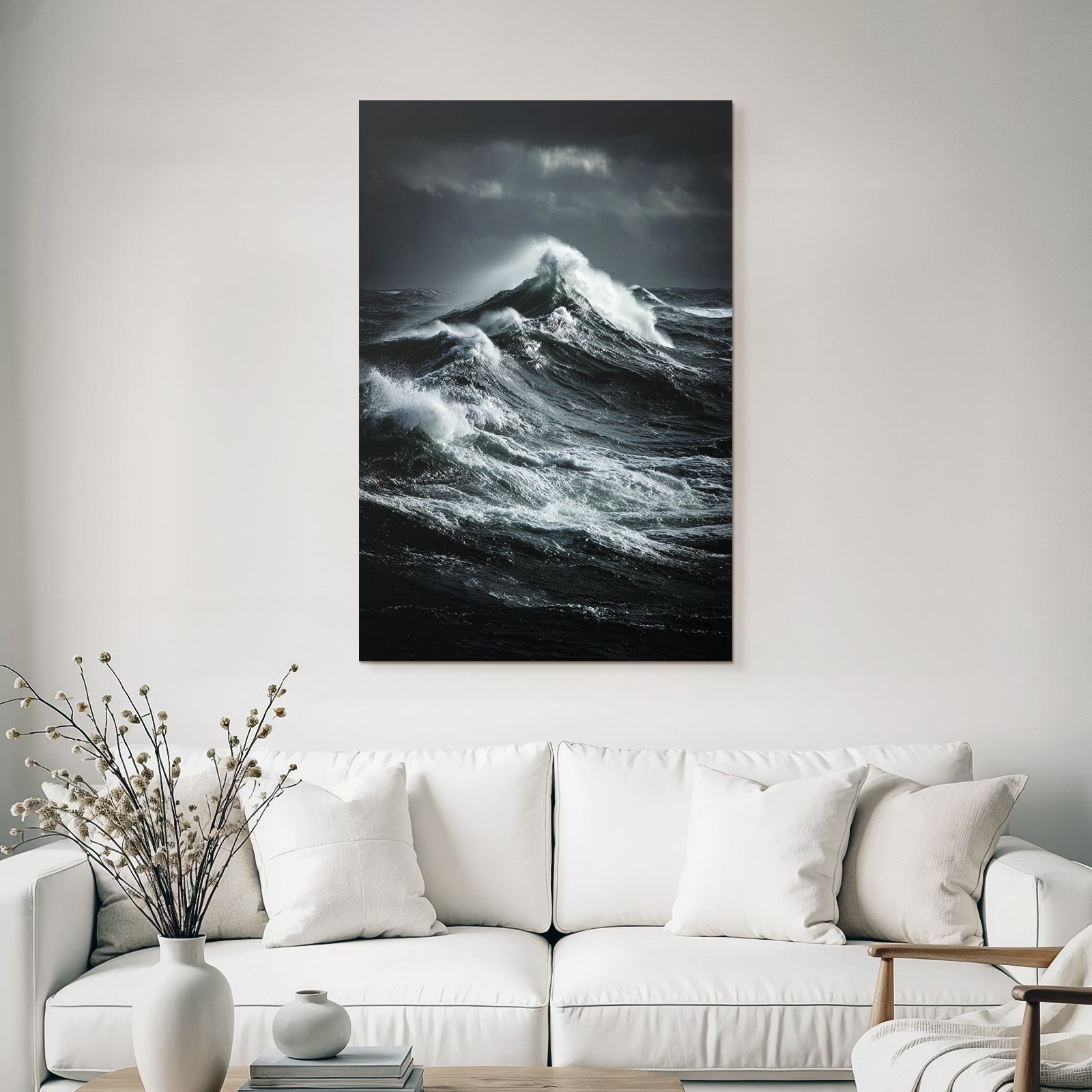 Nahaufnahmen in seiner schönsten Form. Das Motiv „Turbulente Ozeanwellen Unter Dunklem Wolkigen Himmel“ besticht durch seine klare Komposition und wird im FameFrame zu einem Kunstobjekt von bleibendem Wert.