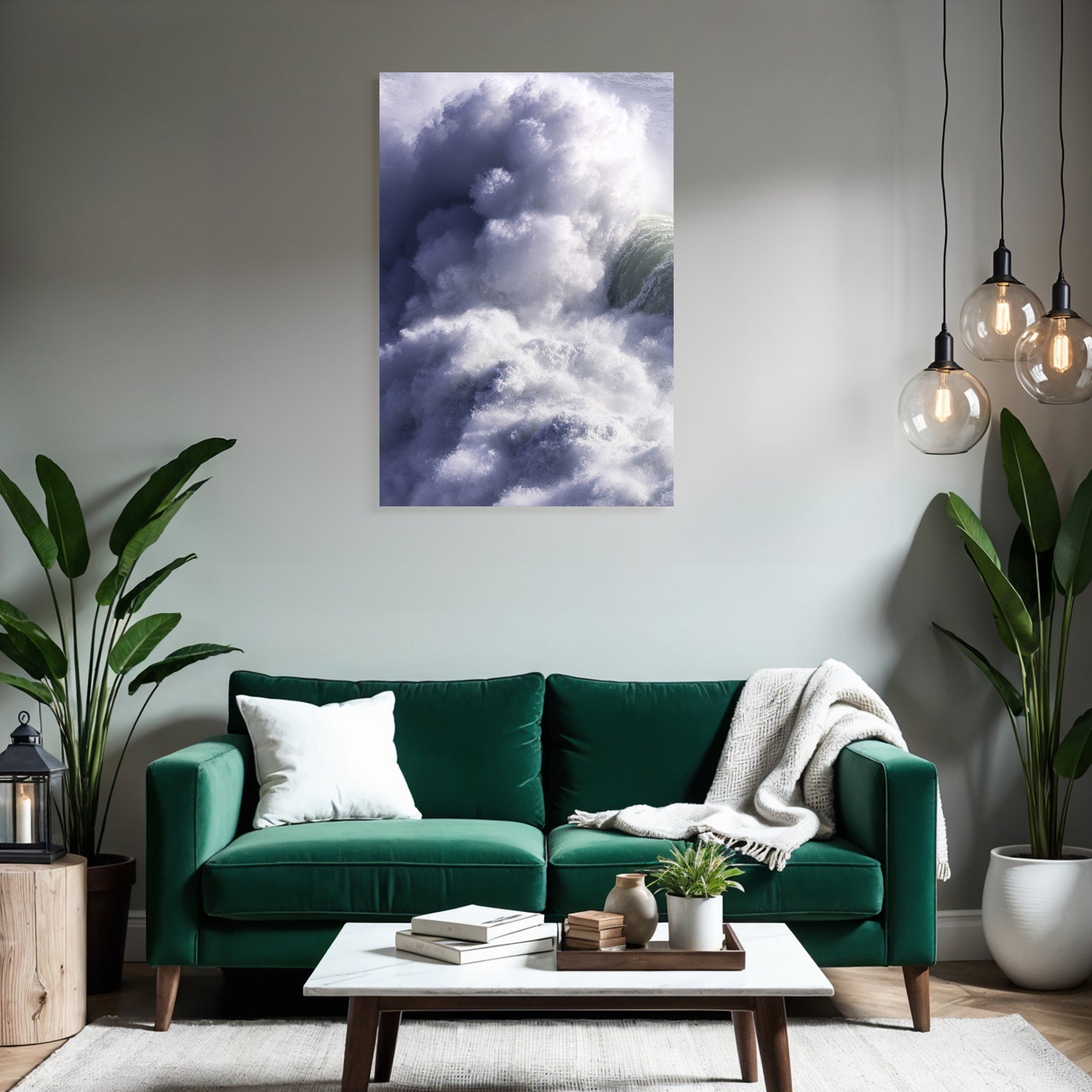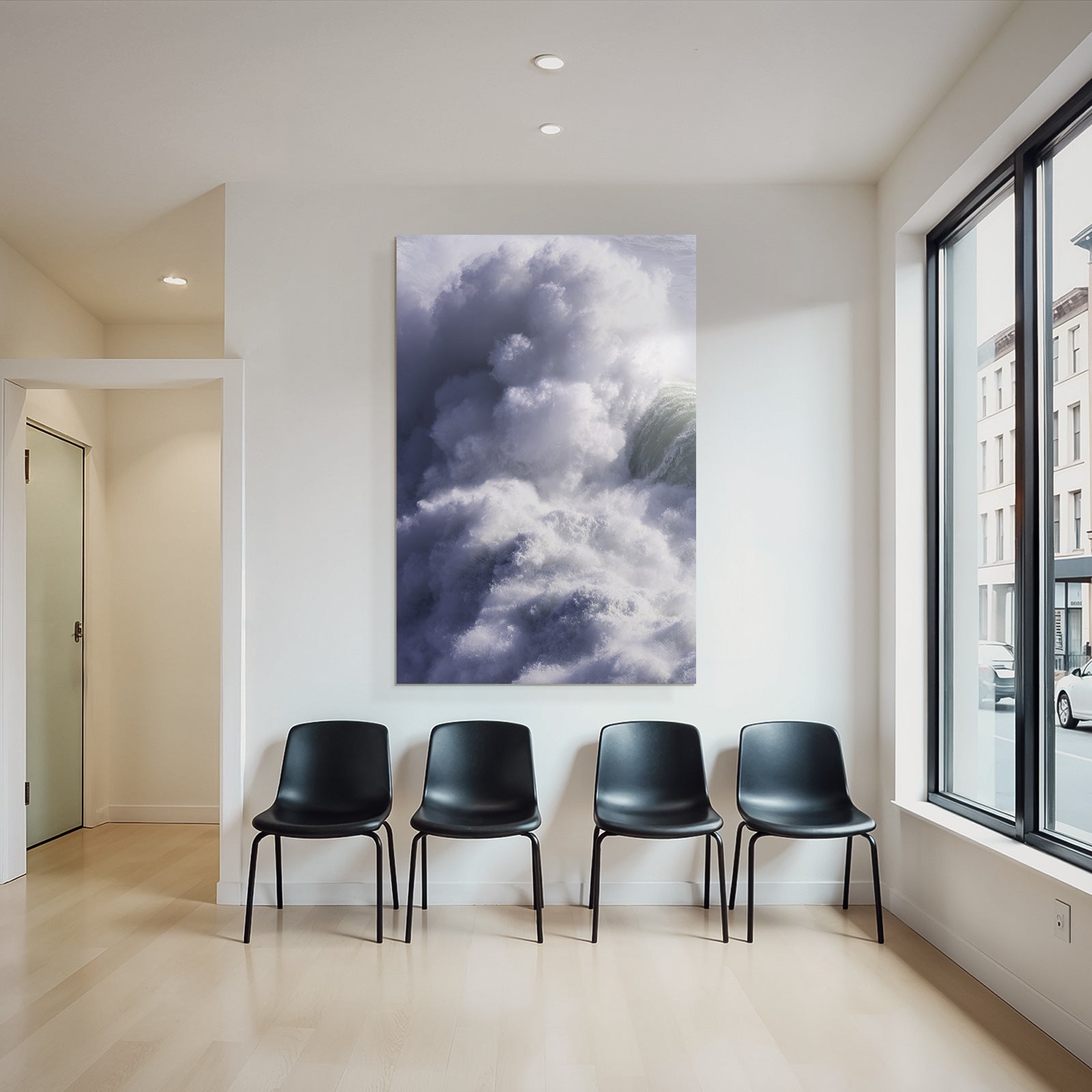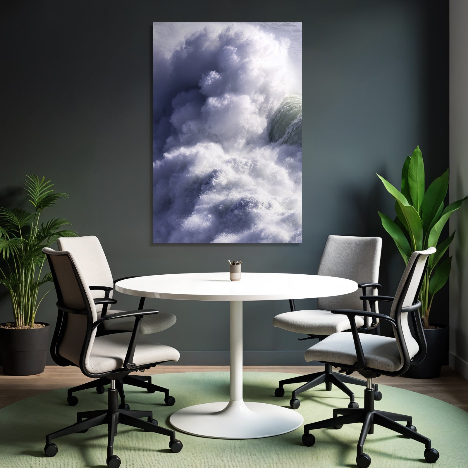 Setze Akzente im Esszimmer, Salon oder Praxisraum mit dem Kunstwerk „Turbulente Ozeanwellen“ im Stil Nahaufnahmen – gespannt im edlen FameFrame.