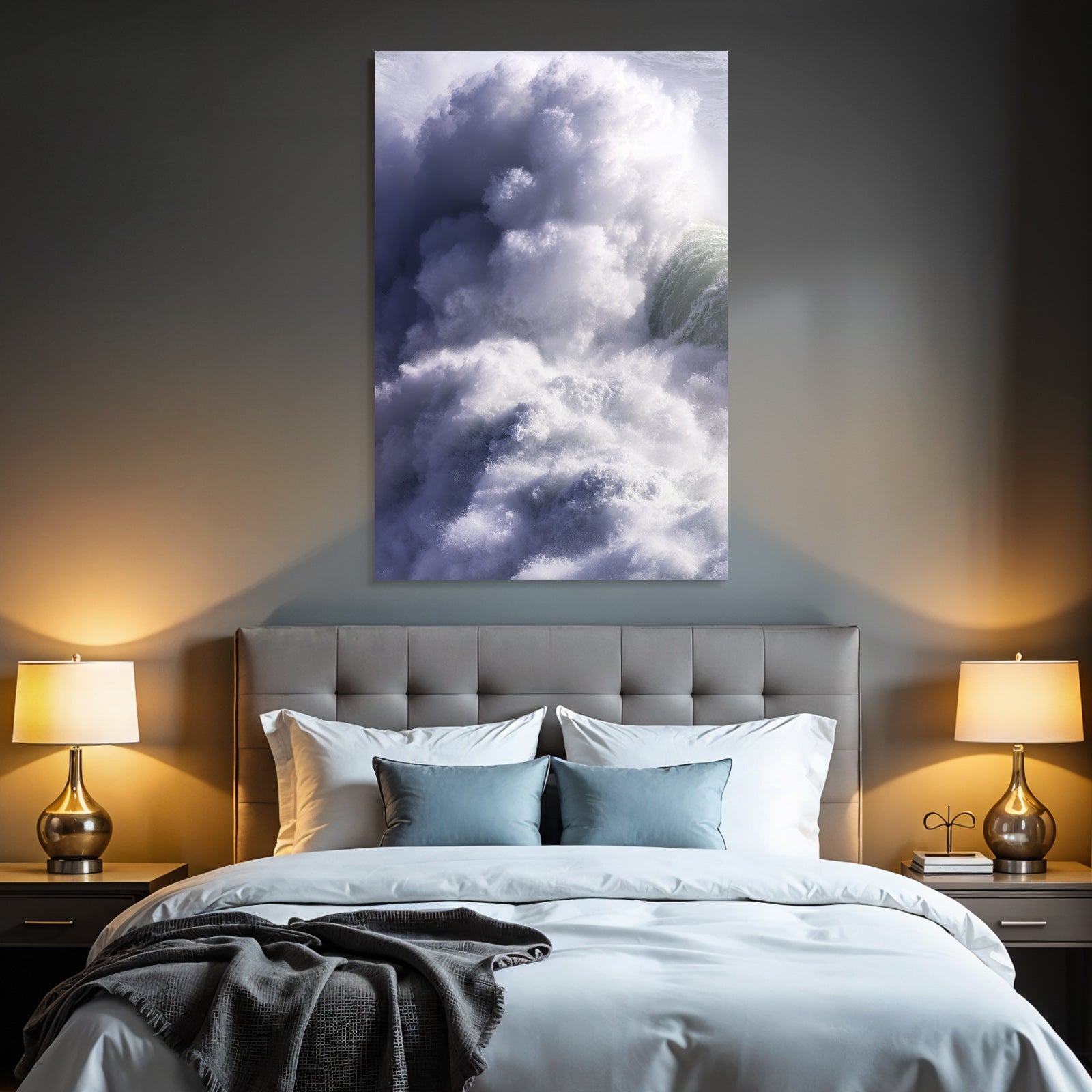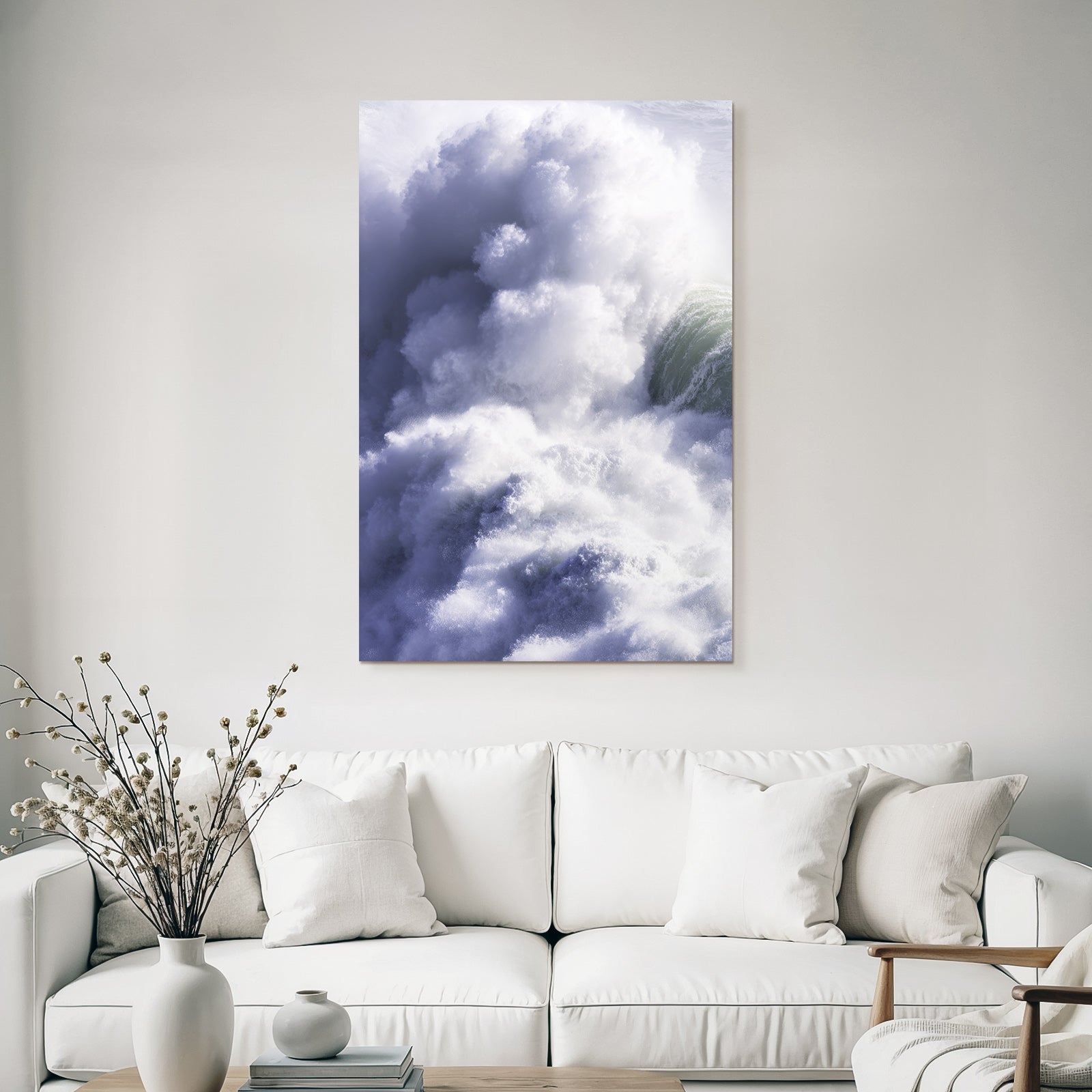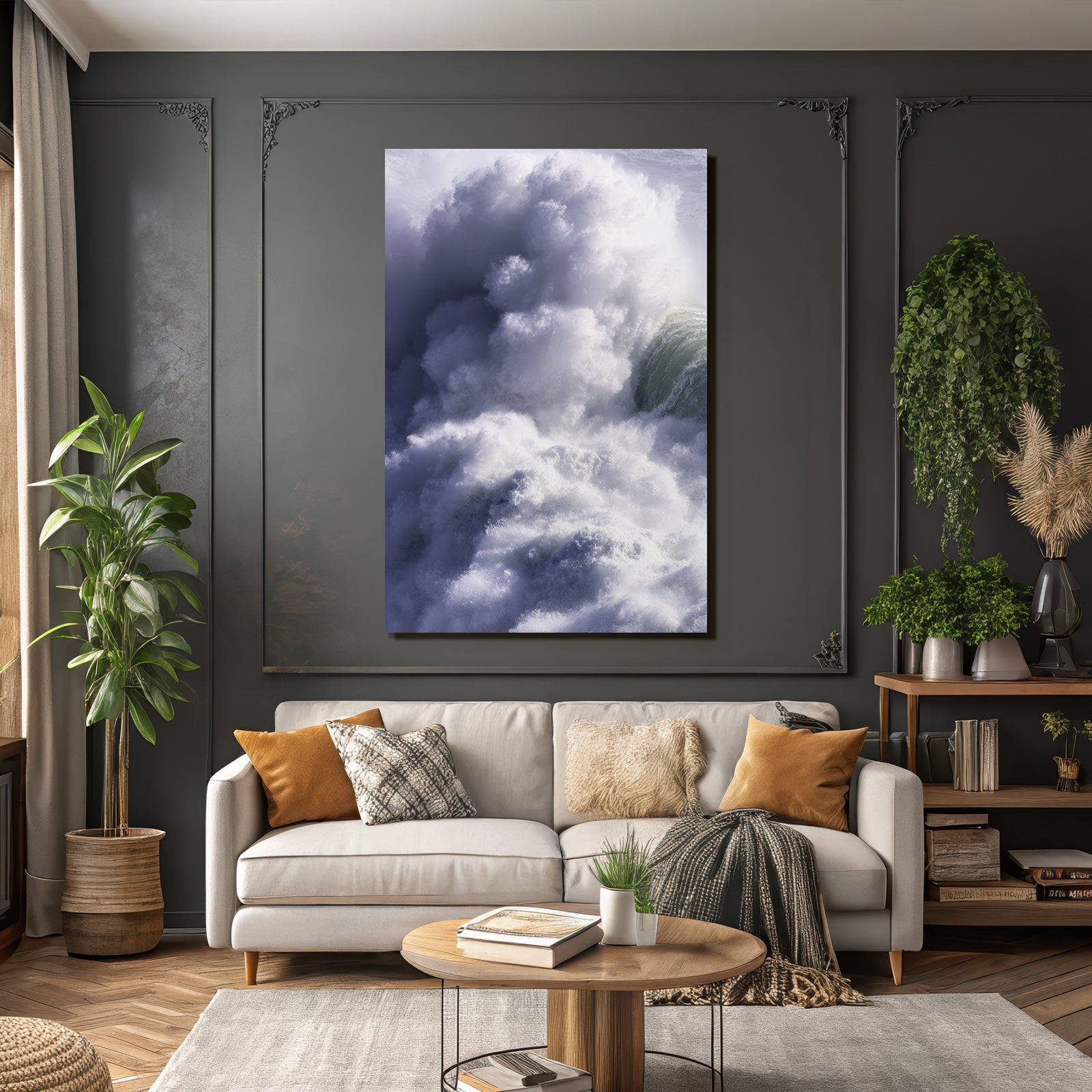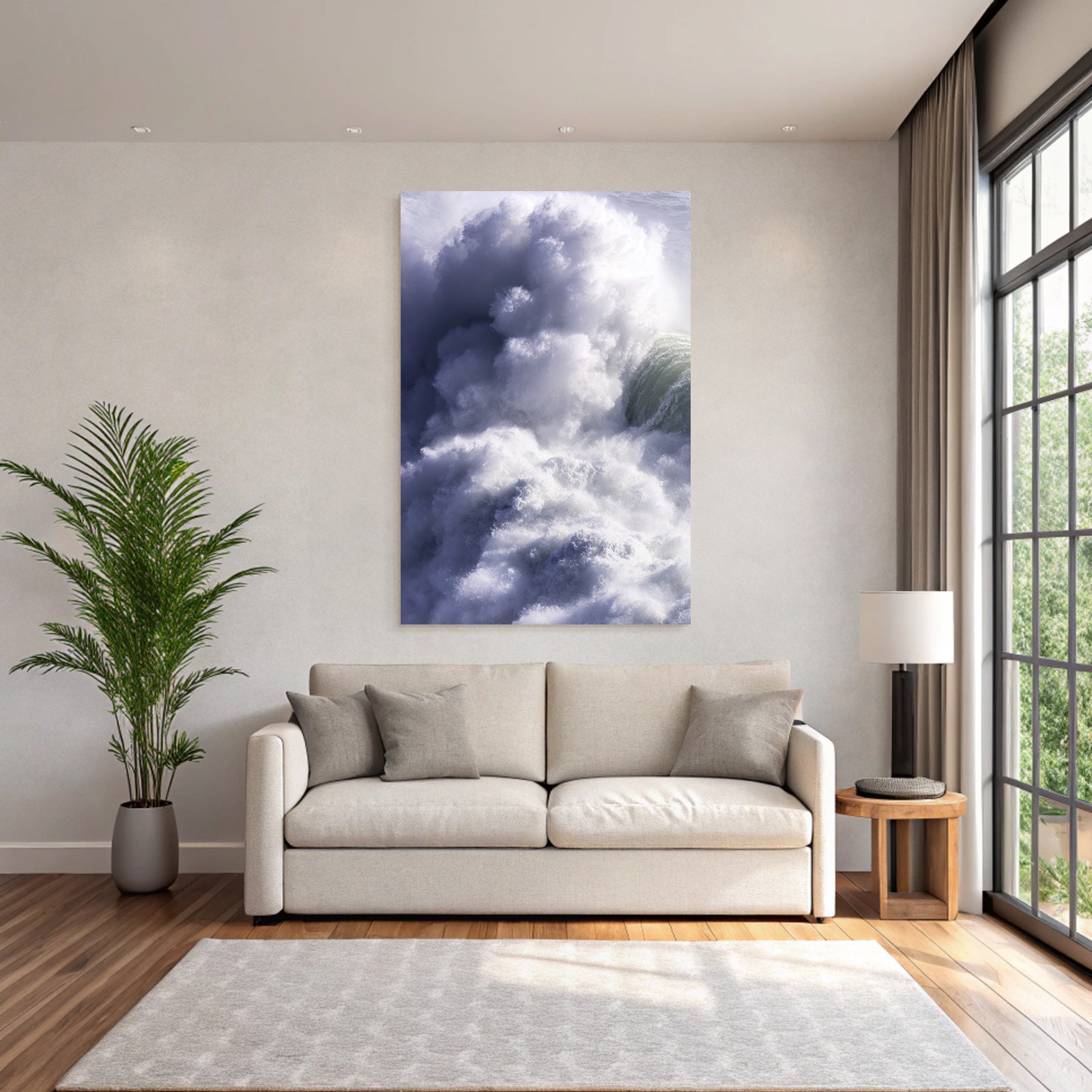 Setze Akzente im Esszimmer, Salon oder Praxisraum mit dem Kunstwerk „Turbulente Ozeanwellen“ im Stil Nahaufnahmen – gespannt im edlen FameFrame.