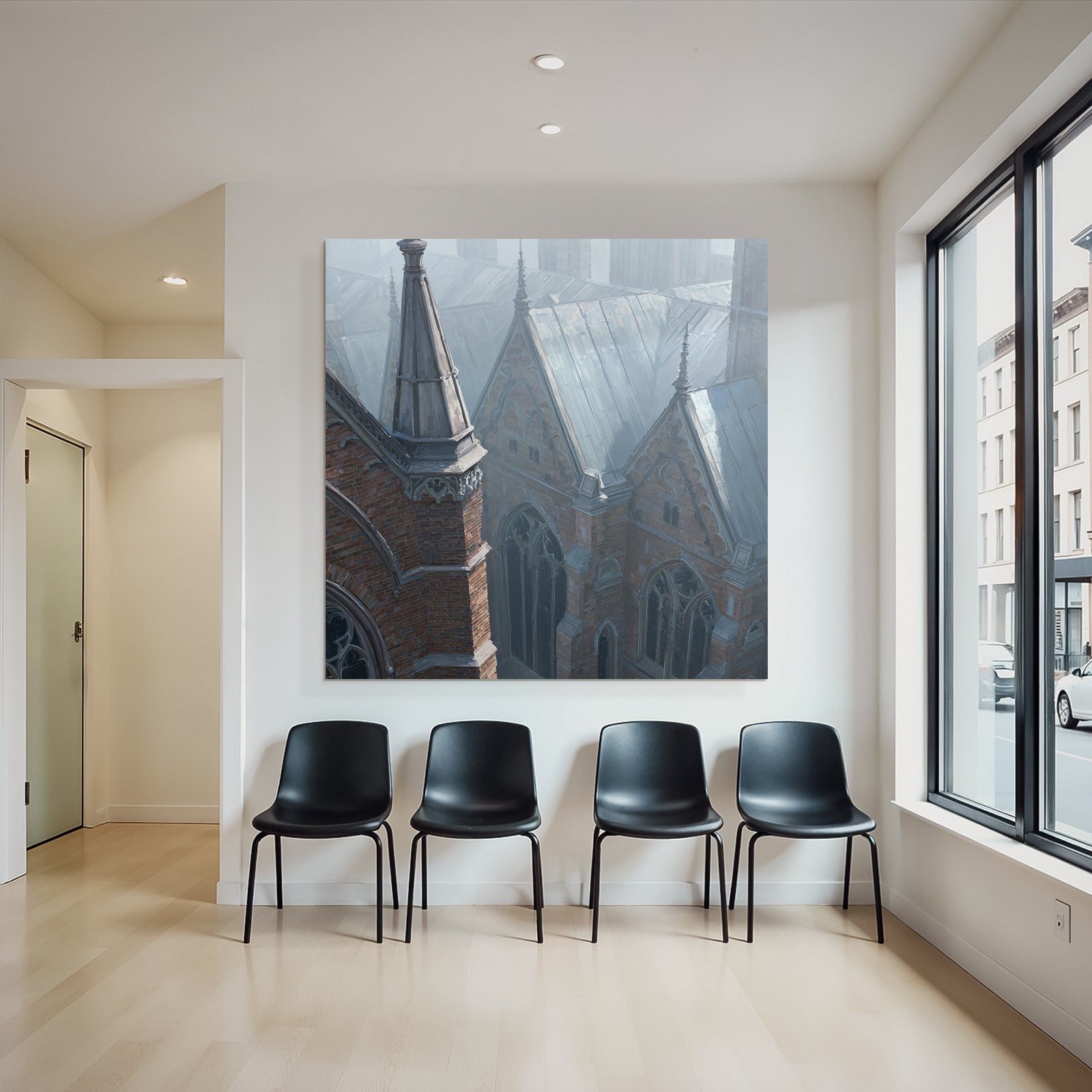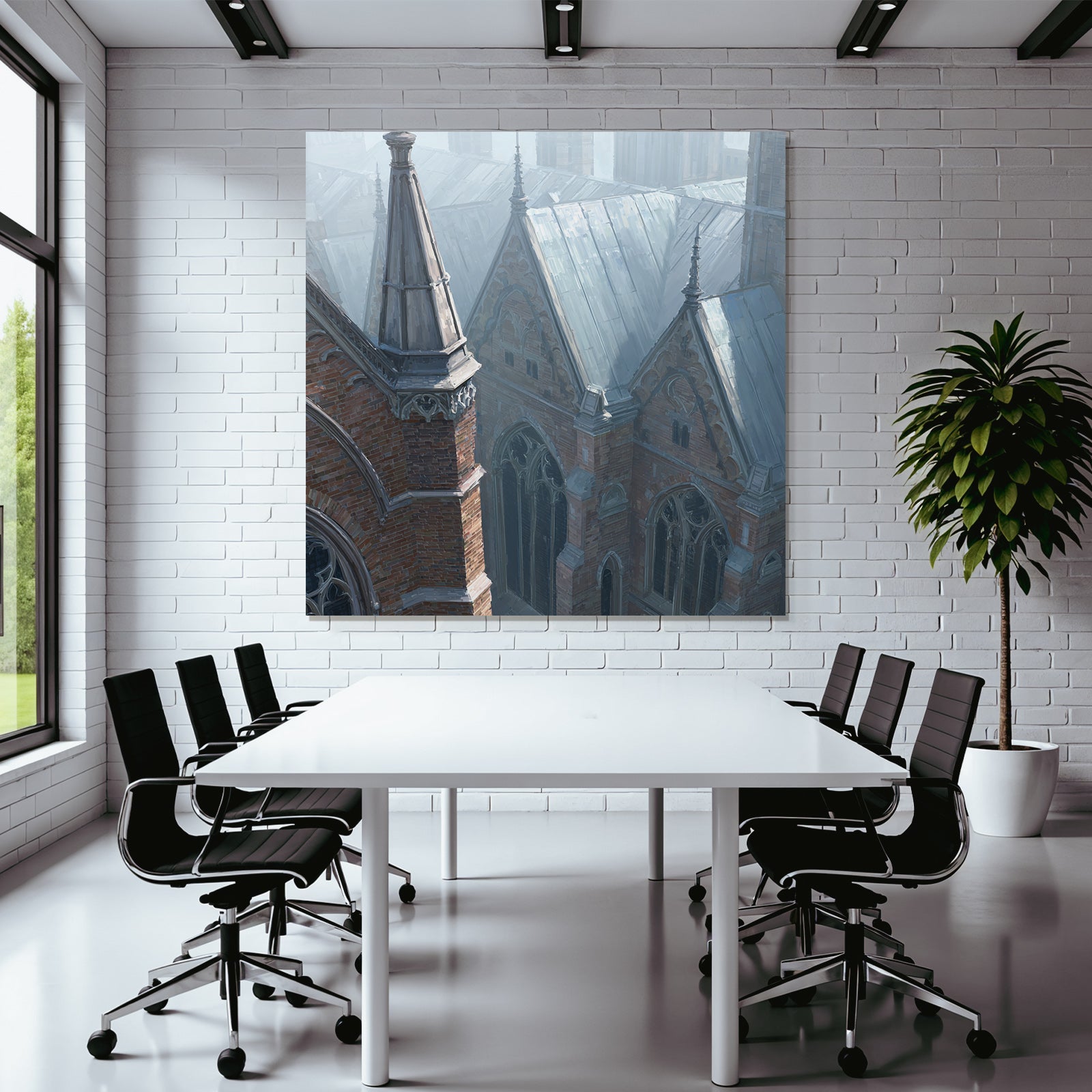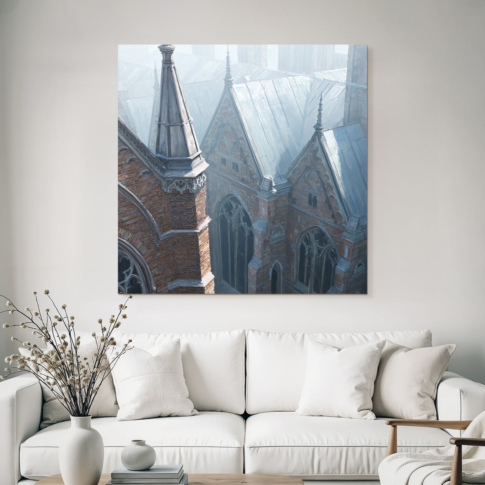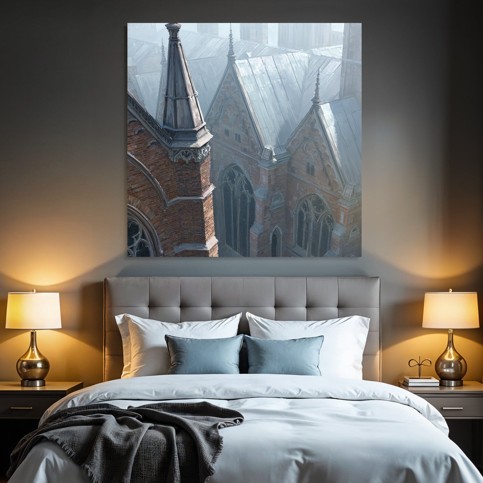 Das Motiv „Vernebelte Gotische Dachlandschaft Digitalgemälde Mit Komplexen Ziegeldetails“ ist ein Highlight der Kollektion Nahaufnahmen und wird auf Deinem FameFrame brillant in Szene gesetzt.