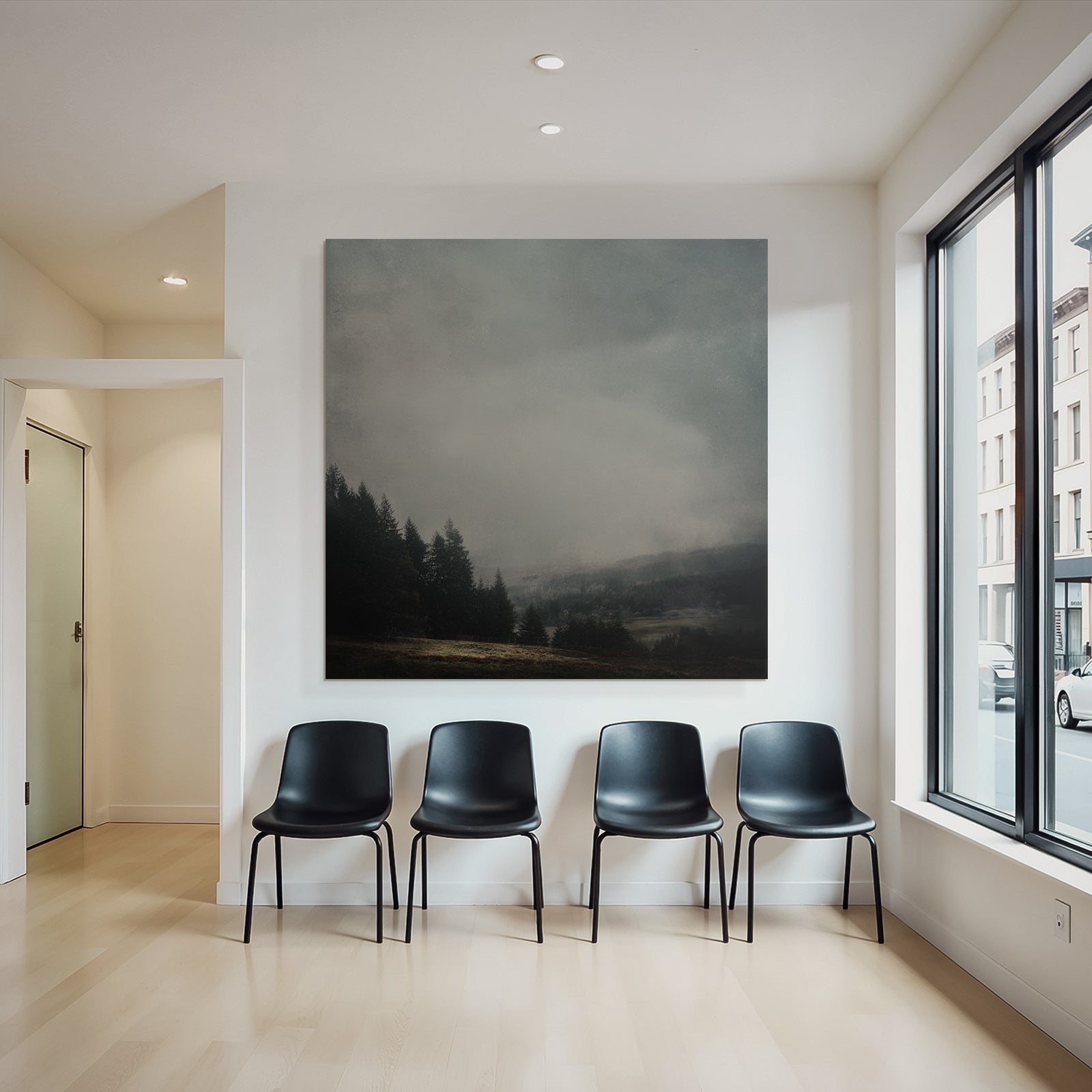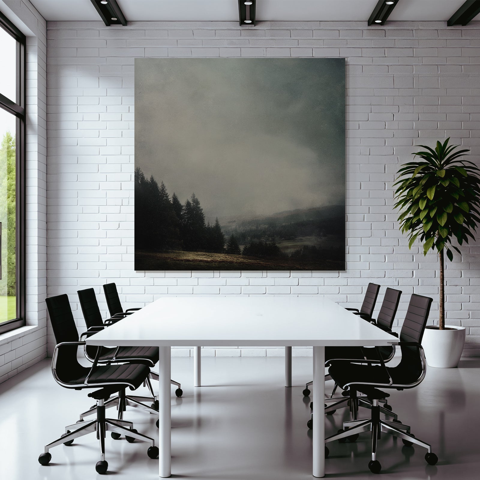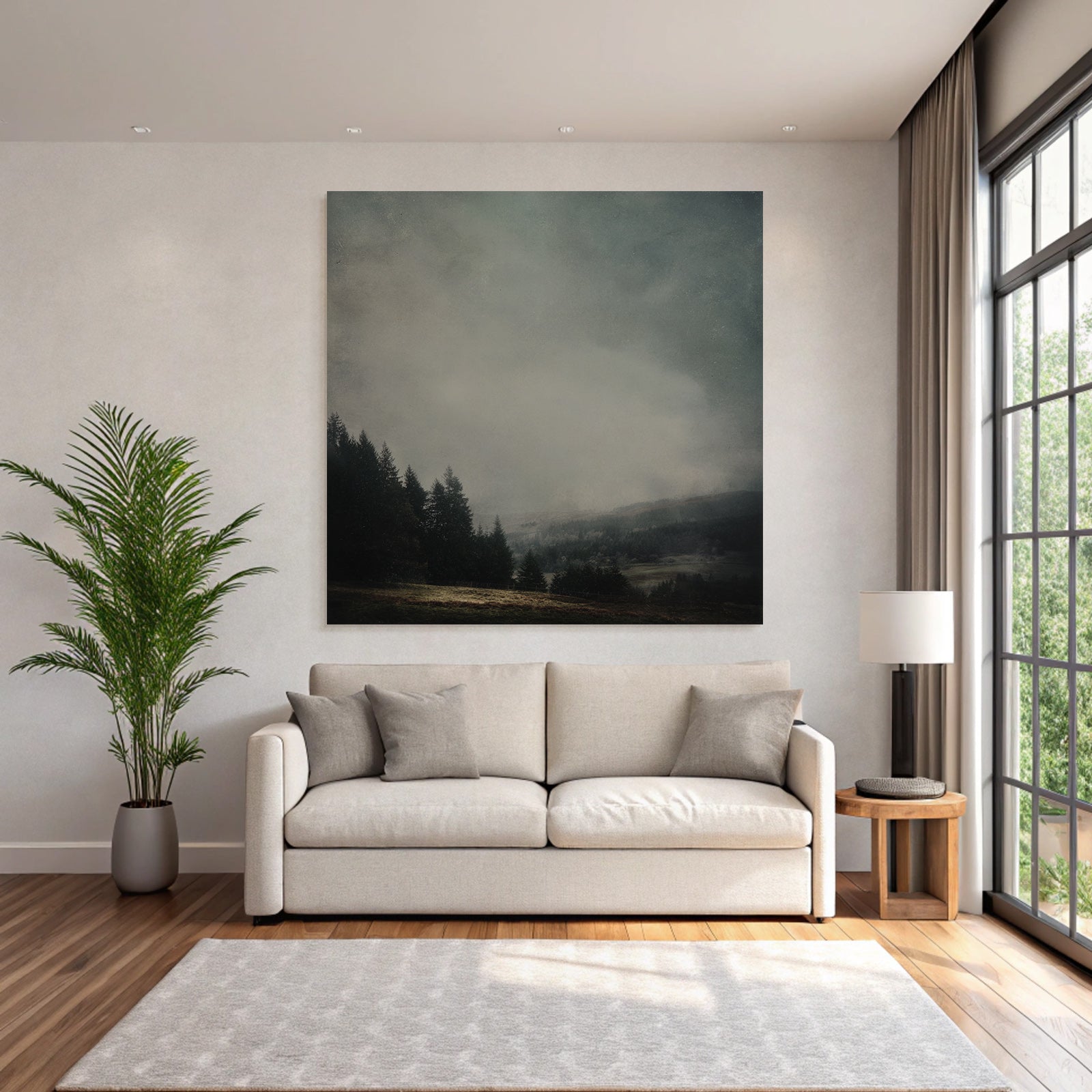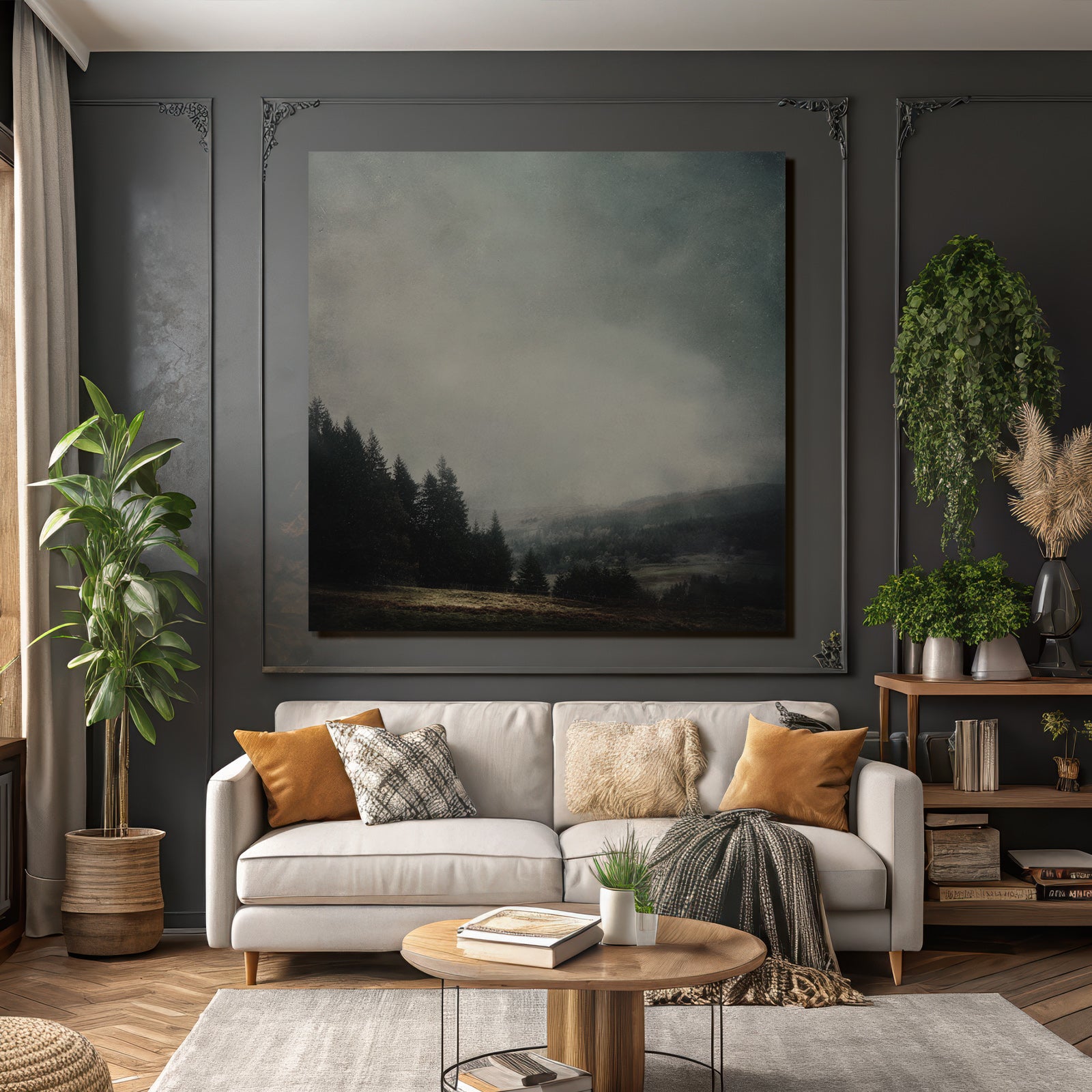 Der Stil Nebel und Wetter, neu interpretiert. Mit „Dunstiger Nadelwald Im Dichten Nebel“ holen Sie sich ein Kunstwerk nach Hause, das im eleganten FameFrame seine volle ästhetische Kraft entfaltet.