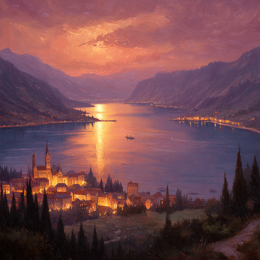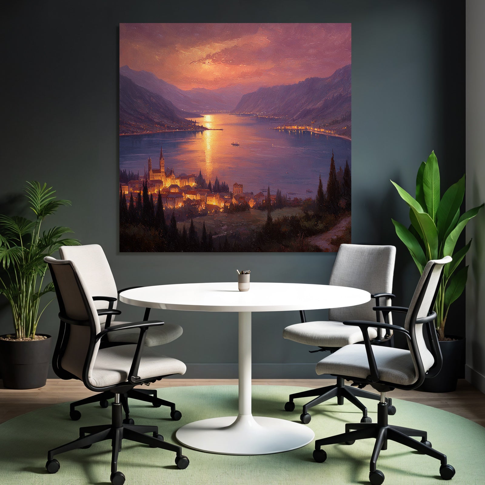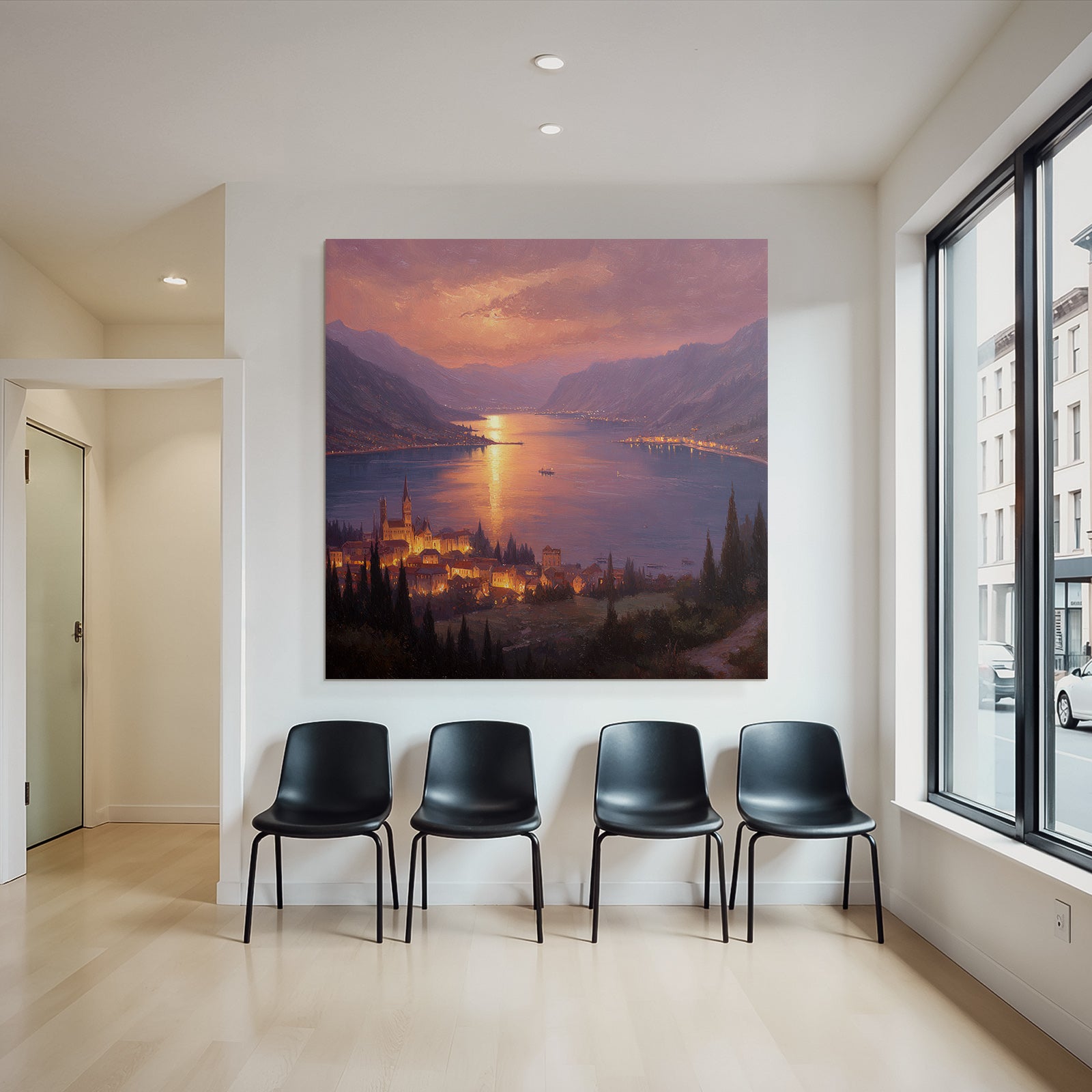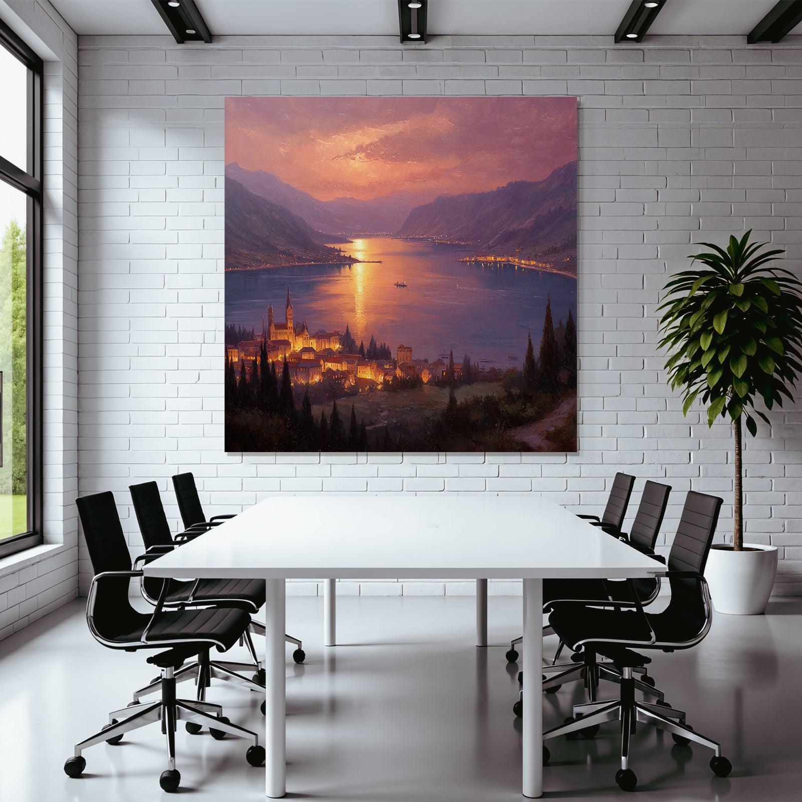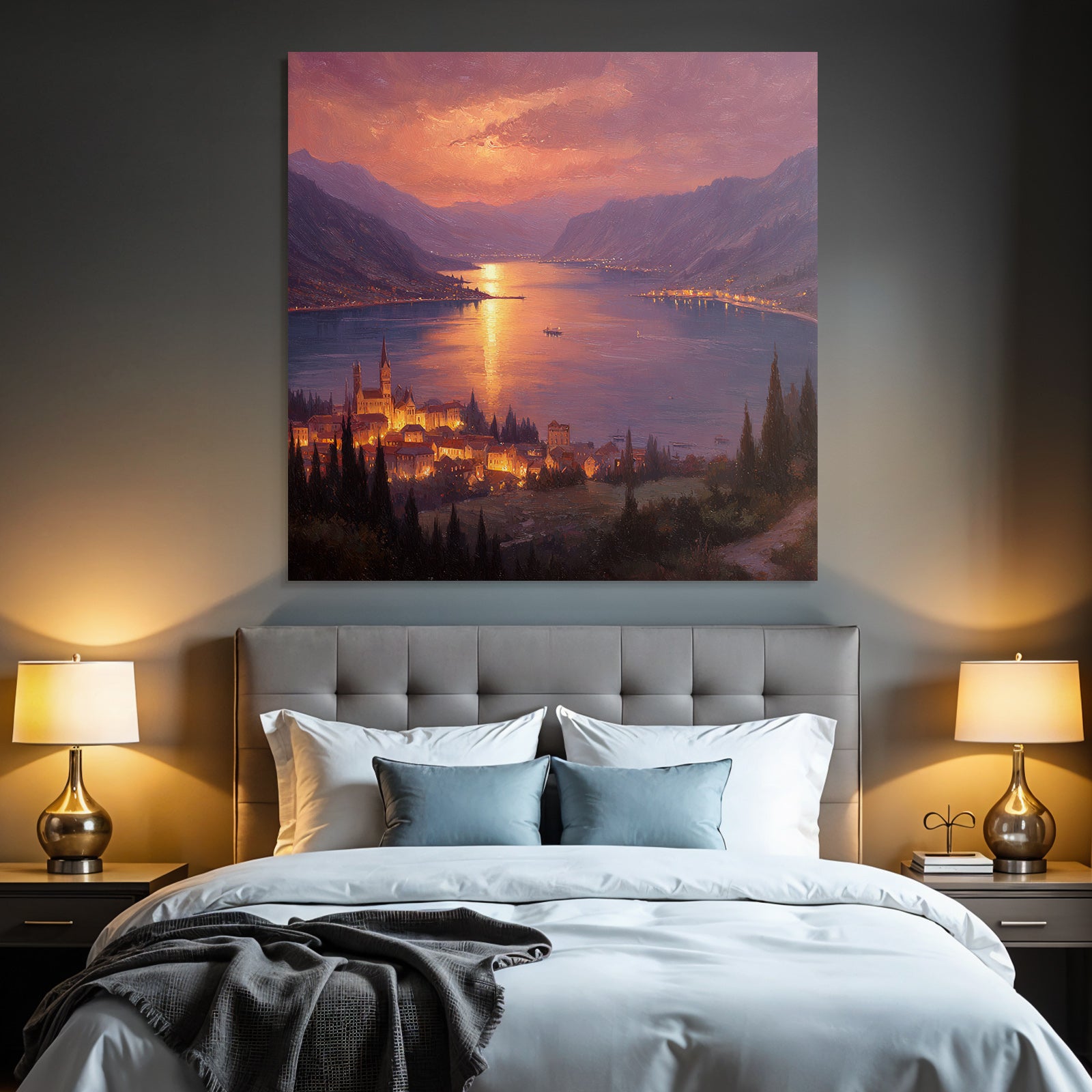Der Stil Nebel und Wetter, neu interpretiert. Mit „Idyllischer Sonnenuntergang Am Gebirgssee“ holen Sie sich ein Kunstwerk nach Hause, das im eleganten FameFrame seine volle ästhetische Kraft entfaltet.