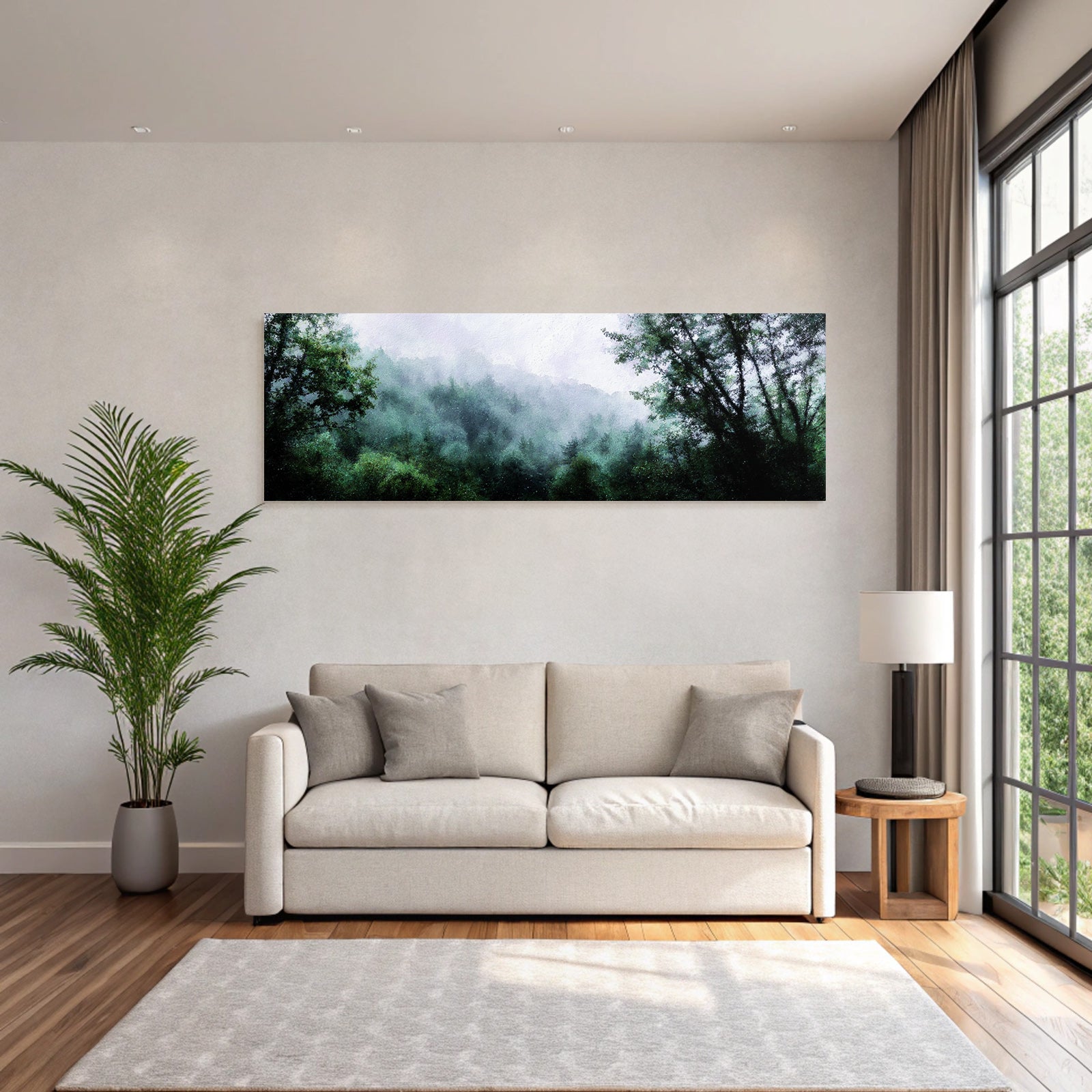 Ob für eine exklusive Boutique, ein modernes Restaurant oder Ihr Esszimmer„Nebliger Wald Im Aquarell“ im Nebel und Wetter-Design schafft im FameFrame ein unvergessliches Ambiente.