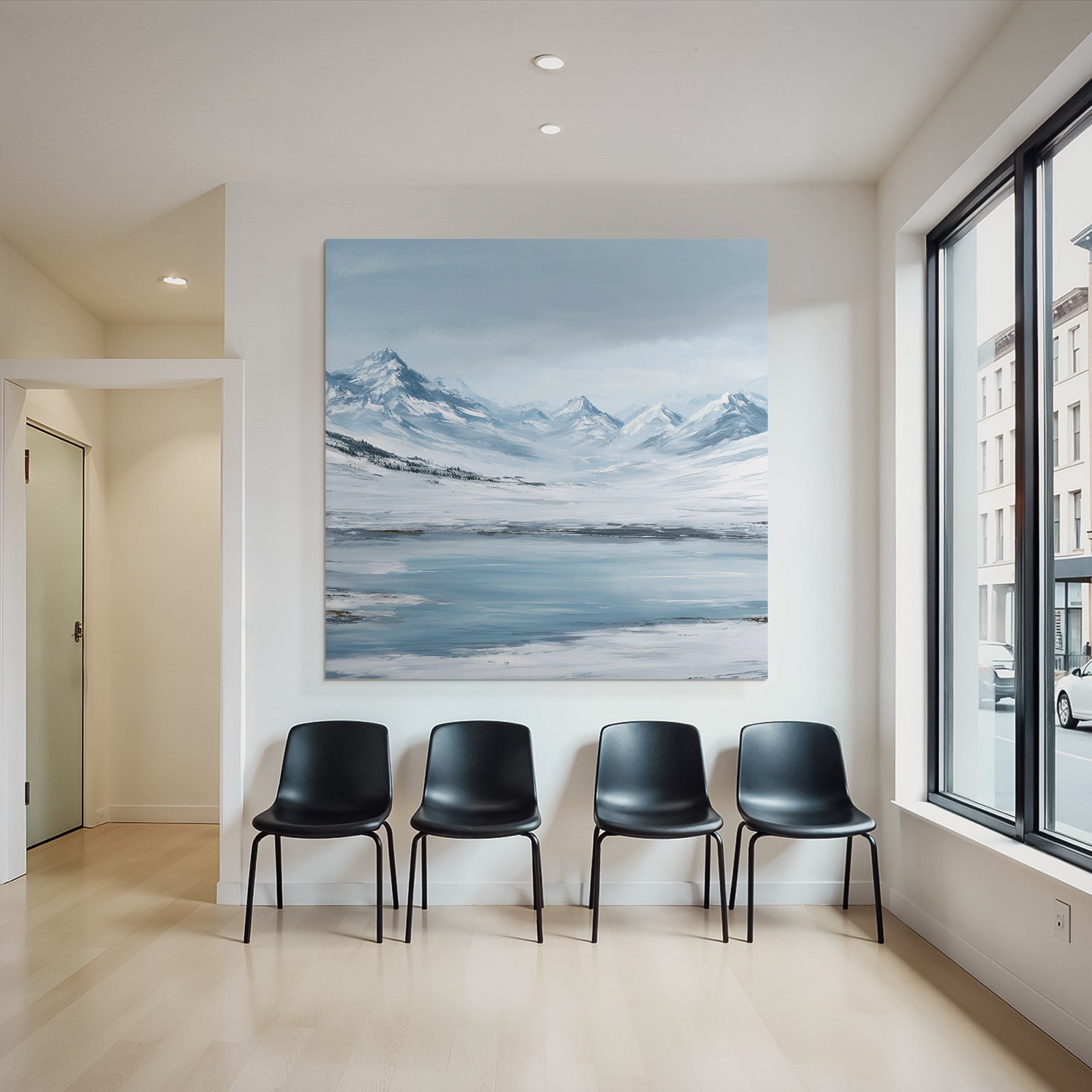 „Schneebedeckte Berge Und Ruhiger See“ – ein Motiv, das begeistert. Inspiriert vom Stil Eis und Schnee, setzt dieses Werk im edlen FameFrame einen unverwechselbaren Akzent in Ihren Räumen.