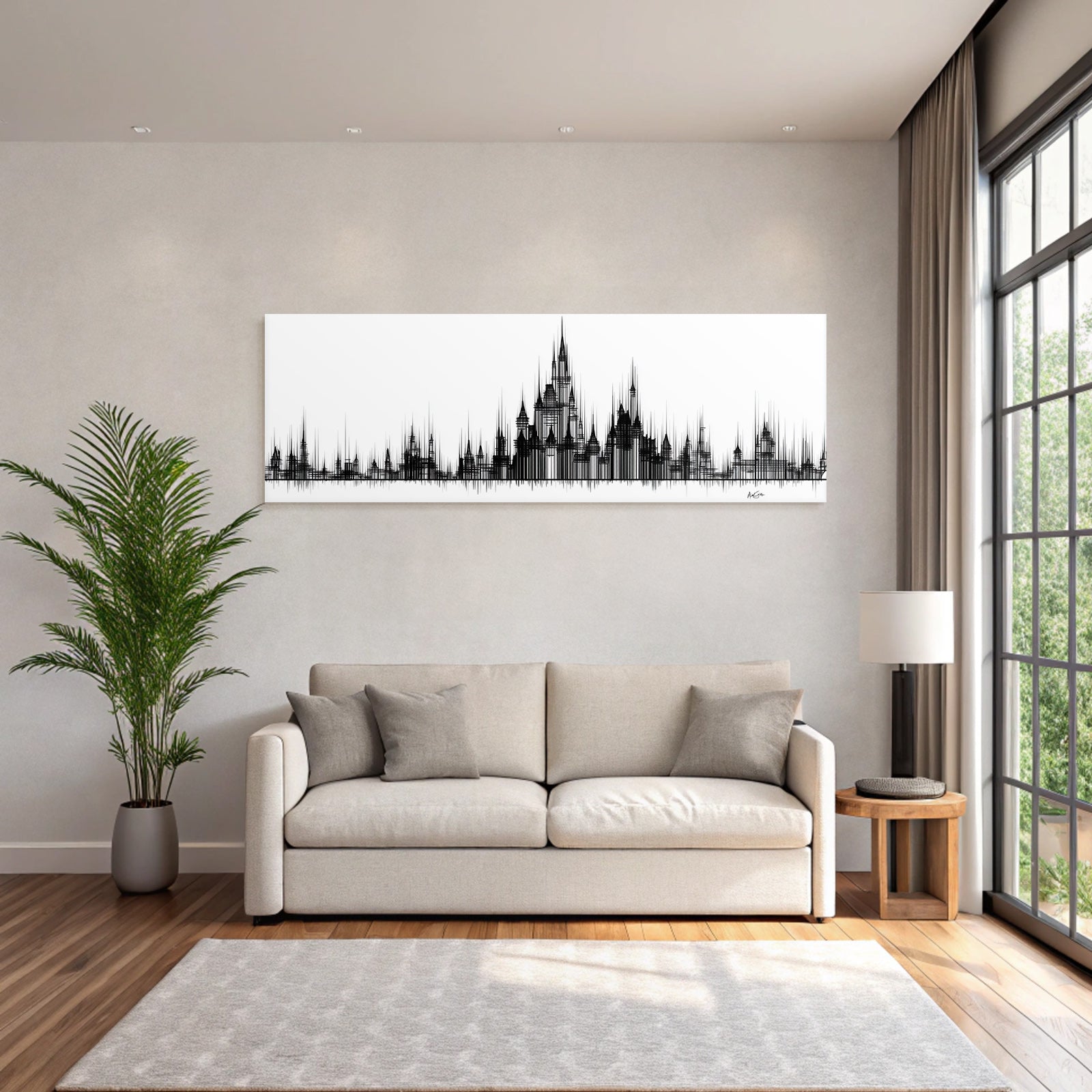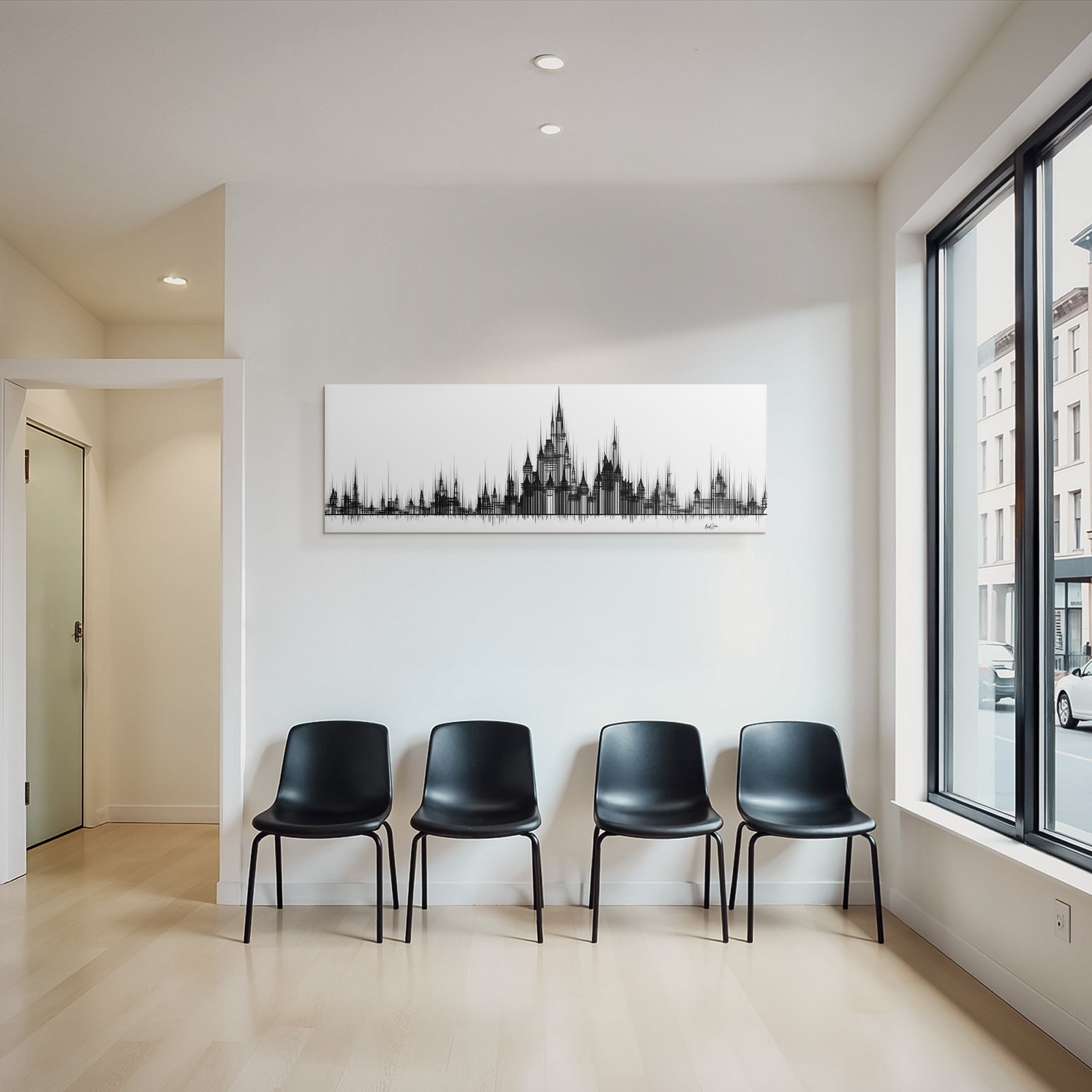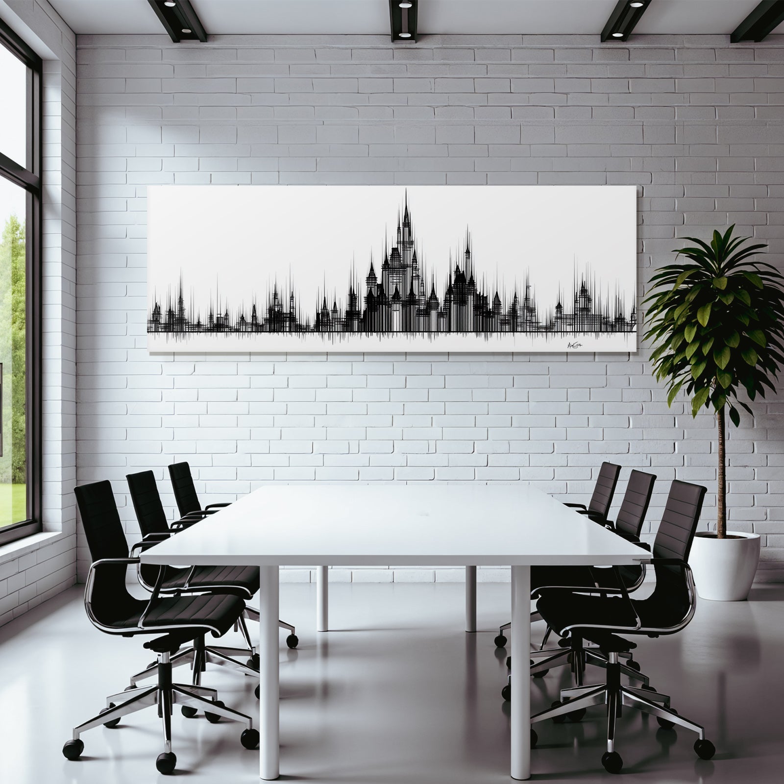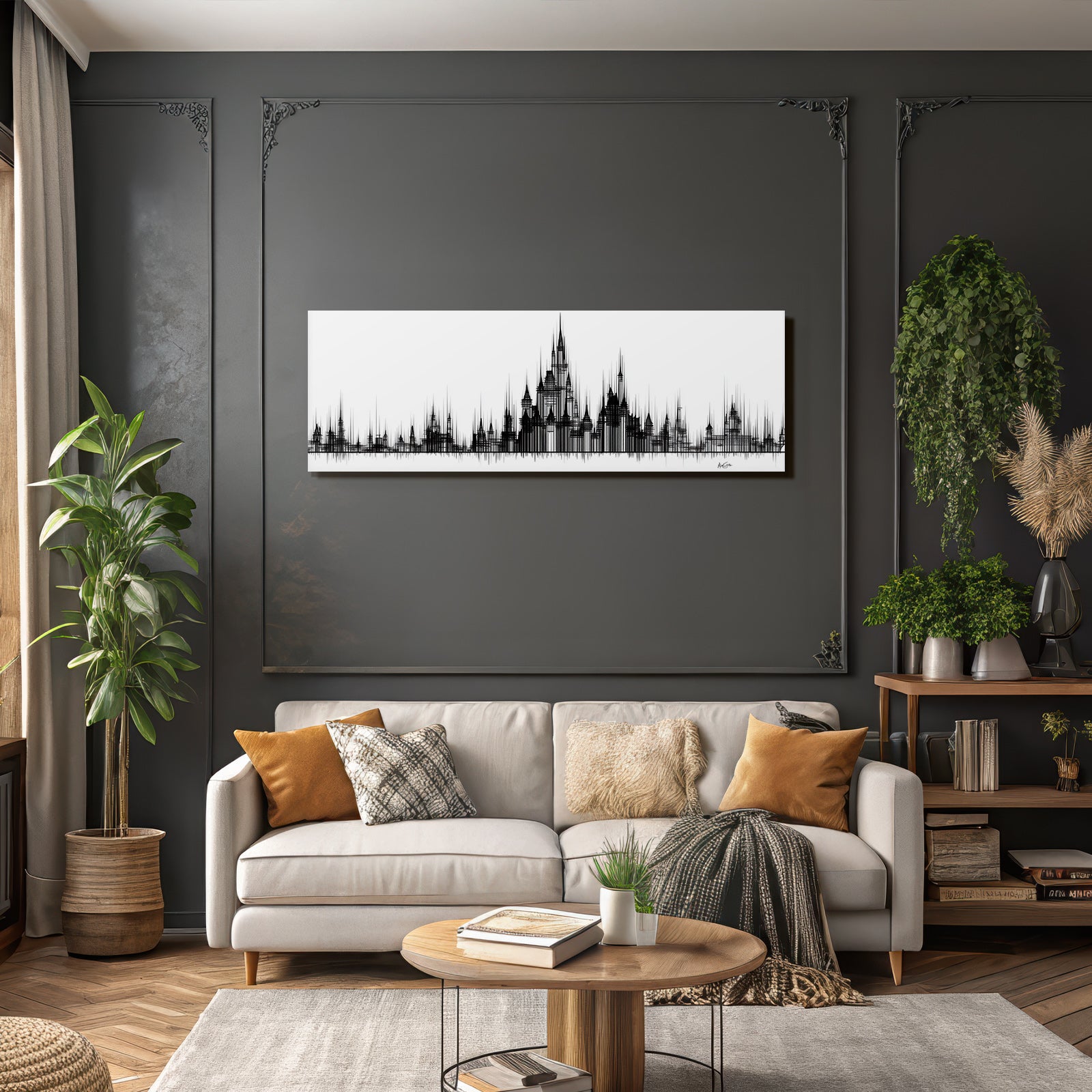 Der Stil Minimalistisch, neu interpretiert. Mit „Abstrakte Stadtansicht Modern Kastellartig“ holen Sie sich ein Kunstwerk nach Hause, das im eleganten FameFrame™ seine volle ästhetische Kraft entfaltet.