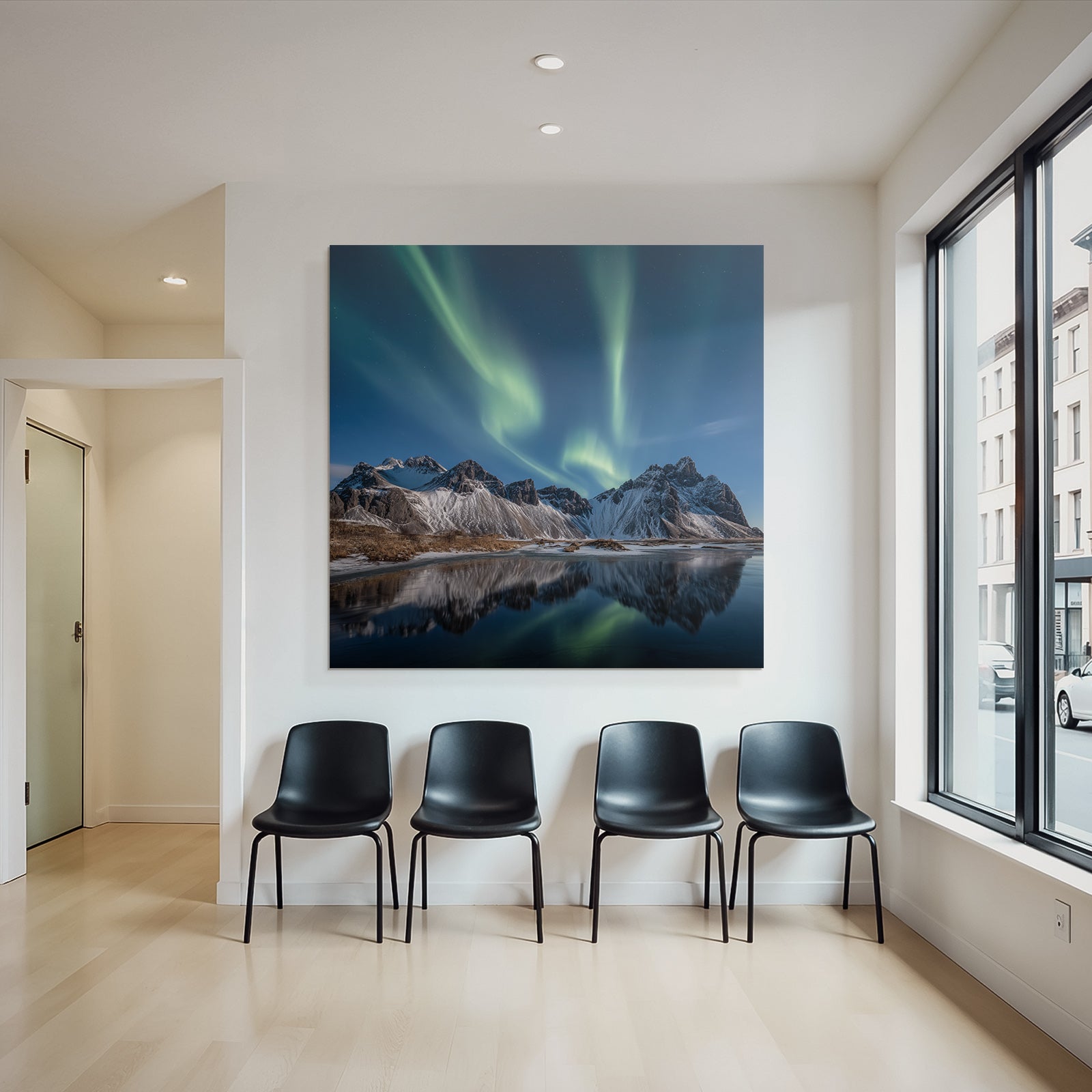 Lassen Sie sich von der Ästhetik des Fjorde und Gletscher inspirieren. „Polarlicht Schneebedeckte Berge Und Nordlichter Auf Dem Wasser“ ist mehr als nur ein Bild – es ist ein Lebensgefühl, das im FameFrame™ stilvoll gerahmt wird.