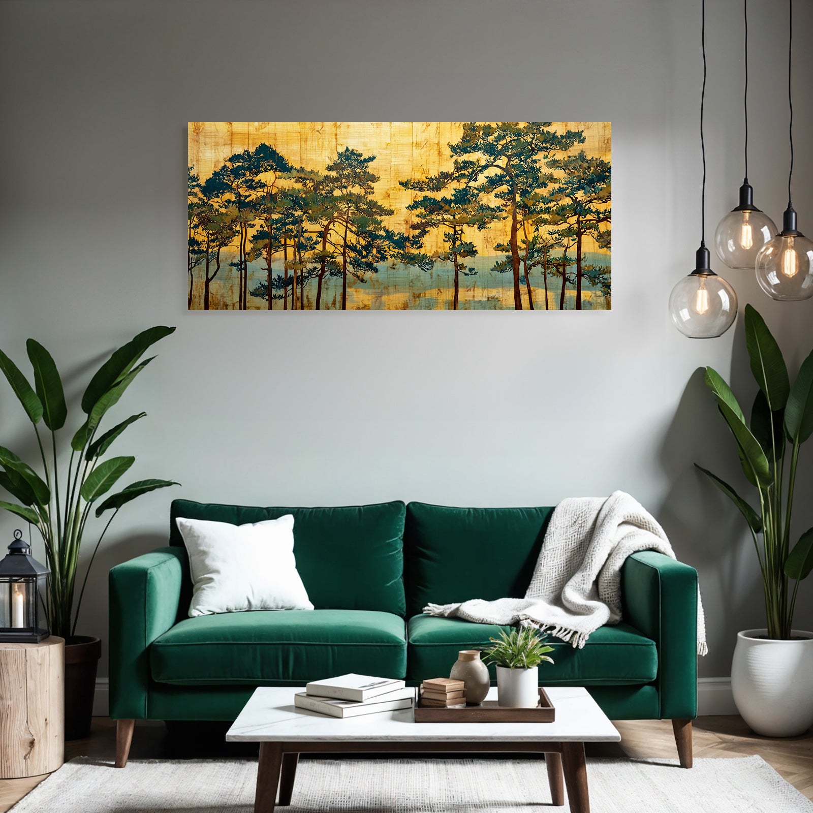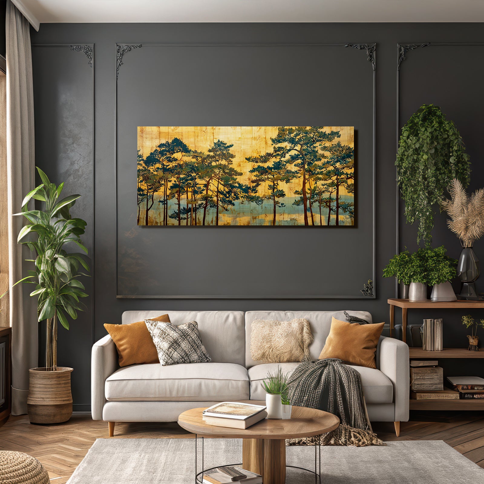Das Motiv „Yoga Meditation Baeume In Warmem Natur Setting Traditionelle Kunst“ bringt Yoga und Meditation-Inspiration in Dein Zuhause – brillant gedruckt und elegant im FameFrame™ aufgespannt.