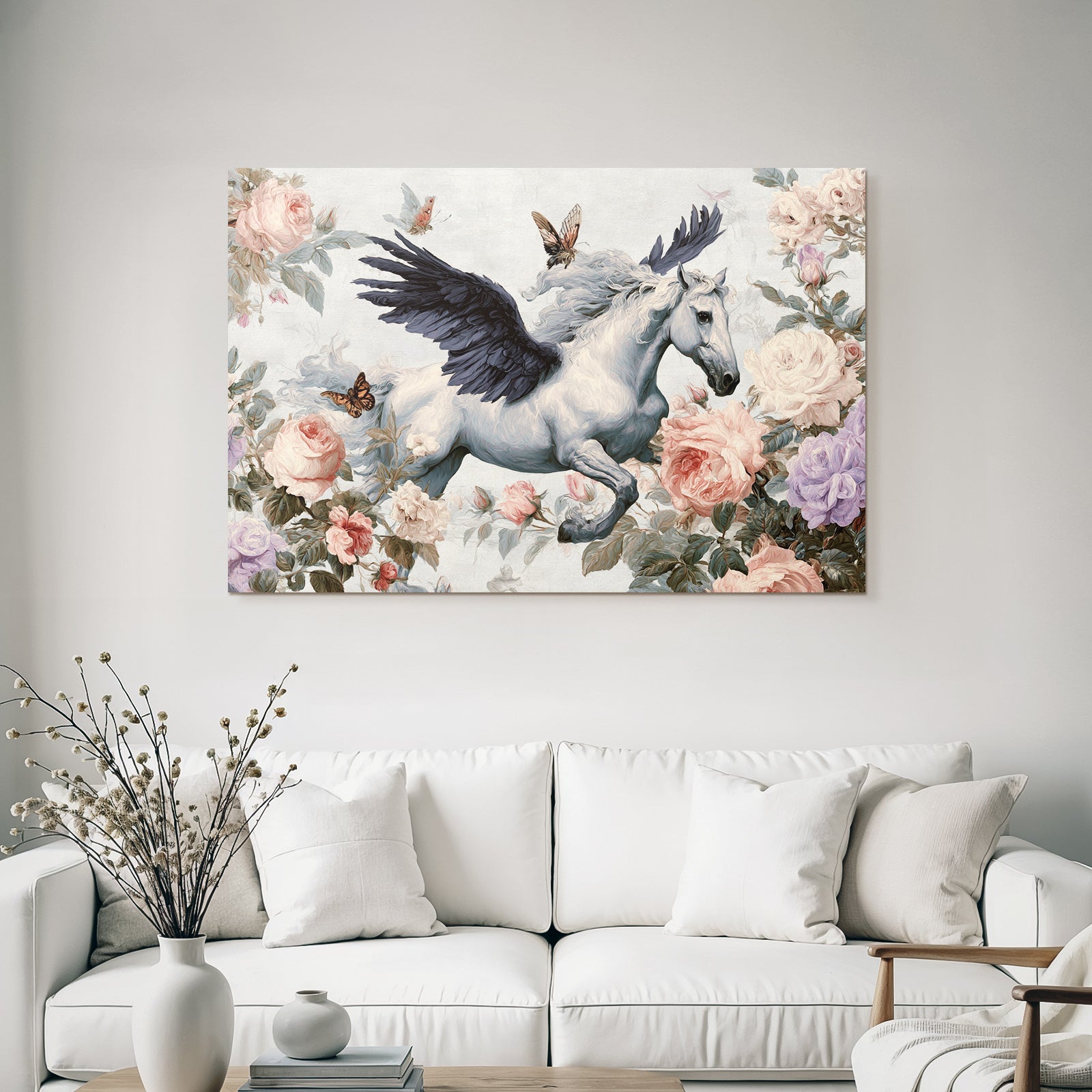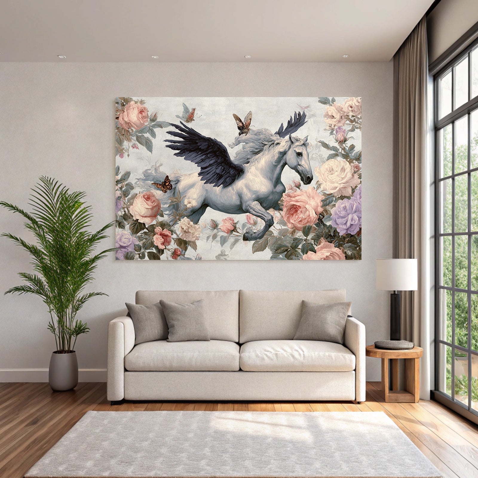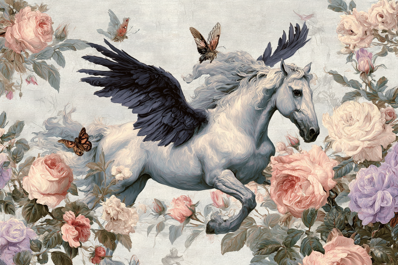 Setz ein Statement: „„Gefluegeltespferdblumenundschmetterlinge““ im Stil Romantisch und Landhaus wird im FameFrame zum echten Kunstobjekt an Deiner Wand.