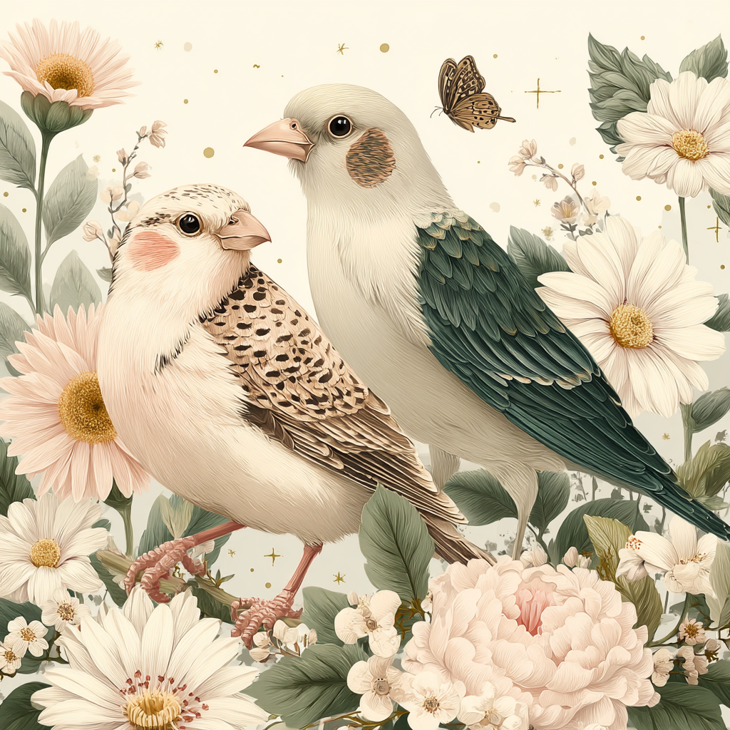 Mit Romantisch und Landhaus-Elementen und klarer Wirkung verleiht „„Voegel Und Blumen““ Deinem Raum Persönlichkeit – eingerahmt im exklusiven FameFrame.