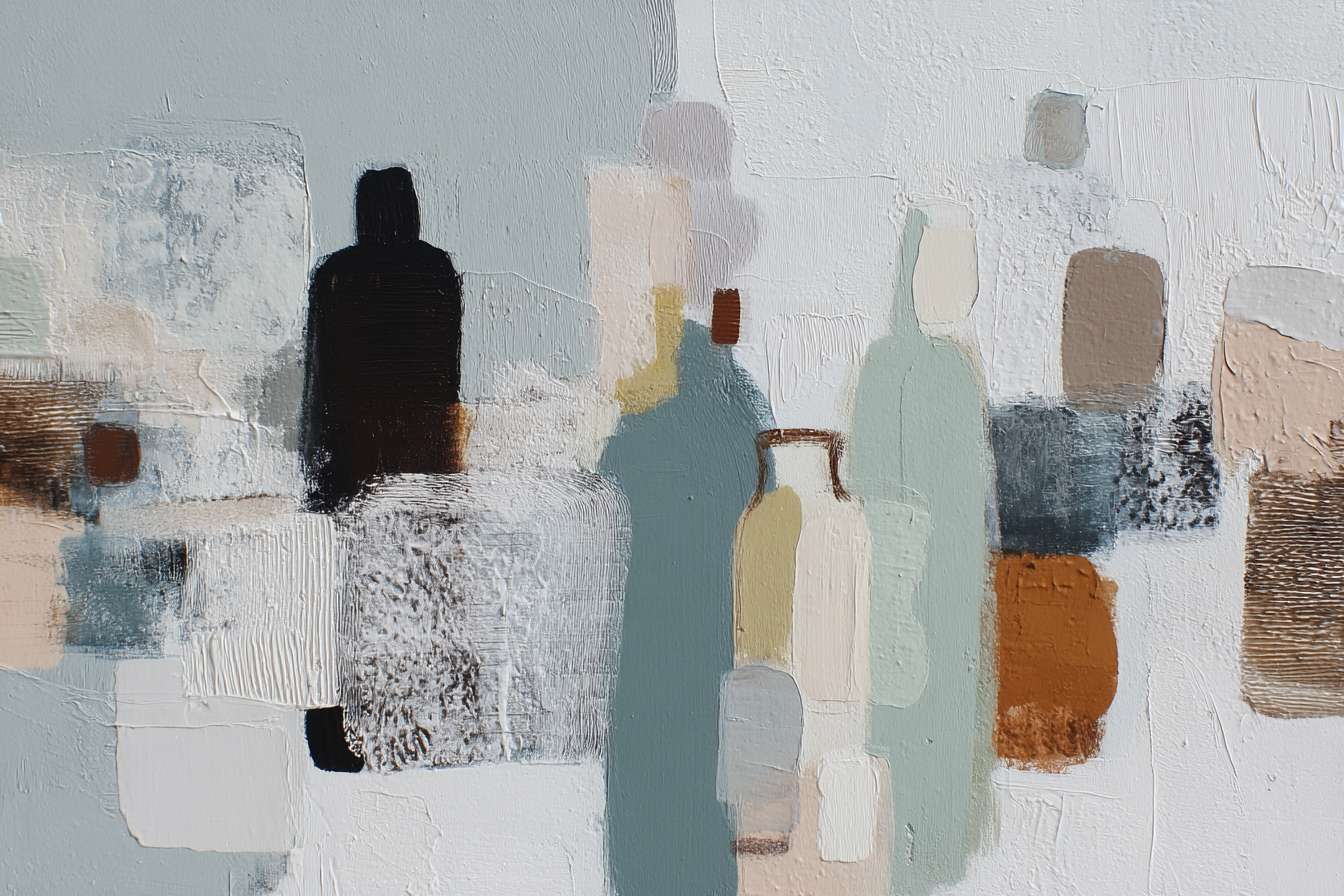 Ein Highlight für Wohnzimmer, Studio oder Empfangsbereich: „„Abstrakte Malerei““ bringt den Stil Skandinavisch auf Stoff – gespannt im edlen FameFrame.