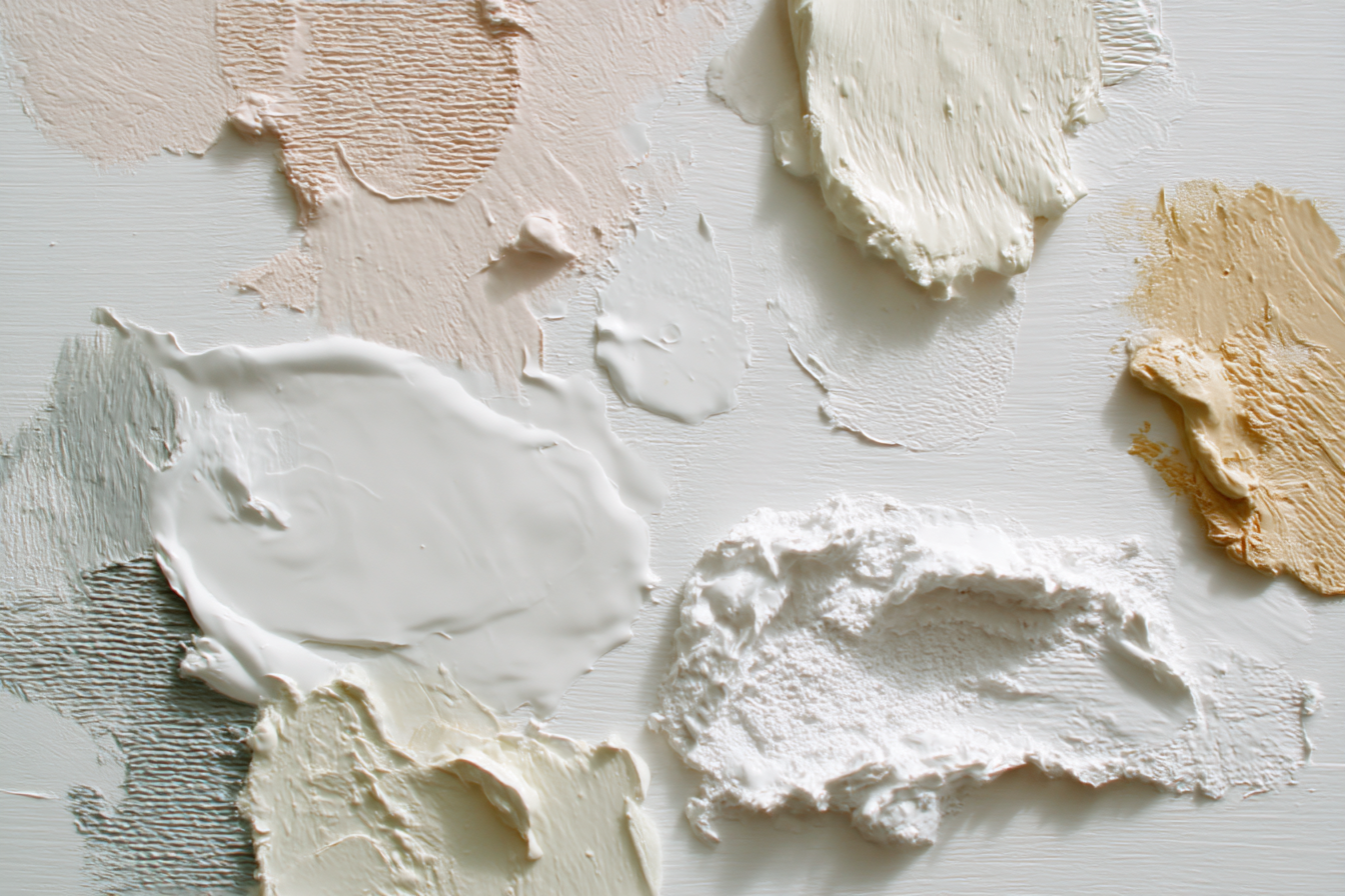 Ein Highlight für Wohnzimmer, Studio oder Empfangsbereich: „„Skandenavisch Farbschmiere Beige Heiten““ bringt den Stil Skandinavisch auf Stoff – gespannt im edlen FameFrame.