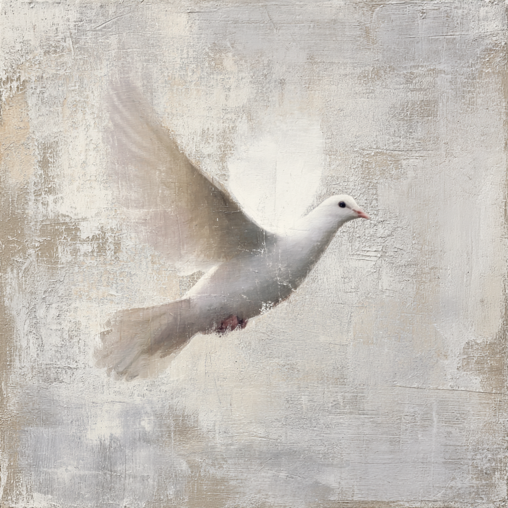 Das Motiv „„Skandenavisch Weisse Taube Im Flug Hintergrund““ bringt Skandinavisch-Inspiration in Dein Zuhause – brillant gedruckt und elegant im FameFrame aufgespannt.