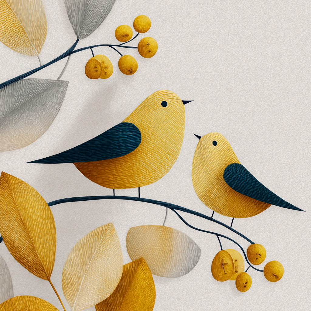 „„Vogel Baum Blatt Beere““ bringt den Stil Skandinavisch an Deine Wand – perfekt für Schlafzimmer, Homeoffice oder Besprechungsräume, edel gerahmt im FameFrame.