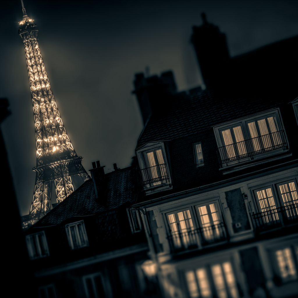 Nachtszene Eiffelturm Beleuchtete Fenster