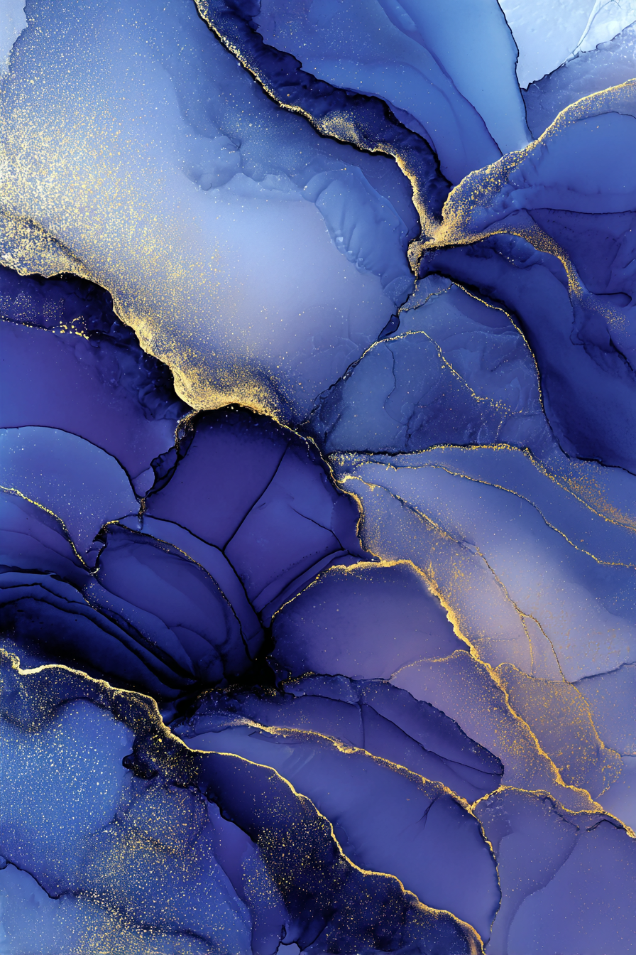 Setze stilvolle Akzente mit Kunst im Look von Abstrakt. Das Werk „Flüssigkunst Blau Lila Goldakzente“ entfaltet im edlen FameFrame seine volle Wirkung.