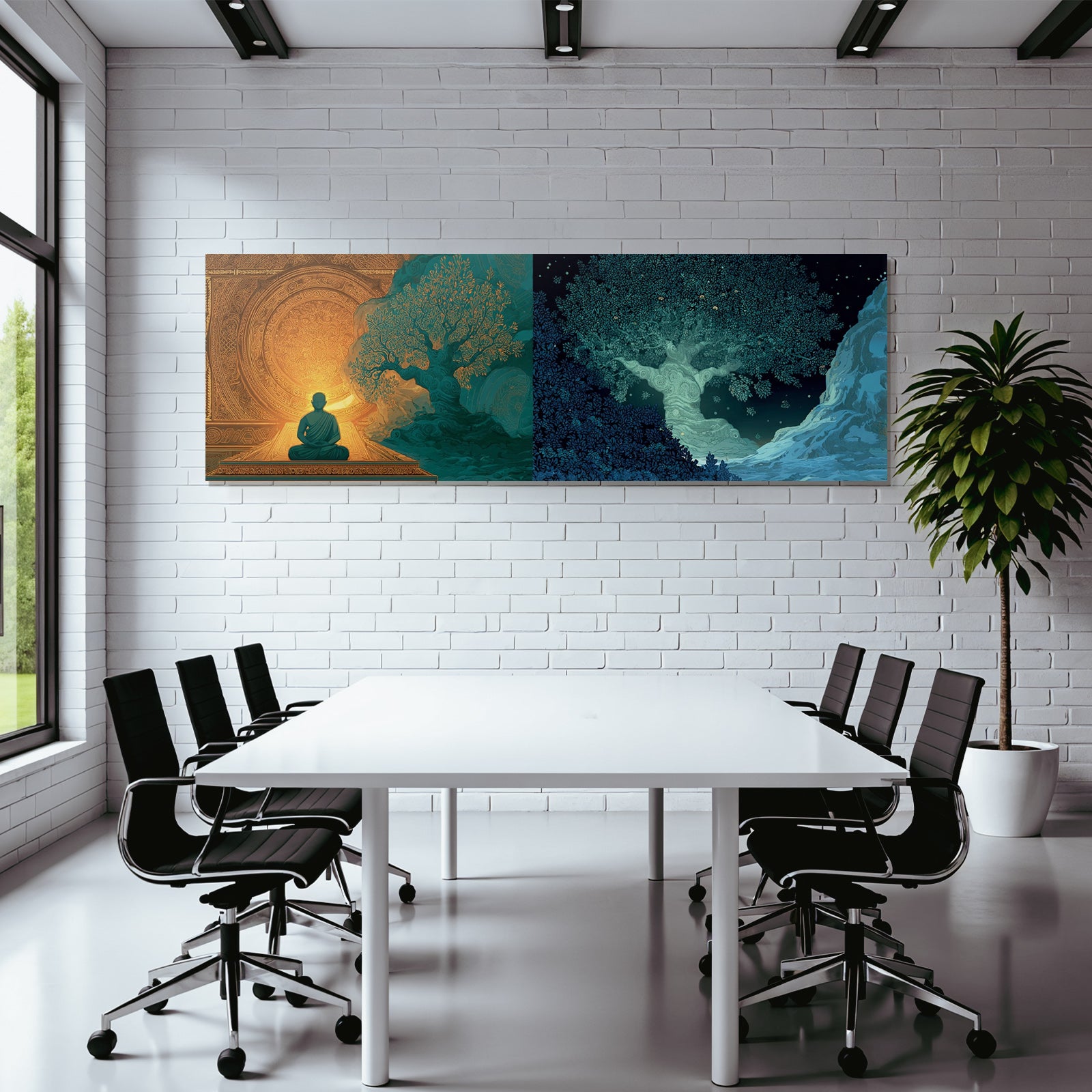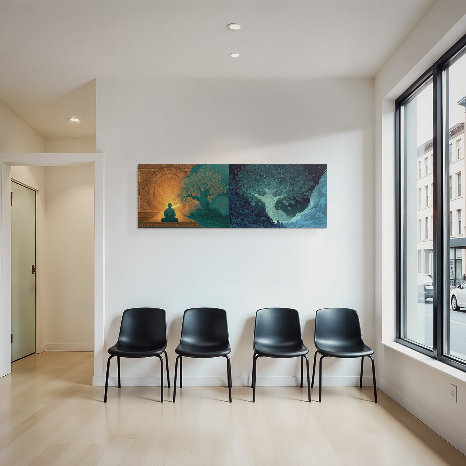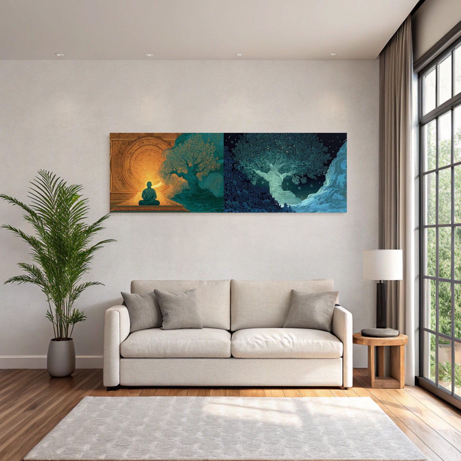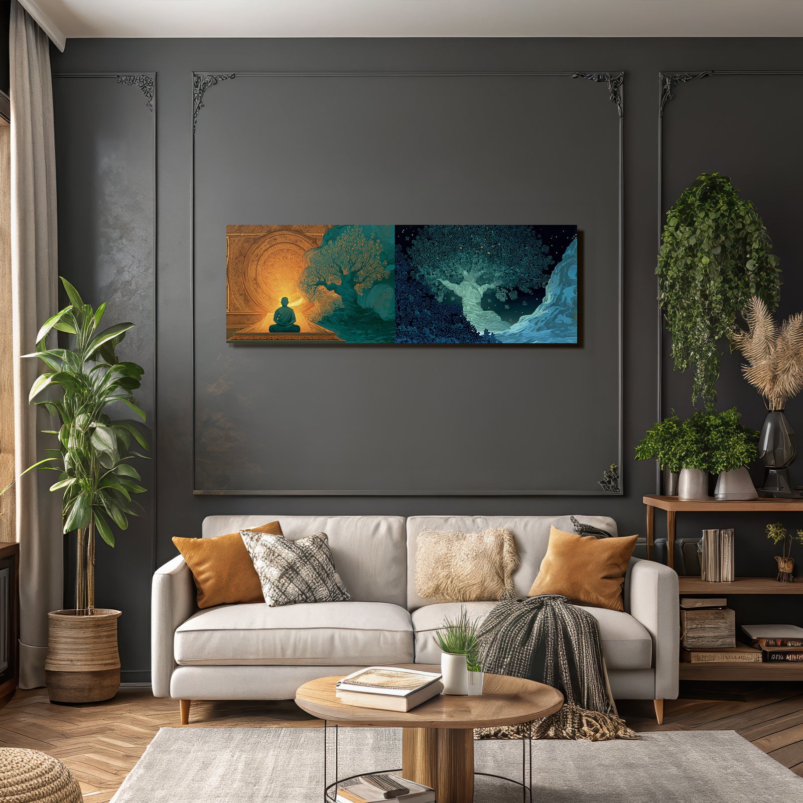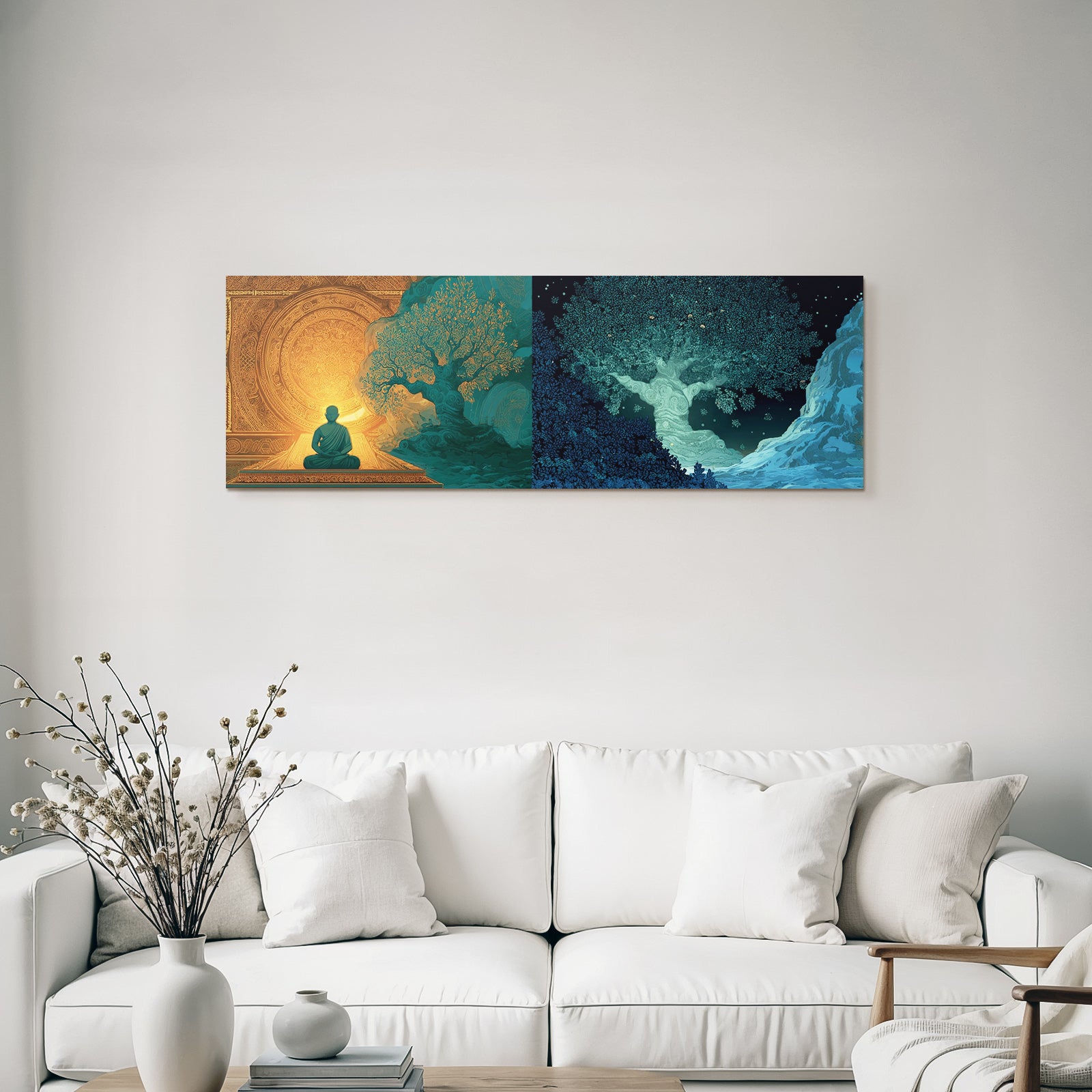 Verschönere Dein Zuhause mit diesem Werk im Stil Psychedelische Kunst. Der Titel „Meditation Im Licht Und Nacht“ kommt im hochwertigen FameFrame™ perfekt zur Geltung.