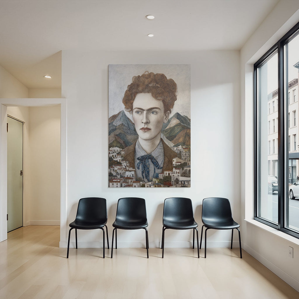 Die Kombination aus dem Motiv „Künstlerische Darstellung Einer Person Im Vordergrund Von Bergen Und Einem Dorf“ und dem Stil Tattoo Aesthetik schafft eine Brücke zwischen Klassik und Moderne. Der FameFrame vollendet dieses Zusammenspiel perfekt.