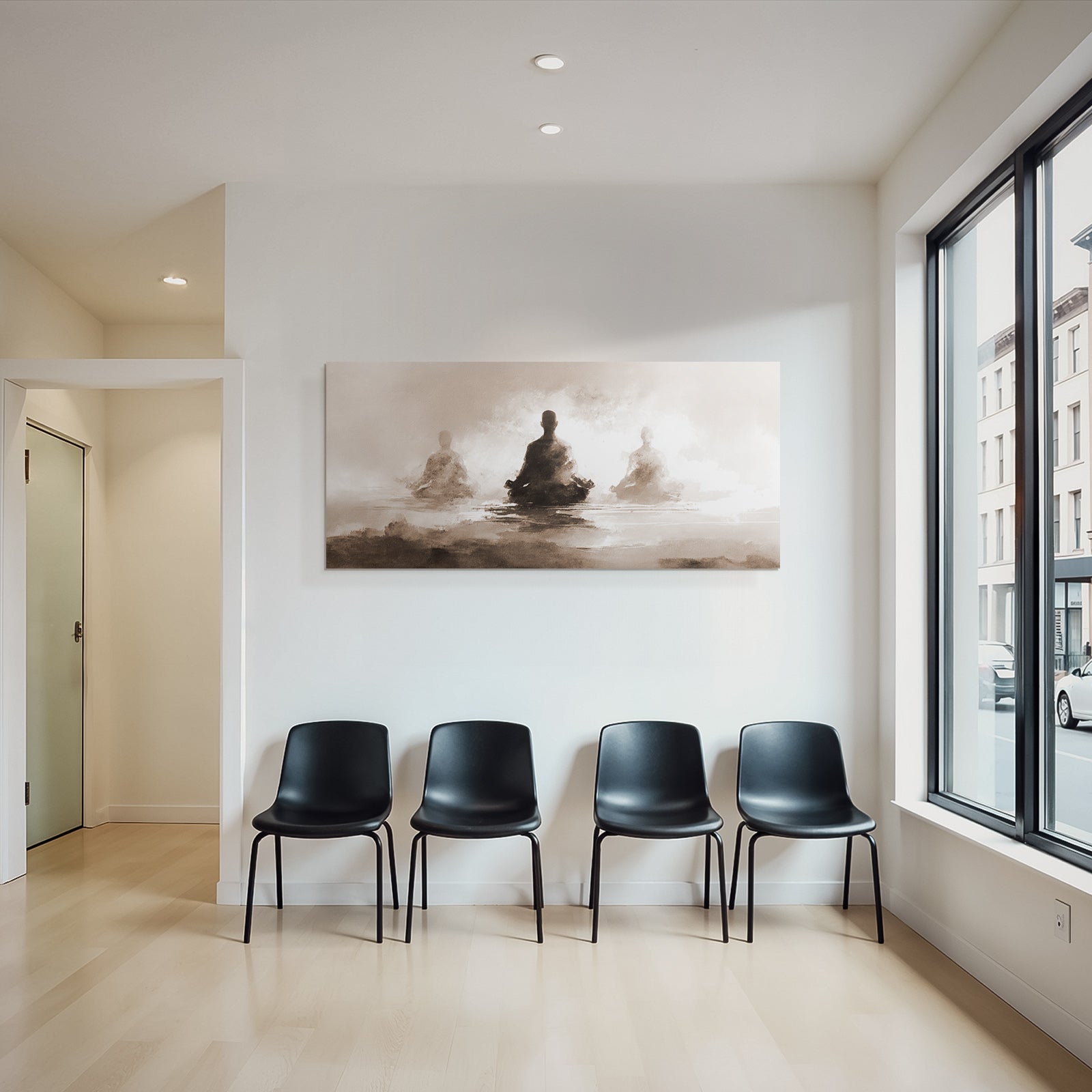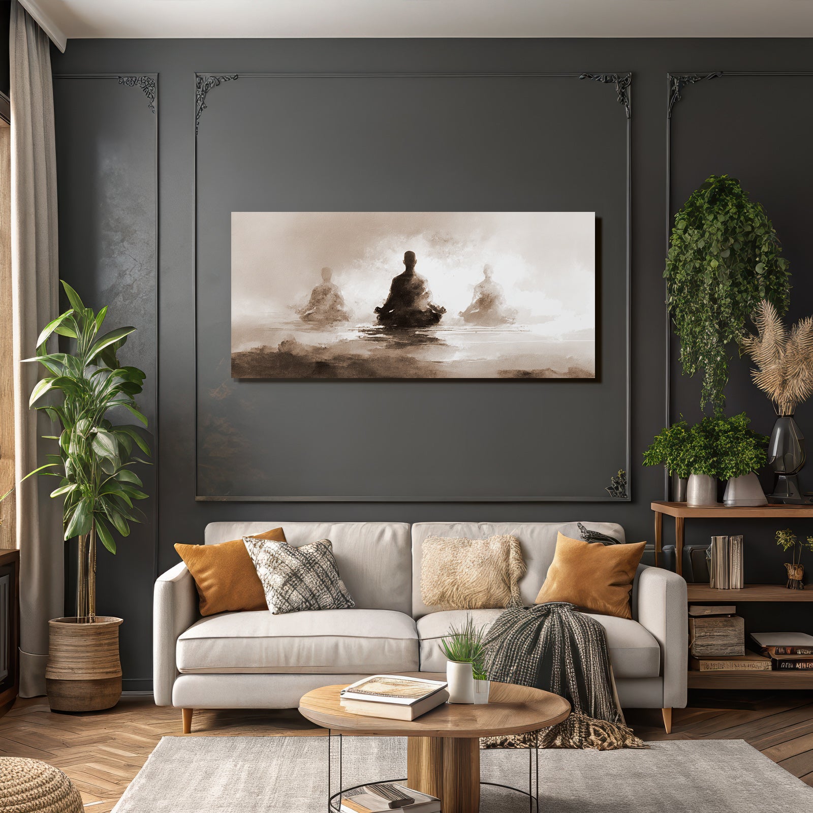 Verschönere Dein Zuhause mit diesem Werk im Stil Yoga und Meditation. Der Titel „Yoga Meditation Meditierende Figuren Meditation Selbstreflexion Innere Ruhen“ kommt im hochwertigen FameFrame™ perfekt zur Geltung.