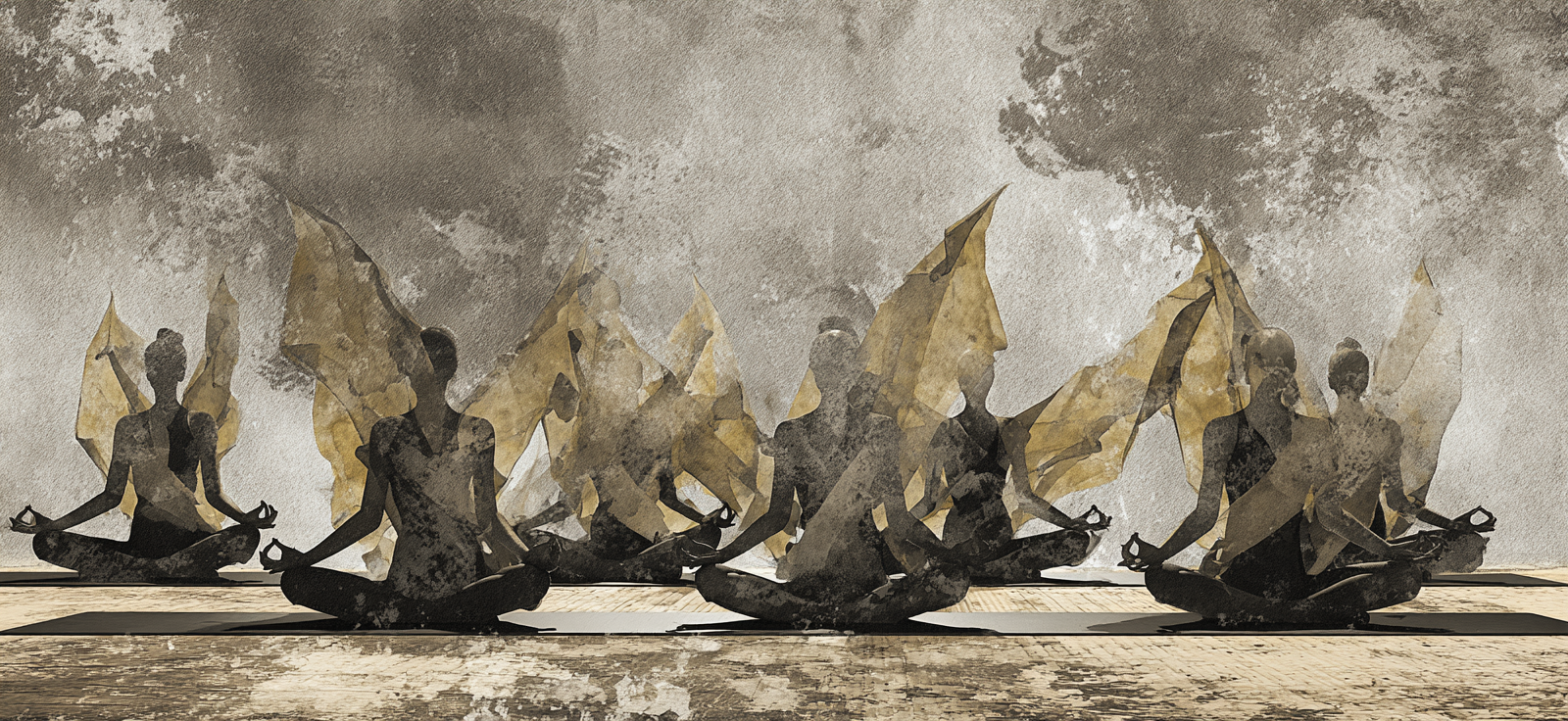 Yoga Meditation Meditierende Figuren Mit Fantastischen Flügeln Auf Der Suche Nach Transformation