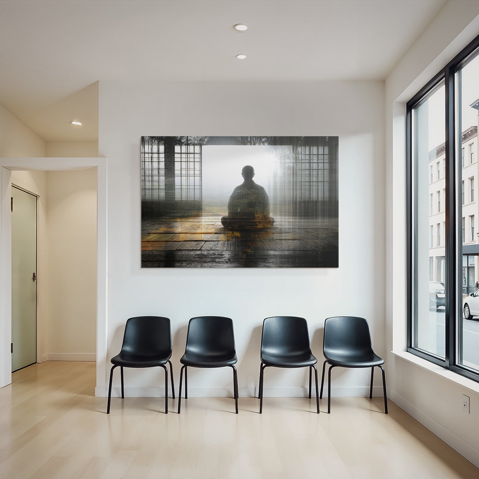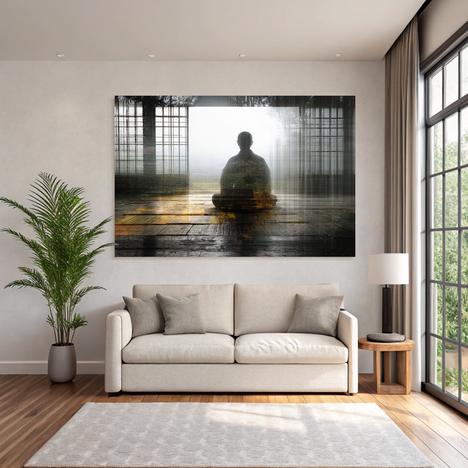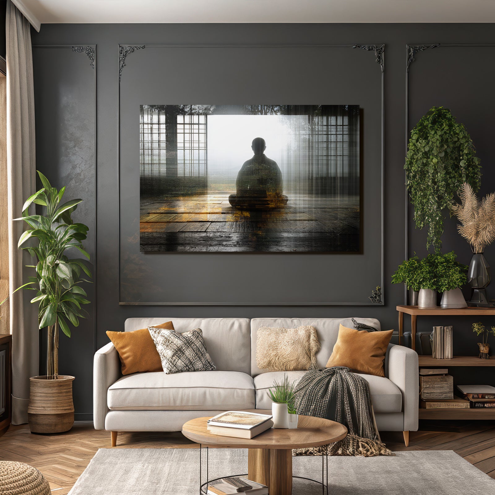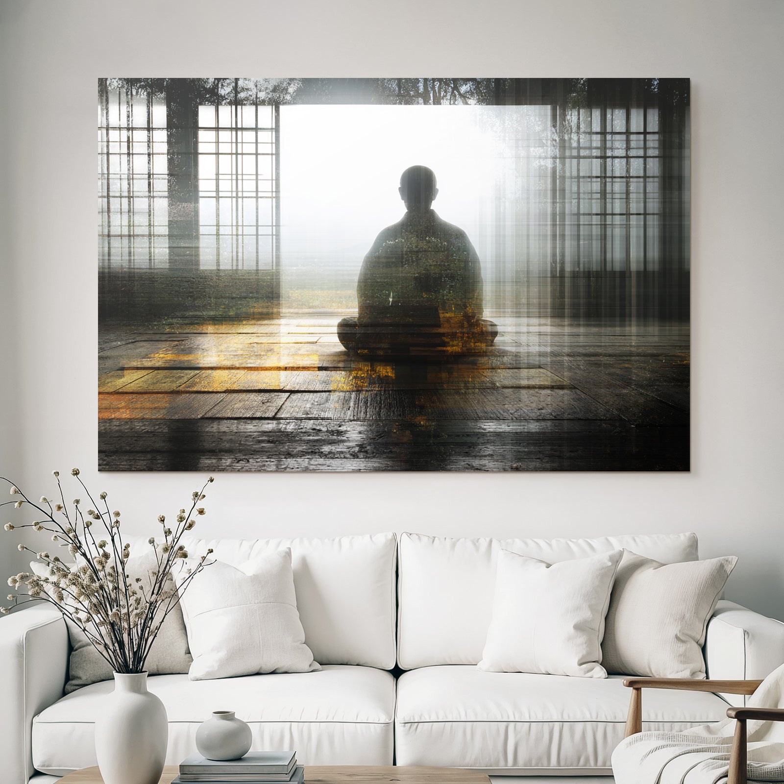 Setz ein Statement: „Yoga Meditation Meditierende Person In Der Natur Mindfulness Spiritualitat“ im Stil Yoga und Meditation wird im FameFrame™ zum echten Kunstobjekt an Deiner Wand.
