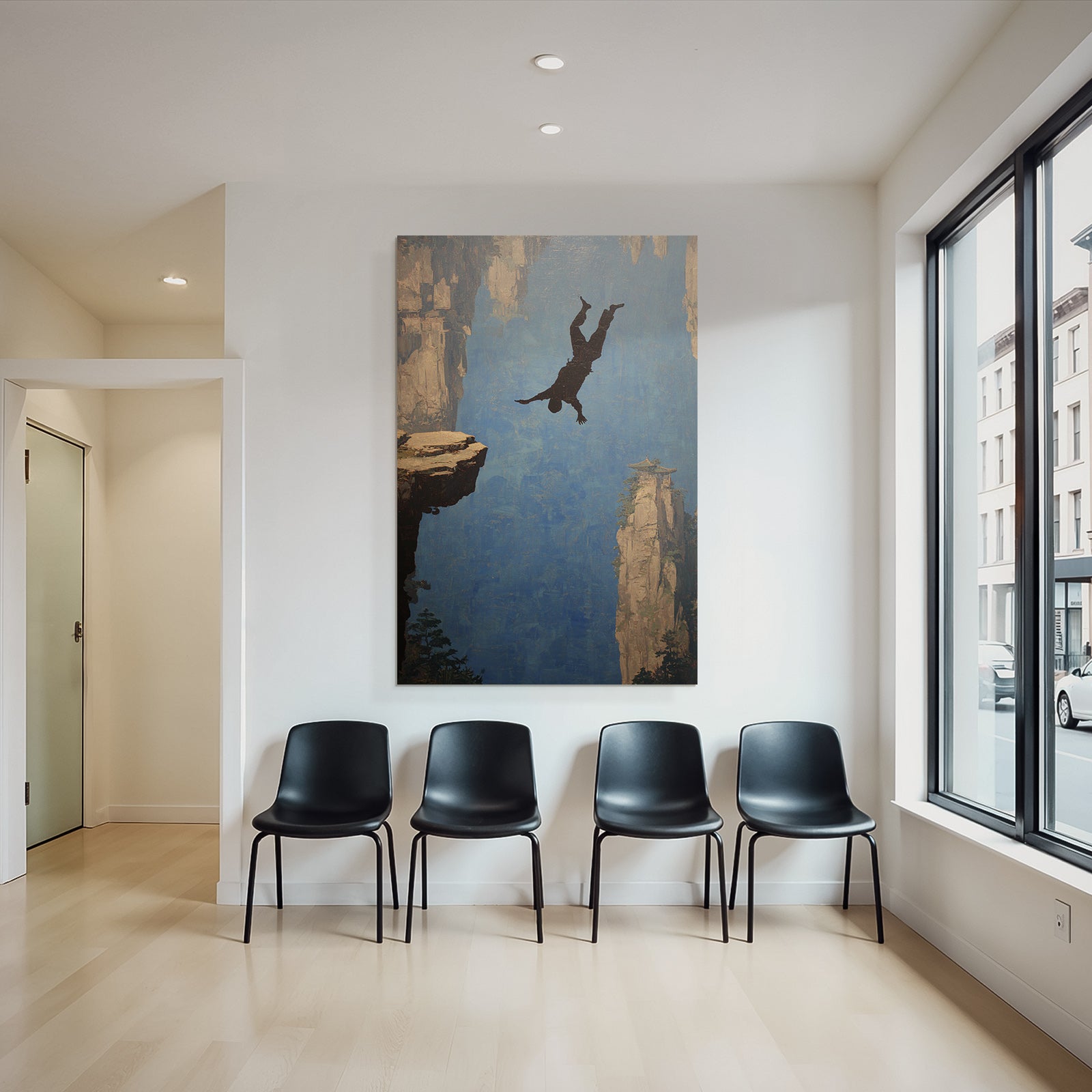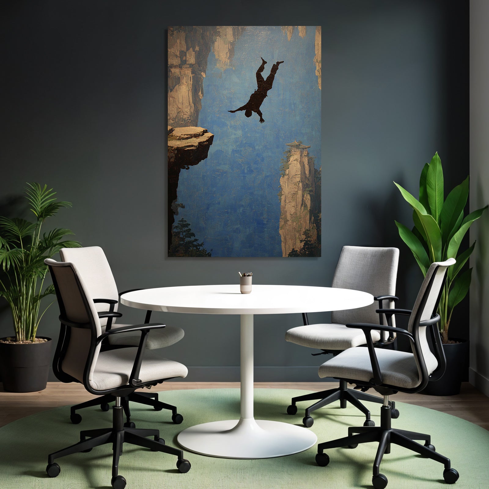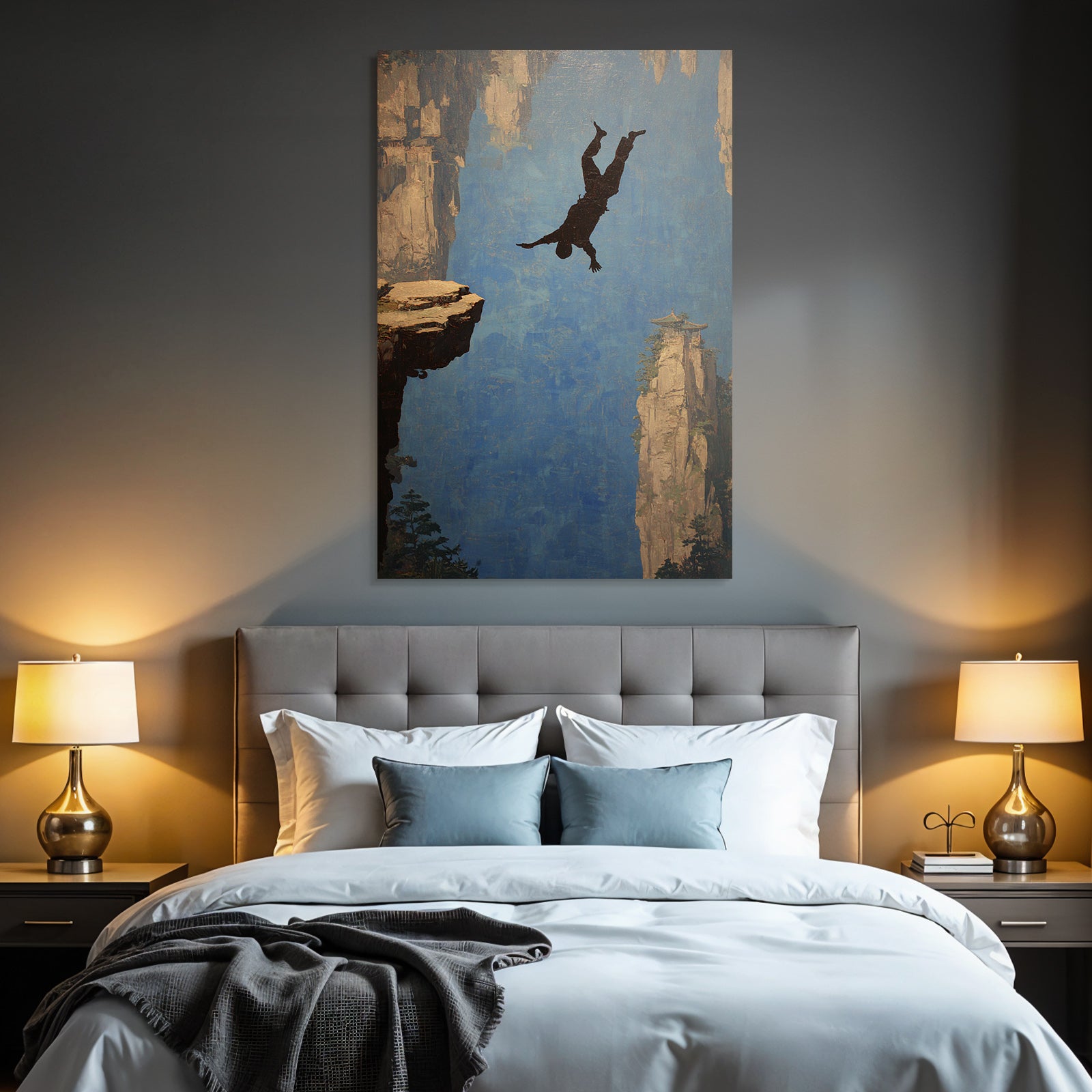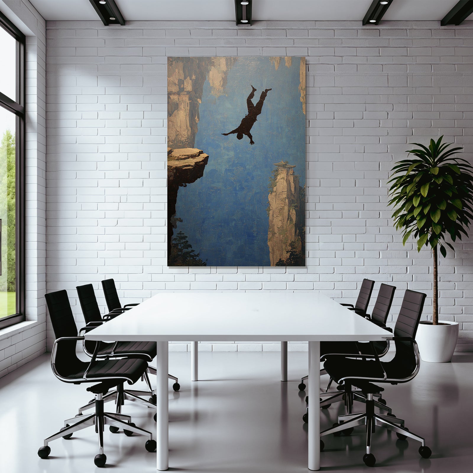 Ob im Wohnzimmer oder Essbereich – das Werk „Yoga Meditation Schatten Der Person Fallend Zwischen Felsen Und Blaüm Himmel“ im Stil Yoga und Meditation wird im FameFrame™ zum stilvollen Blickfang.