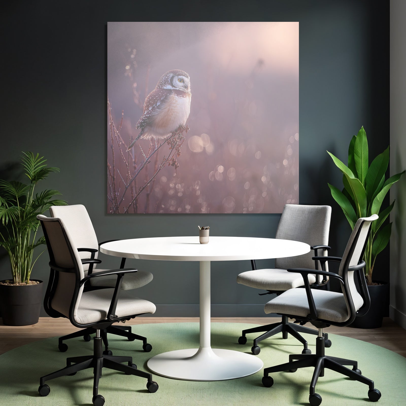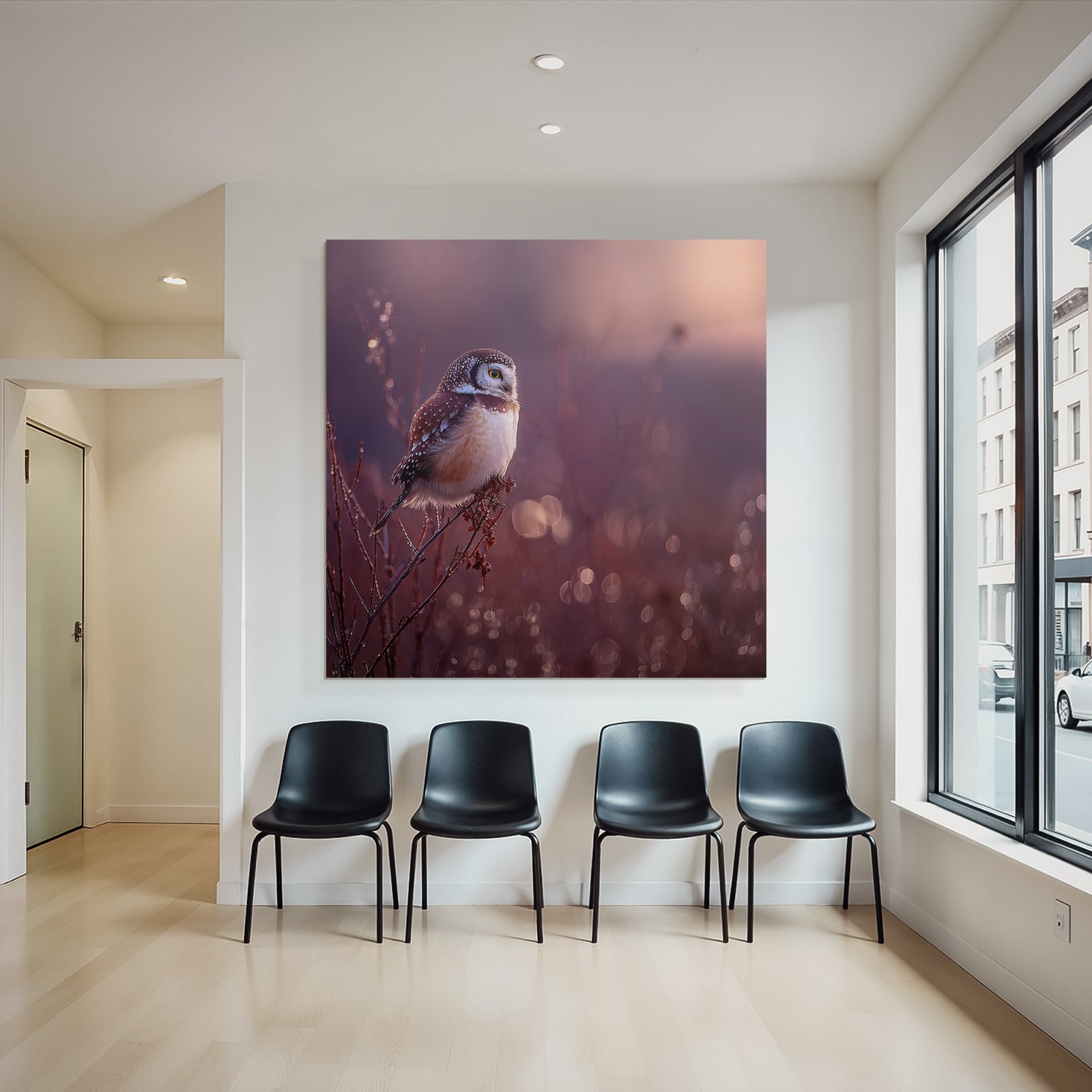Verschönere Dein Zuhause mit diesem Werk im Stil Voegel. Der Titel „Eule Auf Ast Dreamy Hintergrund Dämmerung“ kommt im hochwertigen FameFrame perfekt zur Geltung.