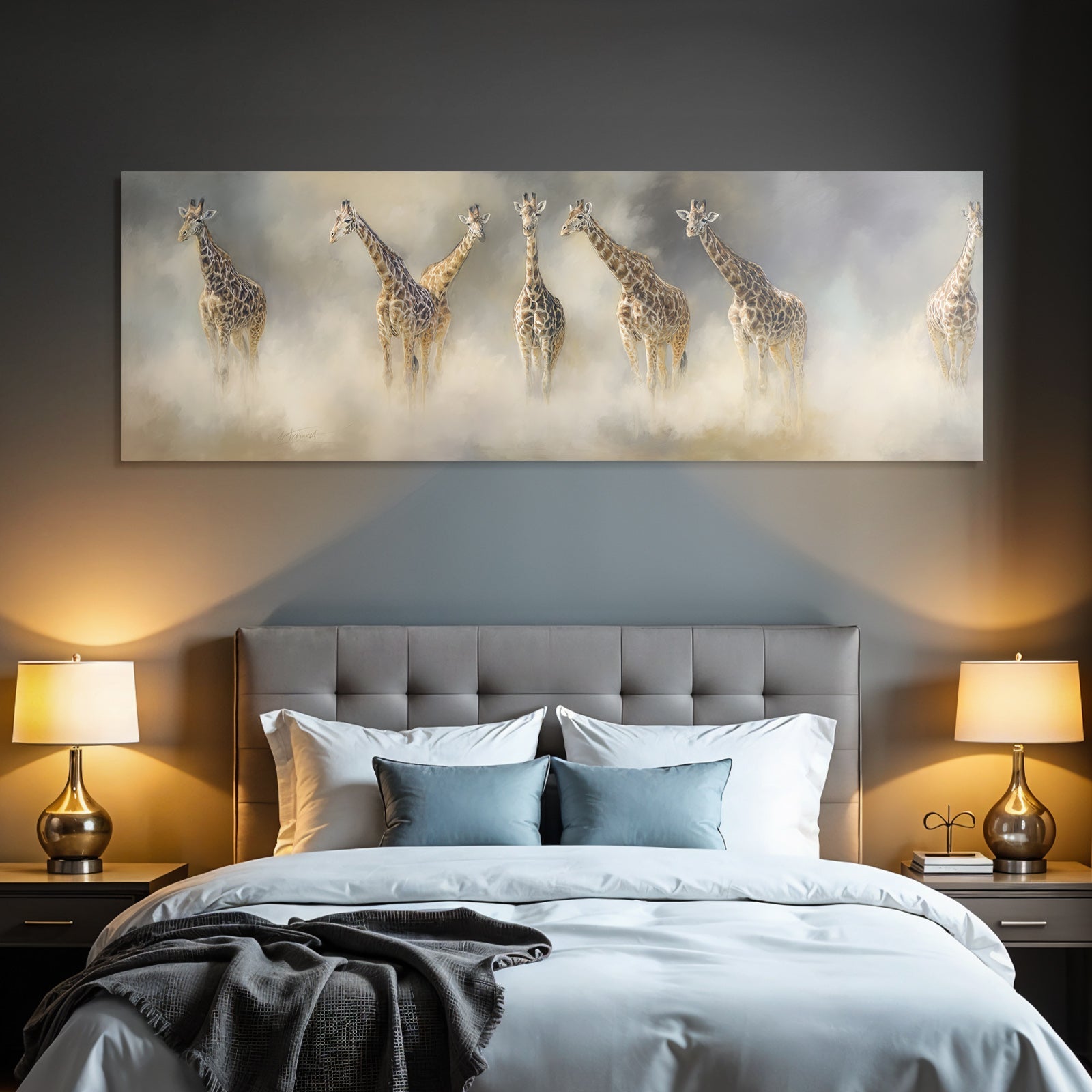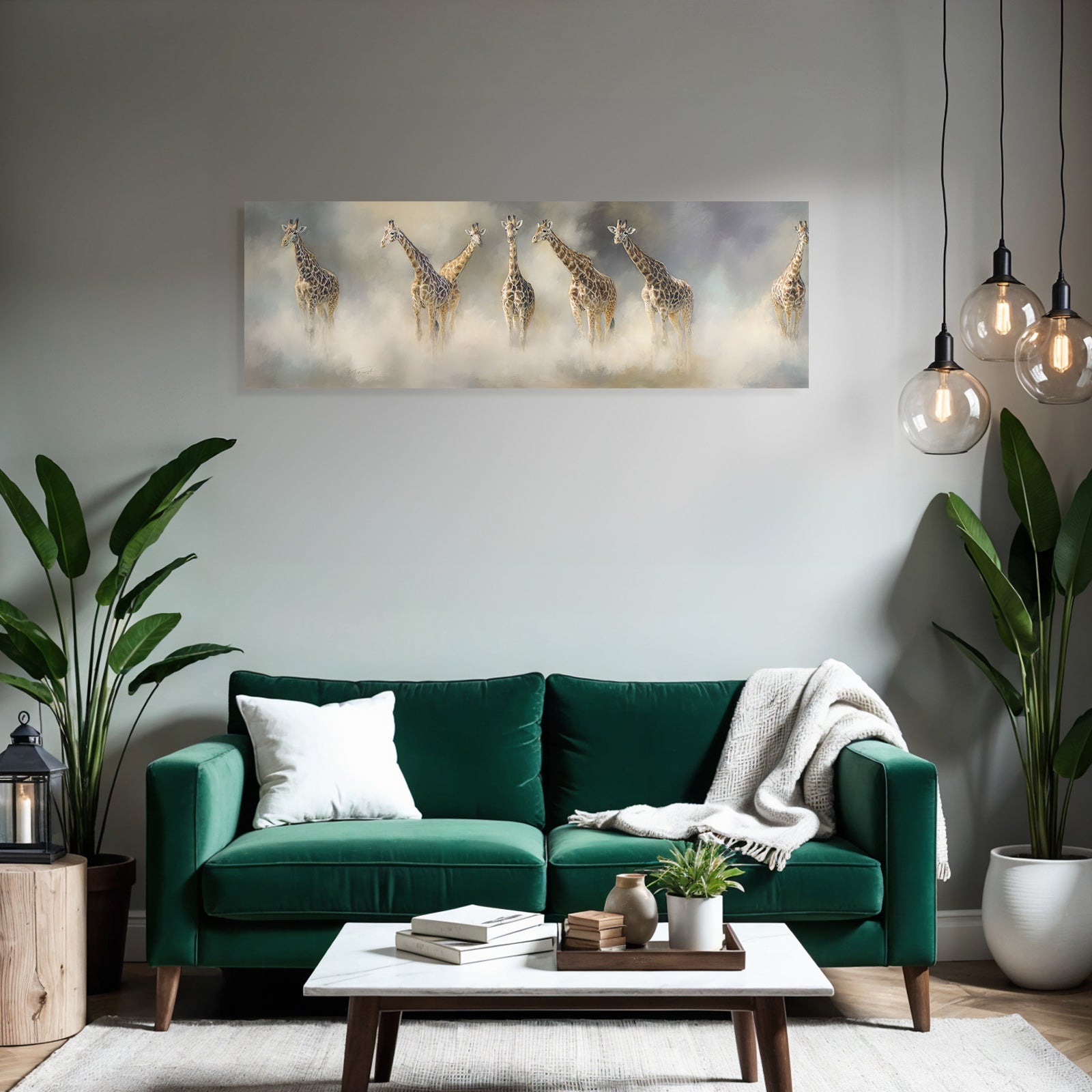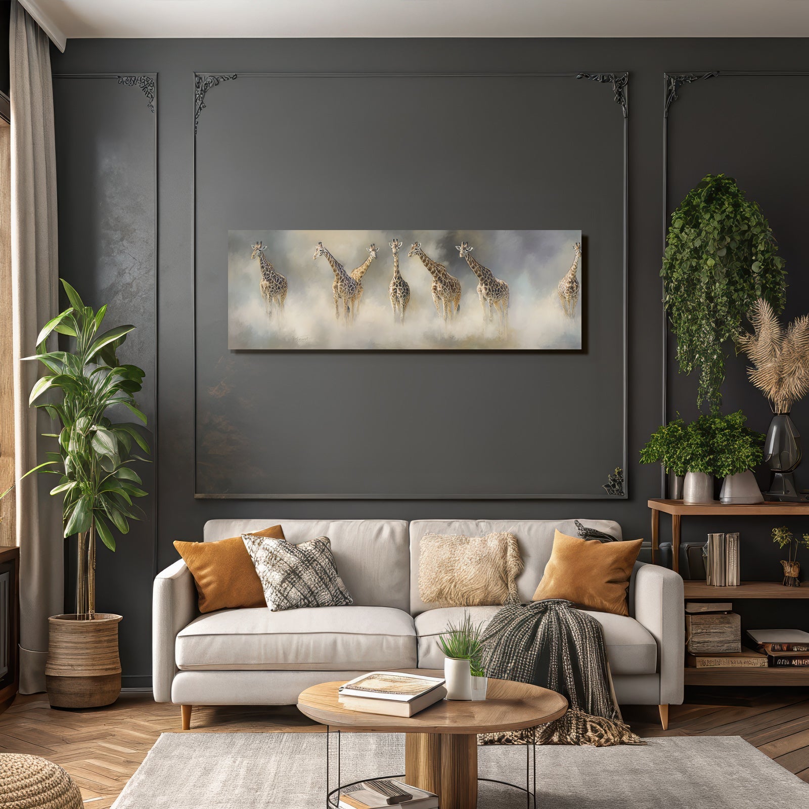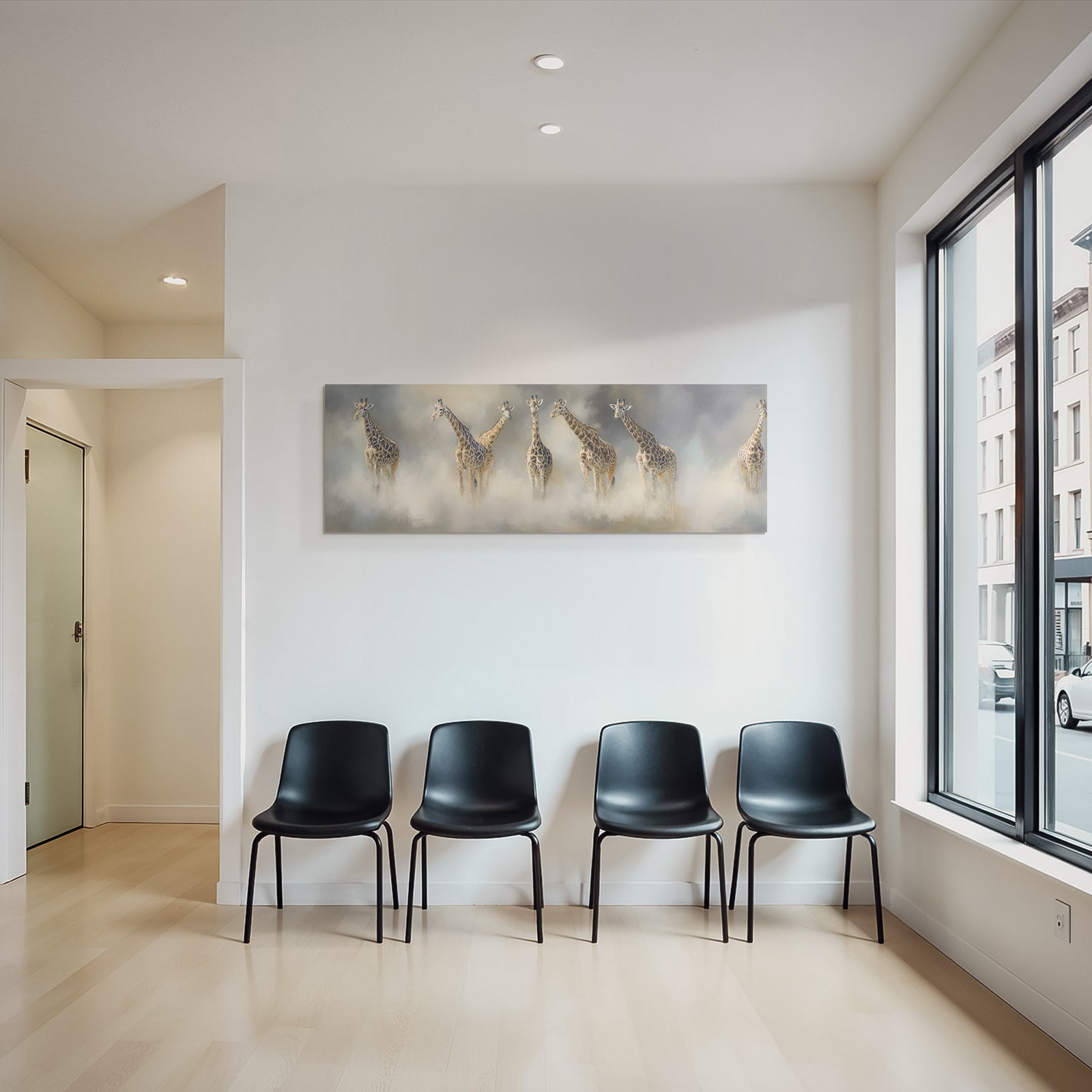 Ein Highlight für jeden Besprechungsraum oder eine großzügige Lobby. Das Werk „Giraffen Im Nebeltraum“ im Stil Safari und Wildtiere demonstriert im FameFrame Stilbewusstsein und Klasse.