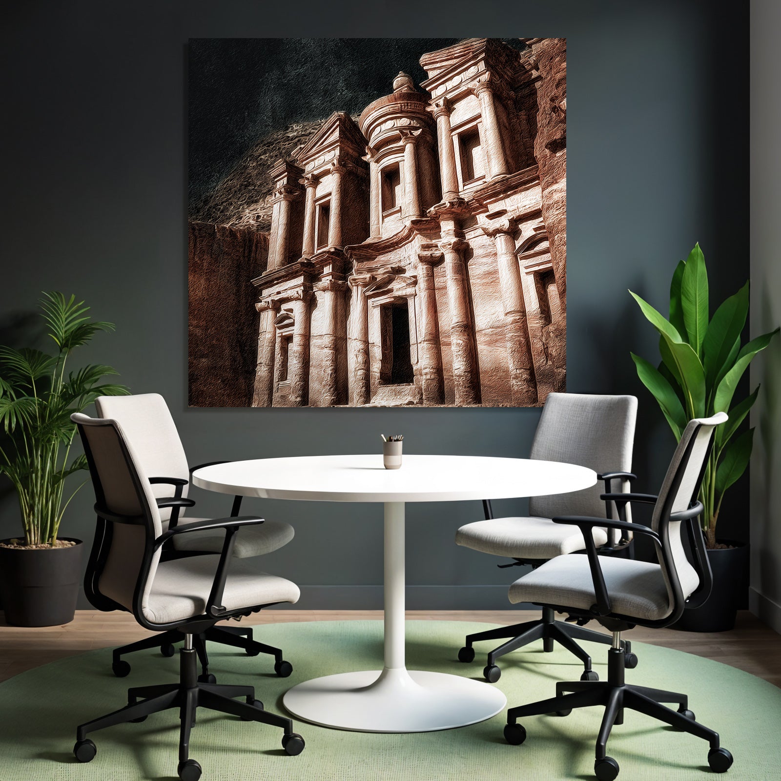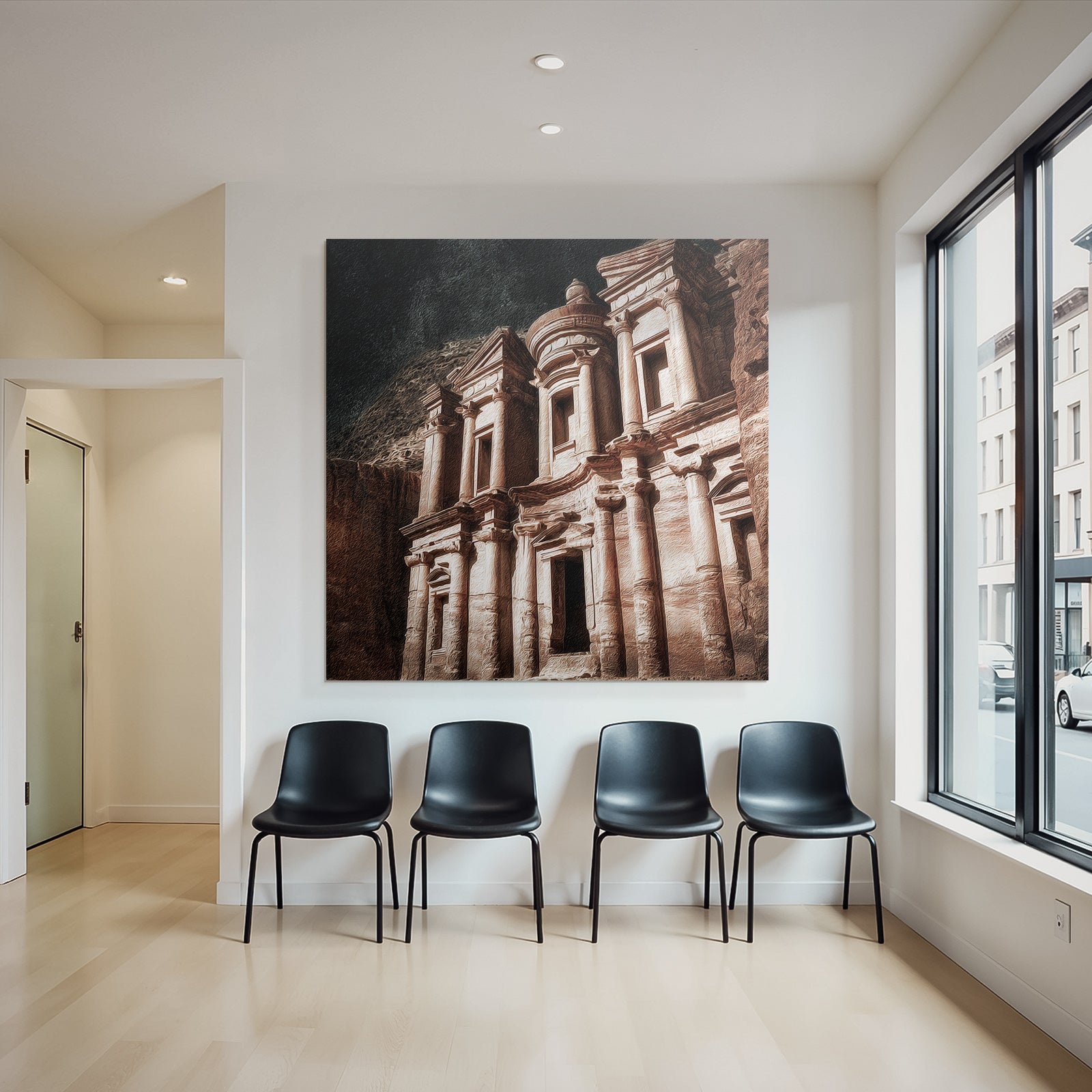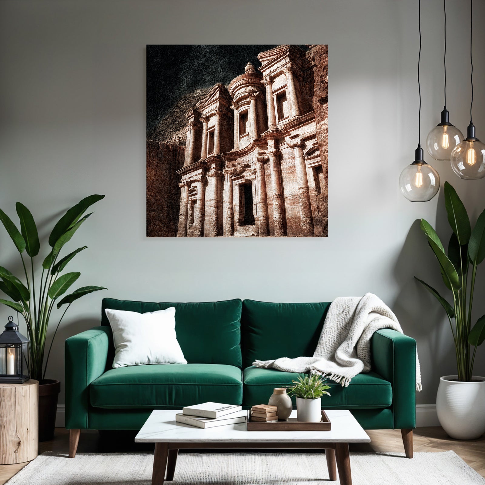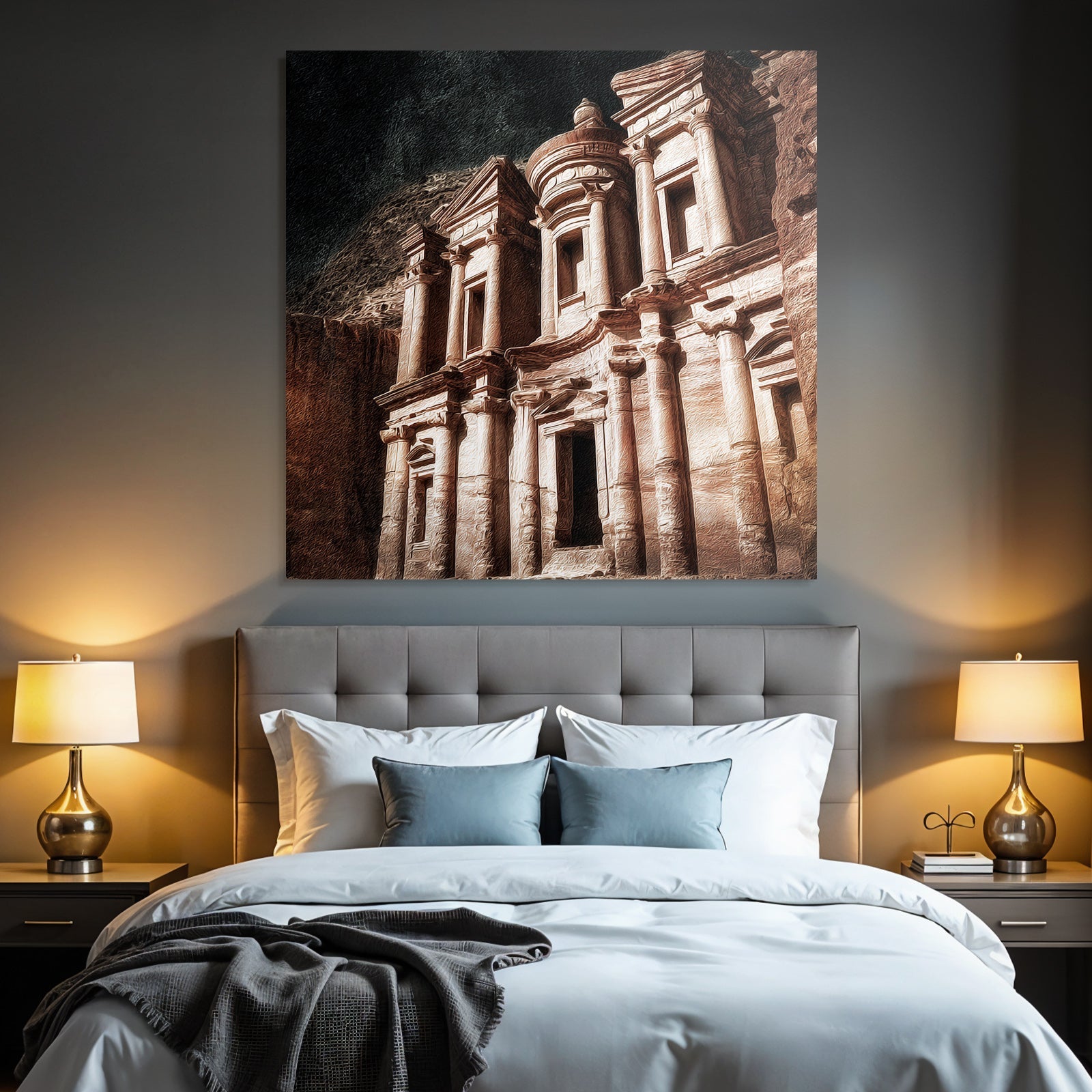 „Felsstadt Petra Schatzhausfassade“ im Stil UNESCO Weltkulturerbe sorgt für stilvolle Ruhe im Schlafzimmer oder inspirierende Energie im Büro – perfekt im FameFrame inszeniert.