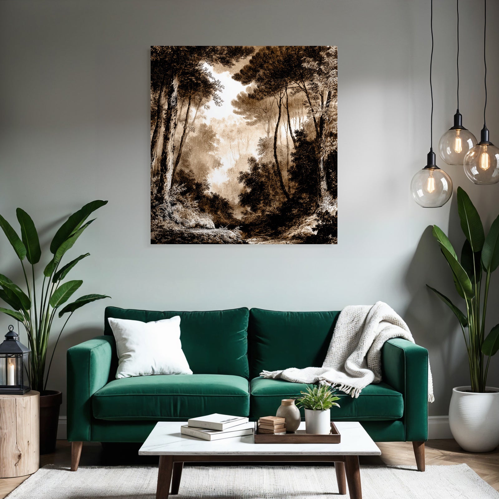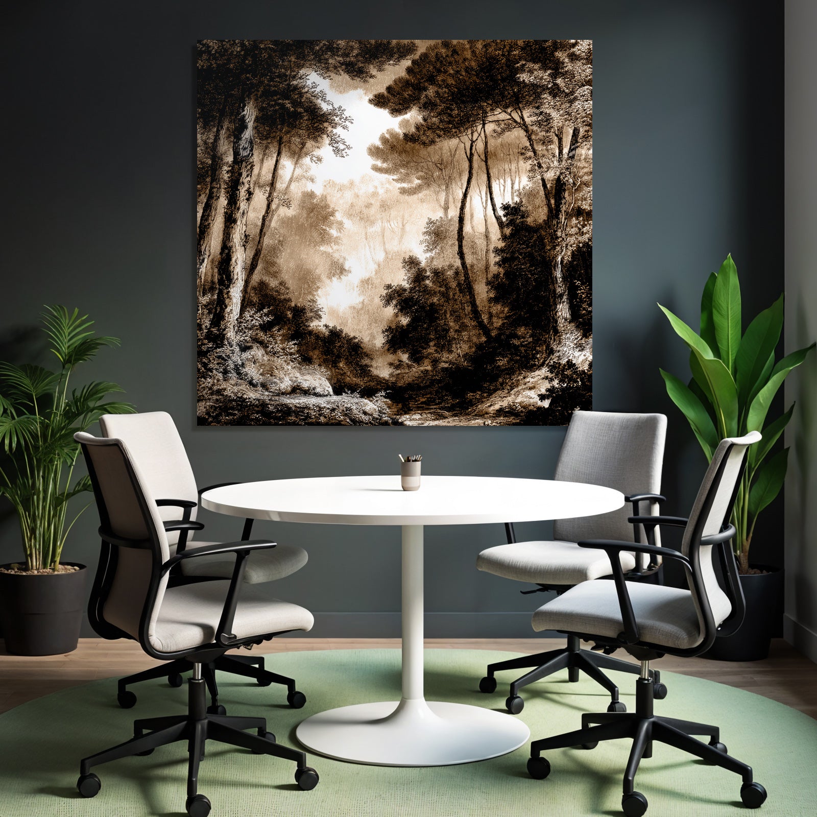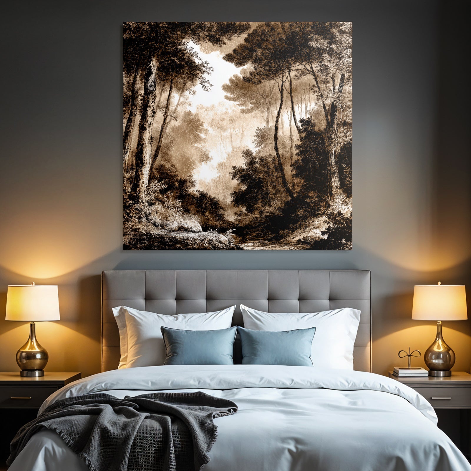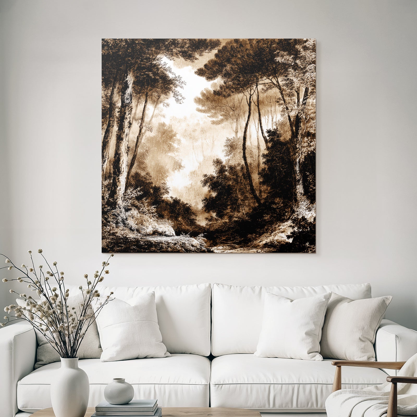 Mit dem Werk „Vernebelter Sepia Wald“ im Stil UNESCO Weltkulturerbe gestaltest Du Dein Wartezimmer oder Deine Hotel-Lobby eindrucksvoll und modern – auf Stoff im FameFrame.