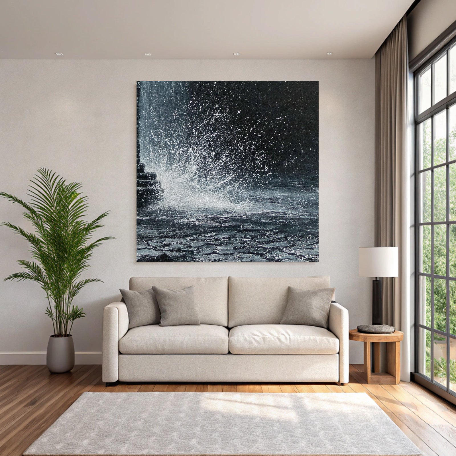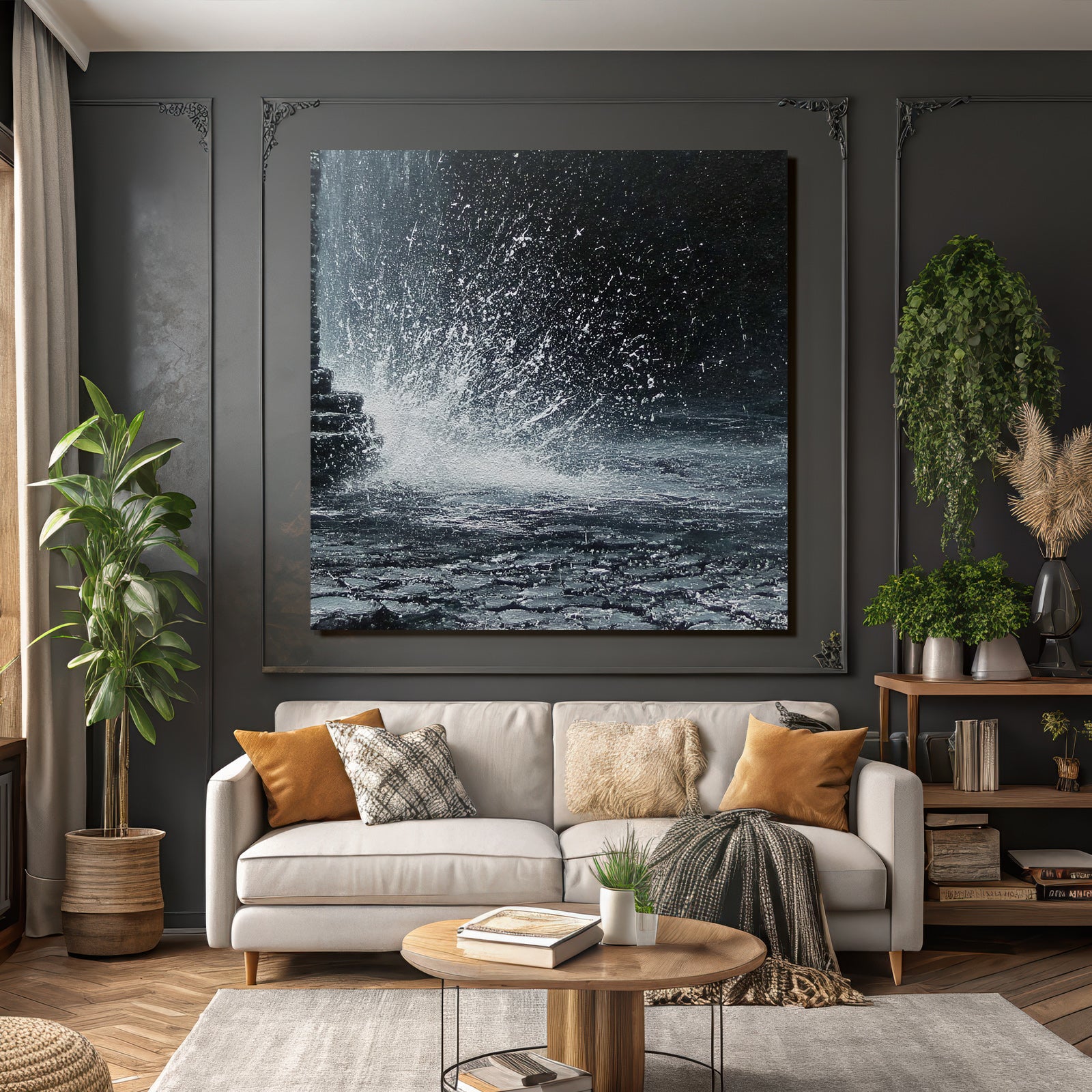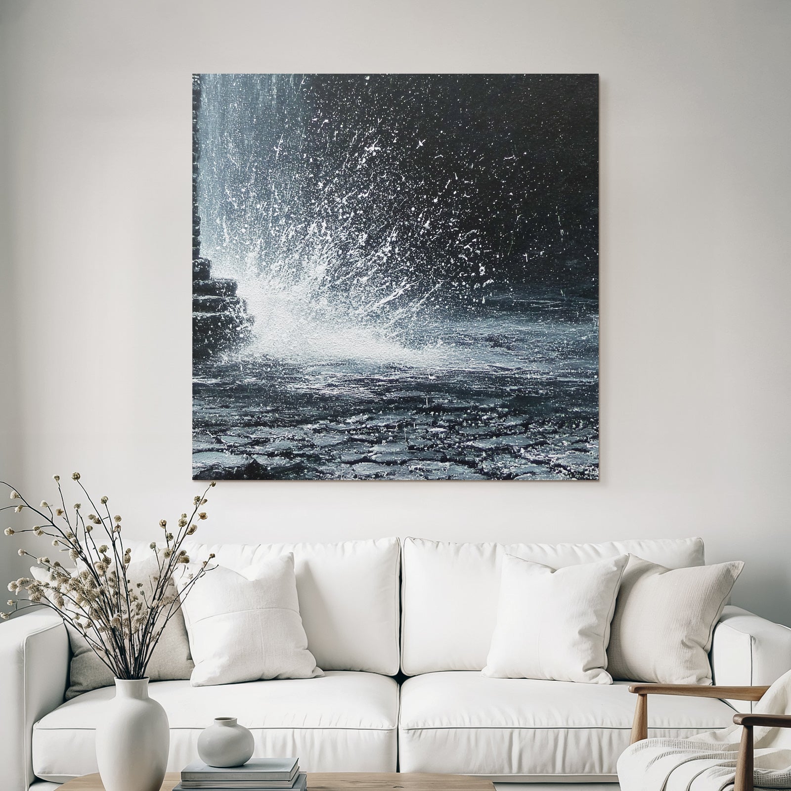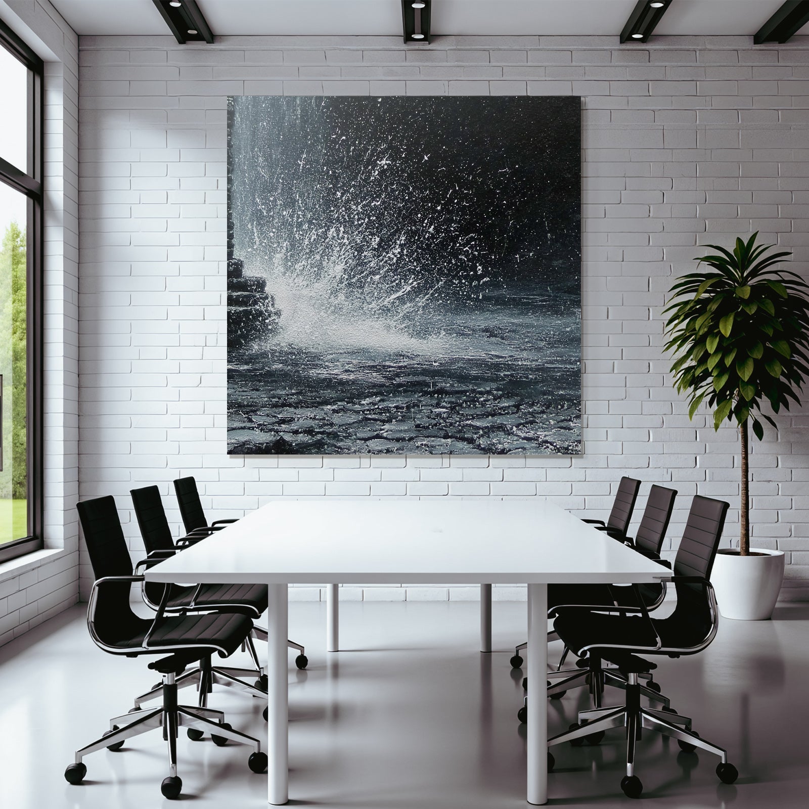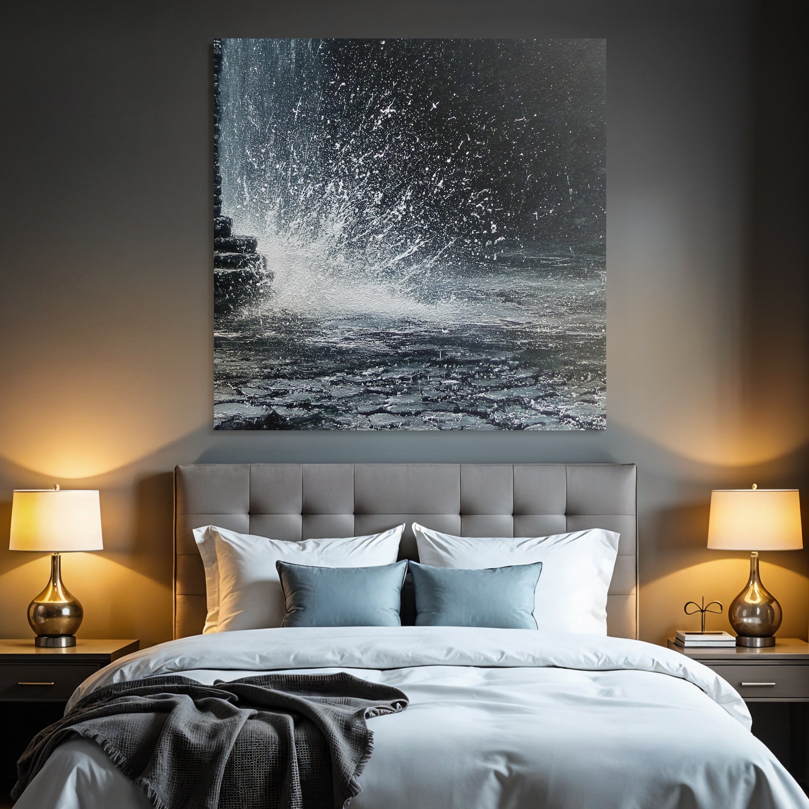 „Spritzendes Wasser Auf Dunklem Hintergrund“ ist das Highlight für jede Wand. Als brillanter Textildruck im Stil Wasserfaelle und Tropfen wird es im FameFrame zu einem dynamischen und wandelbaren Kunstobjekt.