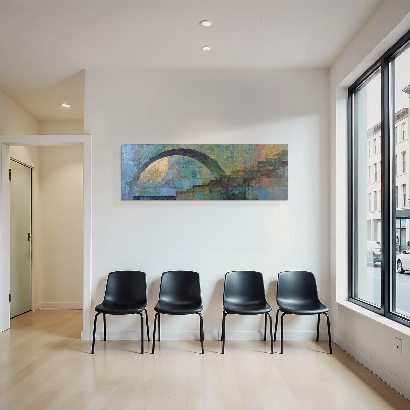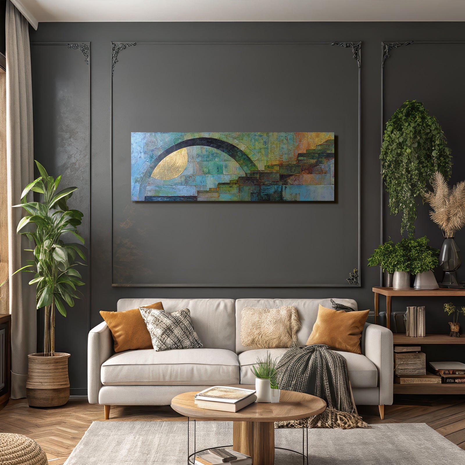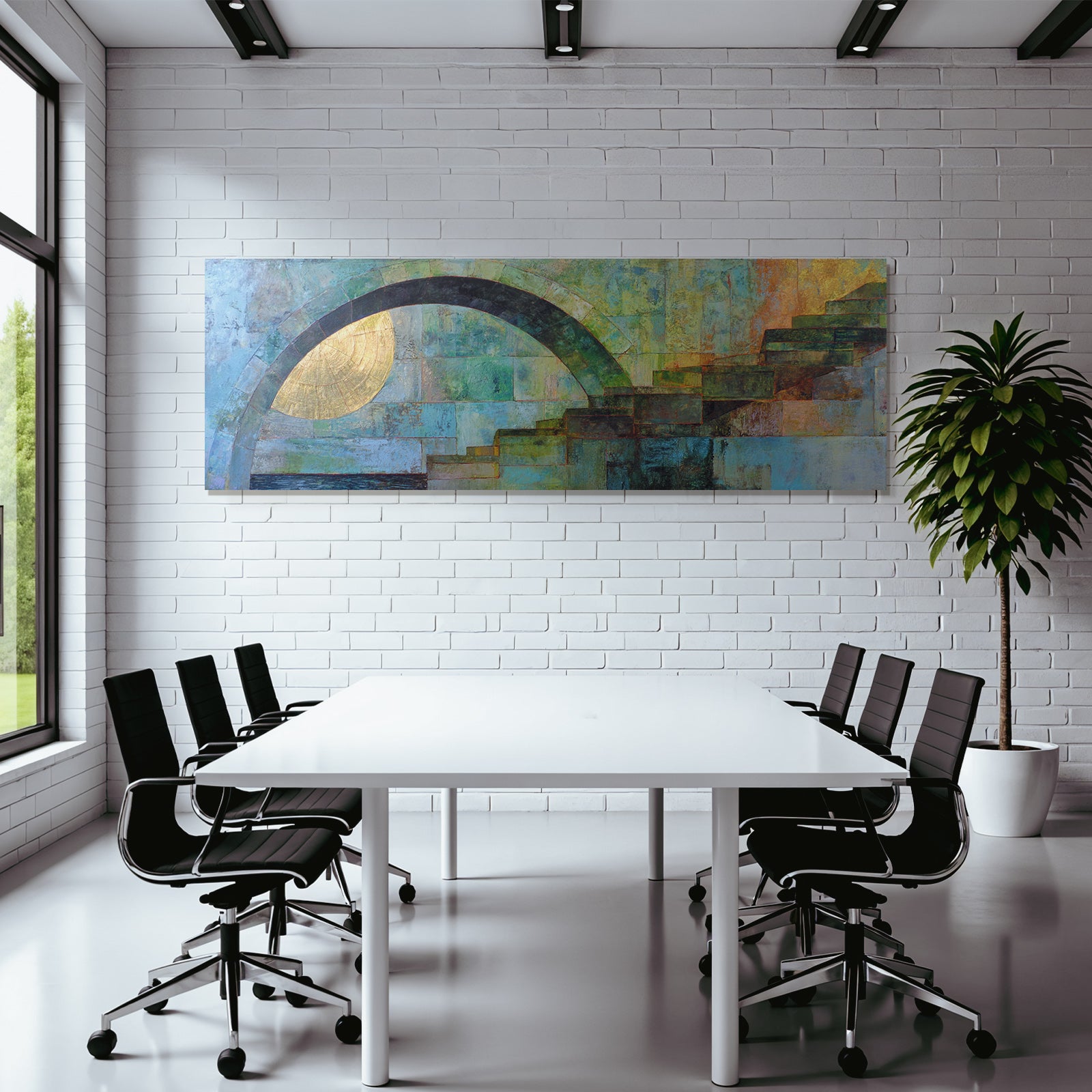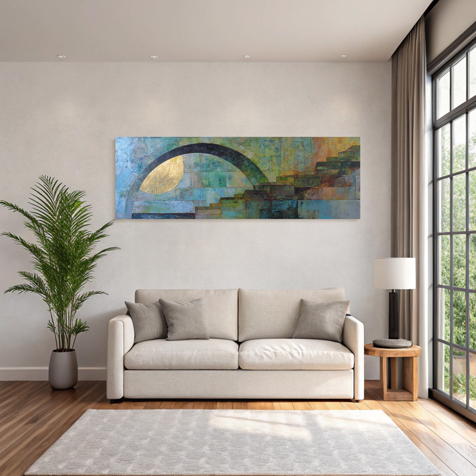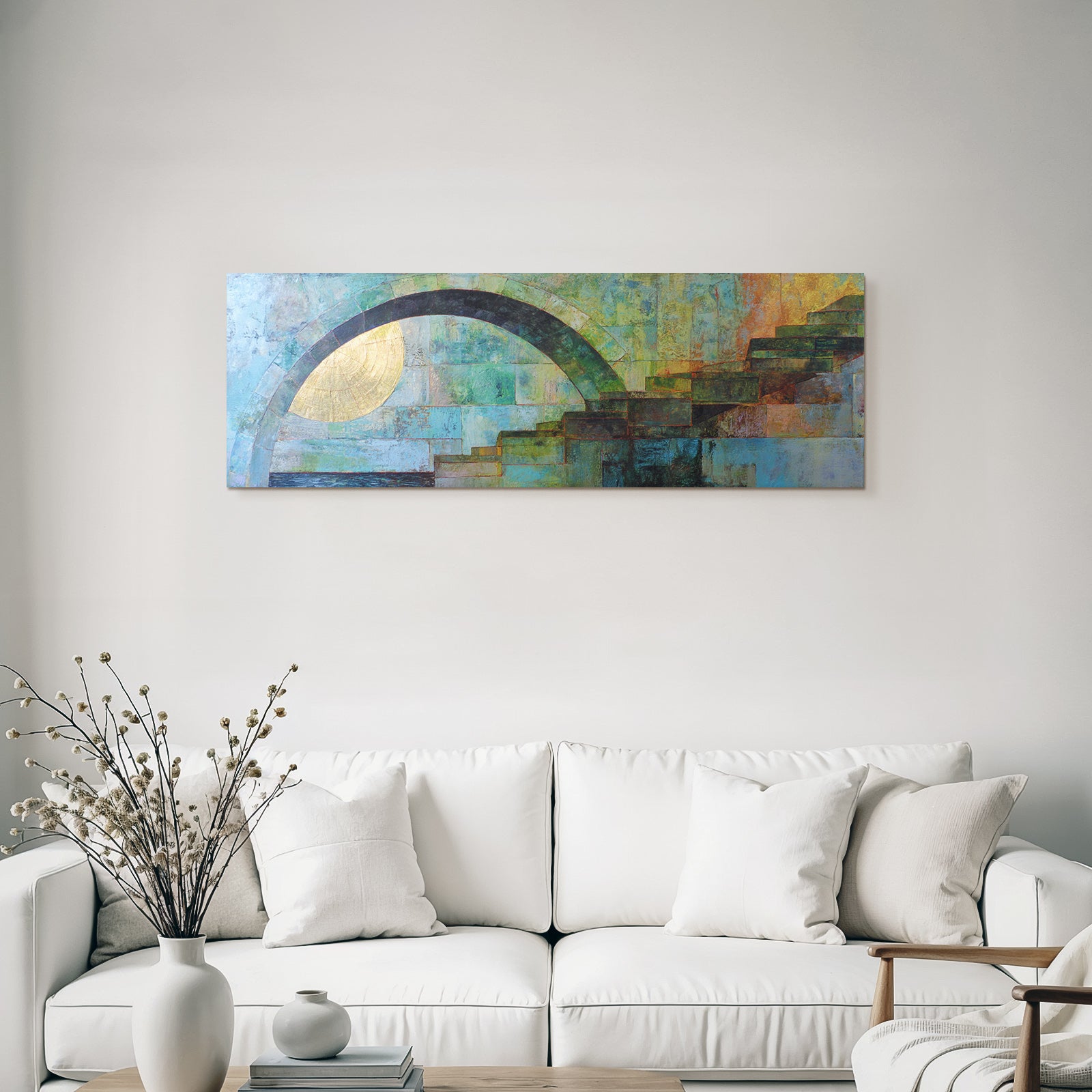 Entdecken Sie die Facetten von „ArtDeco Treppe Zum Goldenen Bogen“. Dieses Motiv im Look von Art Deco ist eine Zierde für jeden Raum und wird im FameFrame™ elegant inszeniert.